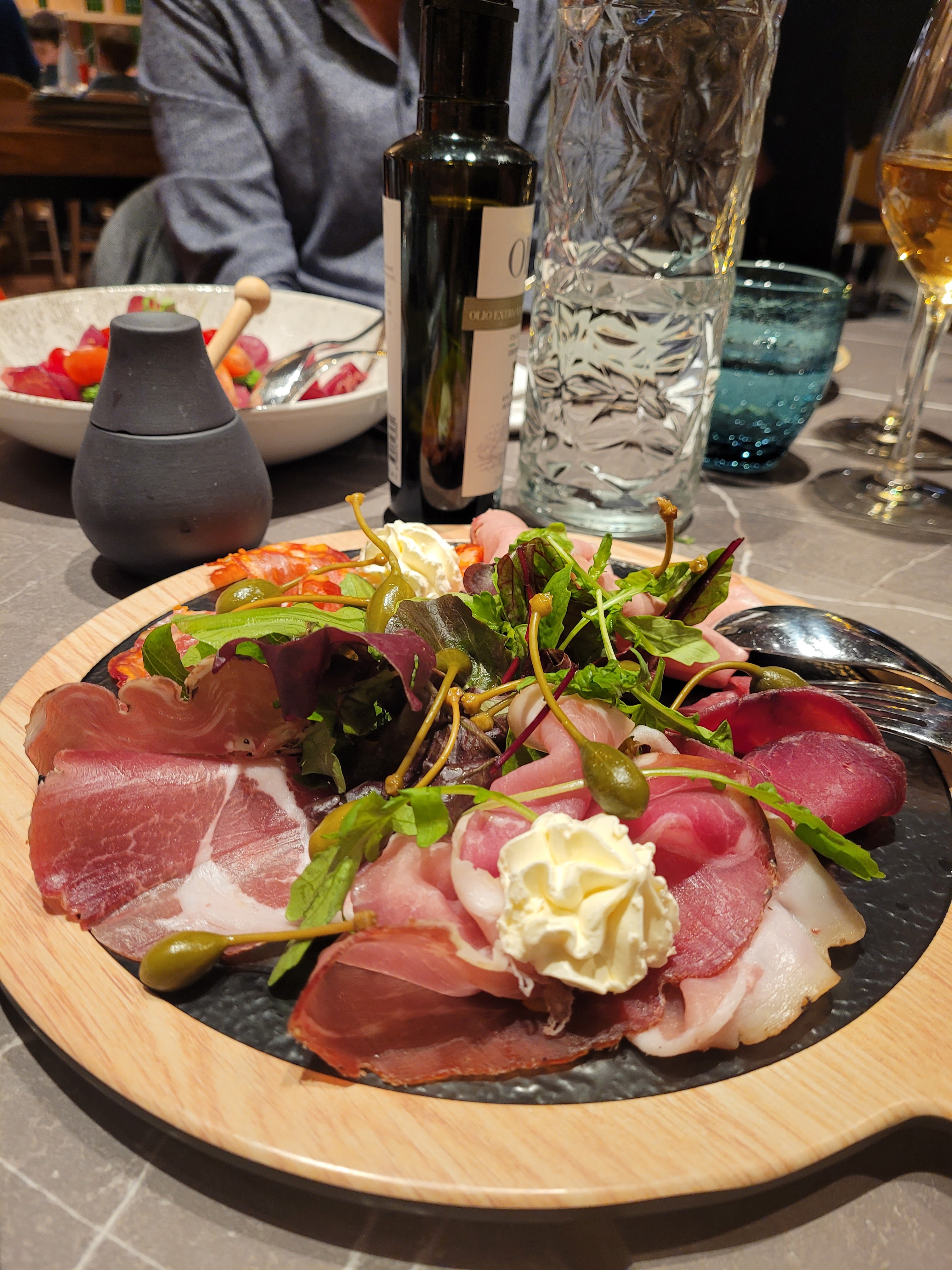 Dans un cadre agréable avec un accueil chaleureux ,personnels agréables Pour le repas nous avons testé l’assiette de charcuterie italienne à partager un régal et les Lasagnes avec une présentation excellente première fois que je vois une présentation originale !