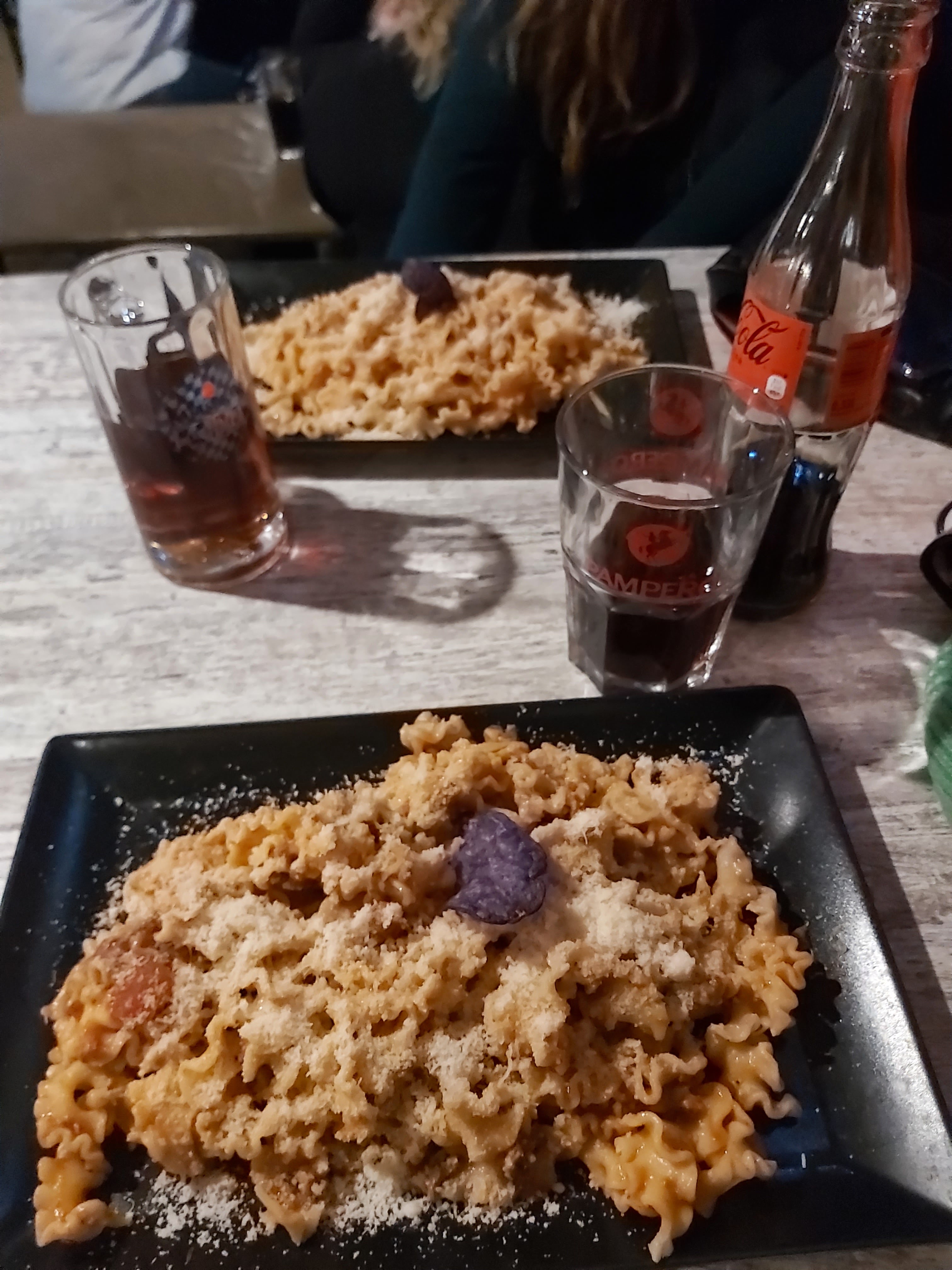 Serveuses expéditives, on nous a prevenus après une longue attente qu'il n'était pas possible de prendre des tartes flambées car ça suit pas en cuisine. Par défaut donc nous prenons des pates, après une attente tout aussi longue nos pâtes arrivent, de toute évidence elles ne sont pas cuites a la demande, de la ou nous sommes nous les voyons dans des bacs ainsi que les rangées de concentré de tomates Mutti. Les pates juste présentées en biais dans l'assiette aucun autre effort de présentation. 16,50€ les pâtes aux truffes (je cherche encore le goût de la truffe), et il y avait un cheveu dedans une des serveuses a envoyé une personne à notre table vers une autre serveuse quand il a demandé du fromage en plus, nous avons eu une micro coupelle de parmesan industriel. Nous sommes partis sans manger de dessert, flemme d'attendre une demi heure pour une glace Pompon sur la Garonne, les serveuses qui s'accusent entre elles de ne pas etre commerciales. Il est évident que nous ne reviendrons pas