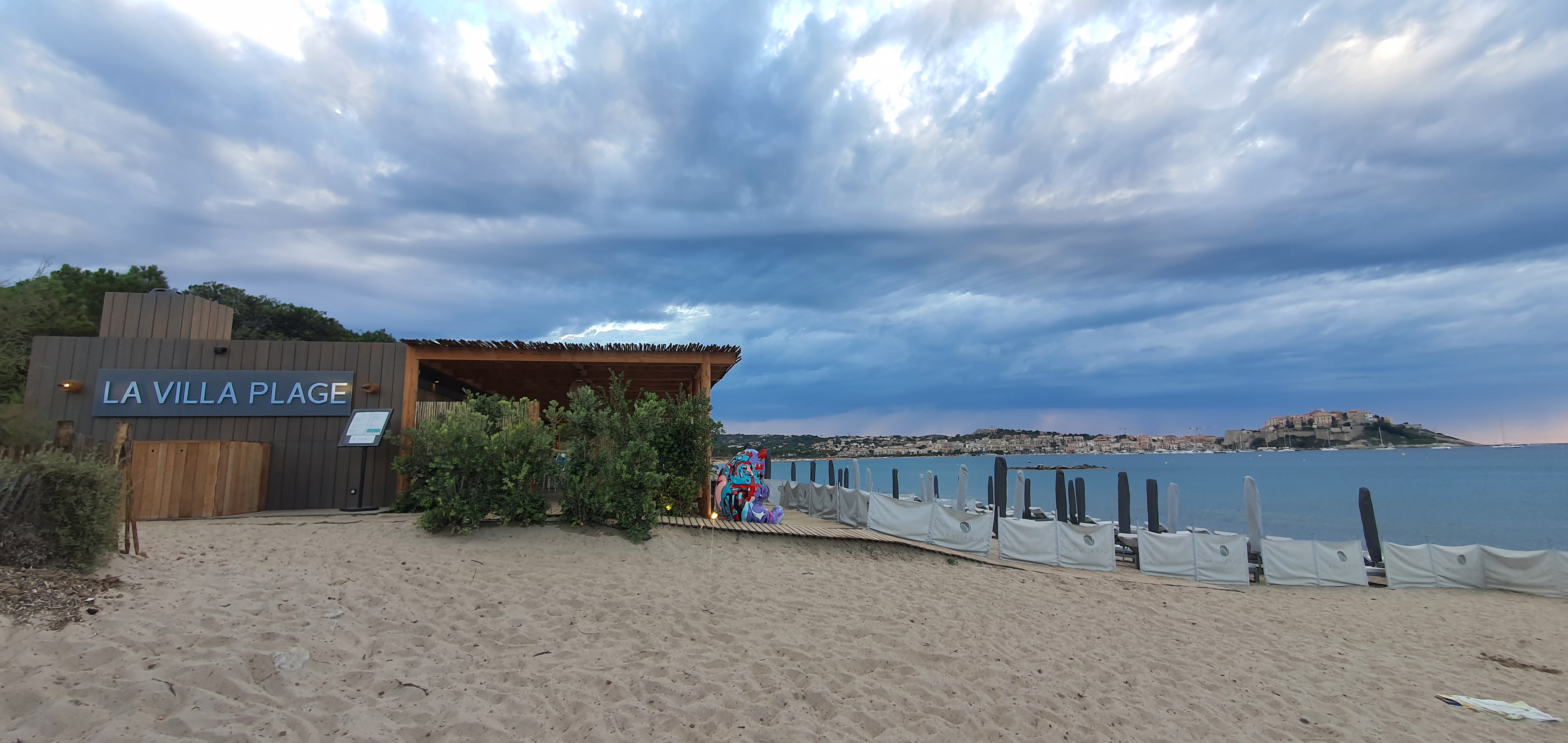 Plage privée de l'hôtel La Villa, de Calvi. Accueil, personnel au top. Aux petits soins avec vous, comme à l'hôtel du même nom. Prennent le temps d'échanger avec vous. Transats très confortables, avec grande serviettes de bain et bouteille d'eau en accompagnement. Excellents cocktails. Repas servis le midi uniquement, de très grande qualité.