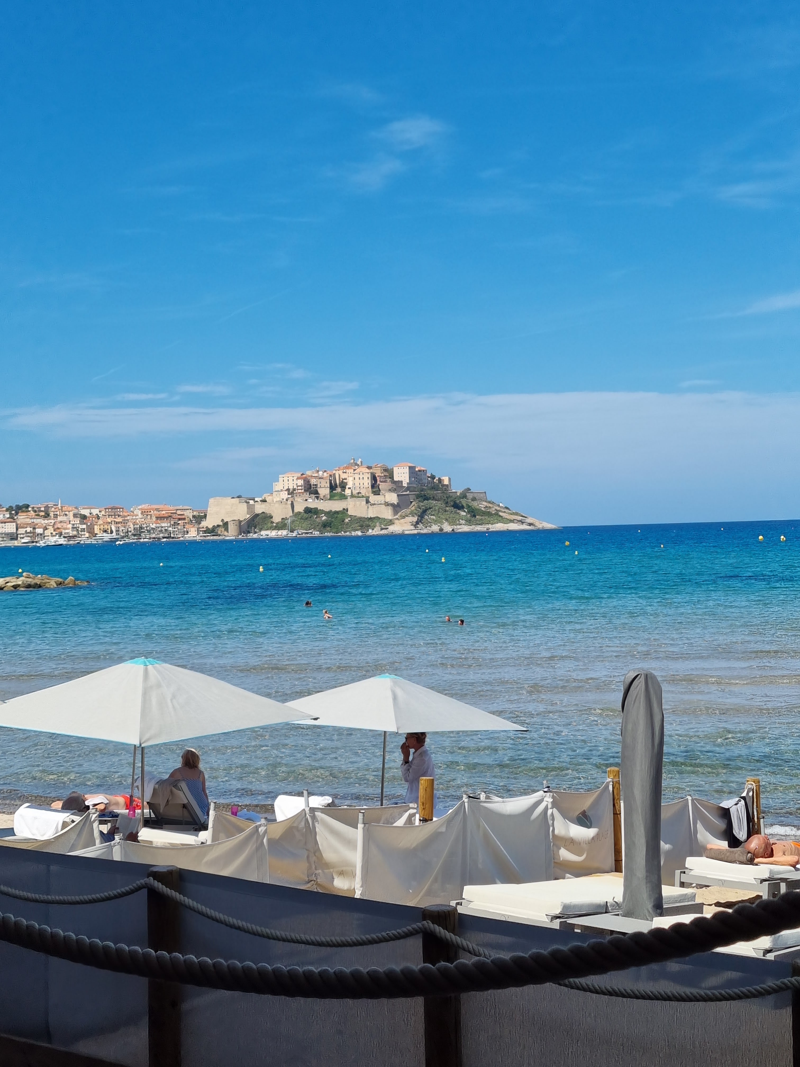 Super cadre et accueil Les transats sont très confortables. Mise en place de serviettes et coussin de tête. Parfait pour se ressourcer avec la vue sur la citadelle de calvi
