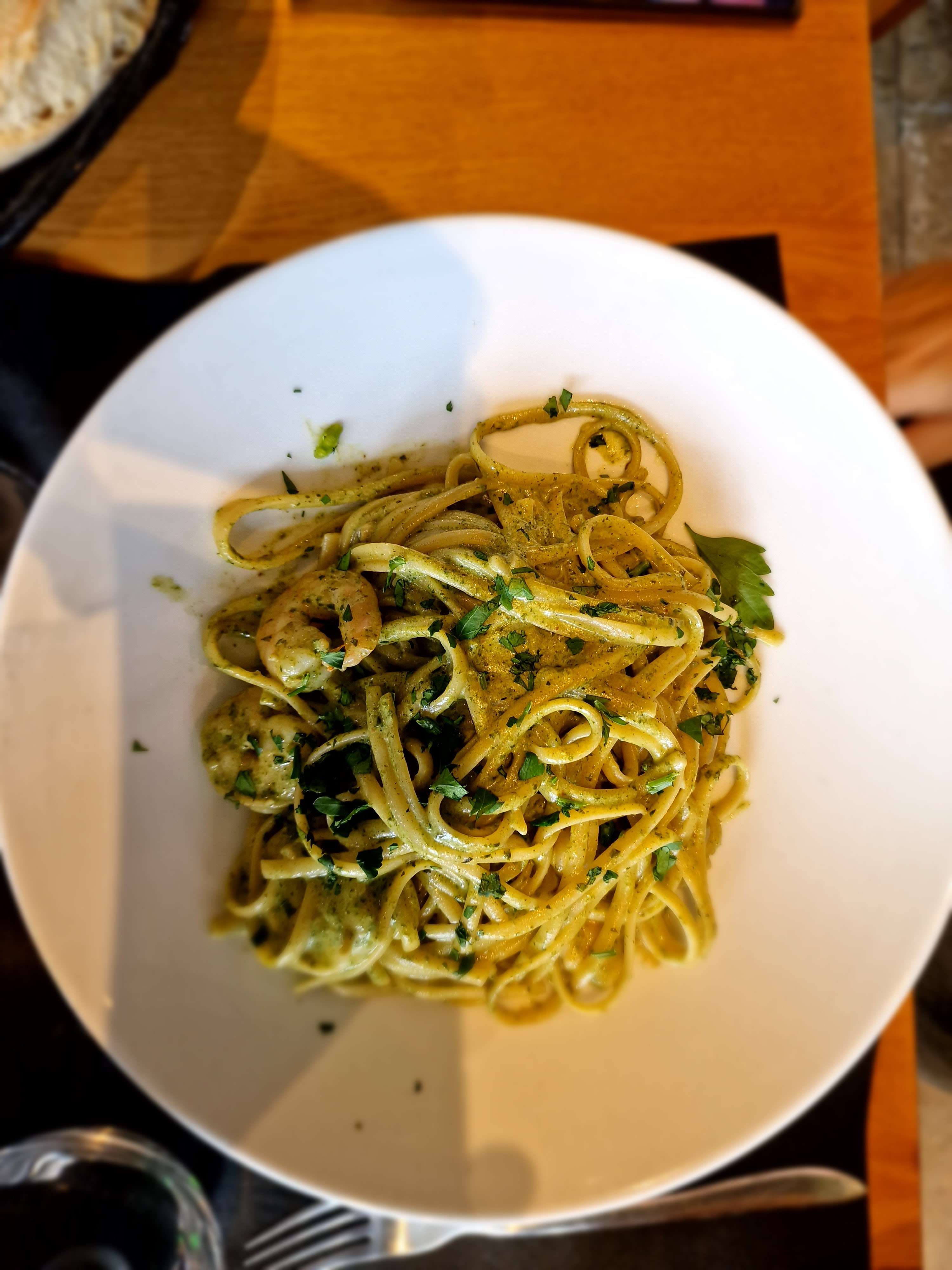 Le restaurant anciennement c ici à reprit un coup de jeune tant au niveau de la fréquentation, ambiance et de la décoration. C'est très réussi. Nous y sommes allés pour un anniversaire. La table était très agréable. La carte est assez variée cependant autant rester sur les spécialités de la maison c'est à dire les pâtes. J'ai commandé une salade césar mais j'ai été assez déçue... Des carottes, de l'oignon, des concombres, du mais ... à peine du poulet... j'ai cherché le parmesan. Elle n'avait de cesar que le nom. Pour moi c'était une salade composée et rien d'autre. Le dessert était nettement meilleur. J'ai commandé le tiramisu. C'était un regal. Par contre, la musique c'est bien mais encore faut t'il s'entendre parler. La qualité du son ou la sono est plus que médiocre. Il faudrait l'ajuster de sorte qu'on puisse en profiter pendant le repas sans pour autant devoir hausser le ton pour se faire comprendre de son voisin de table. Résultat un brouhaha dans la salle très désagréable. Un bon moment quand même dans l'ensemble.