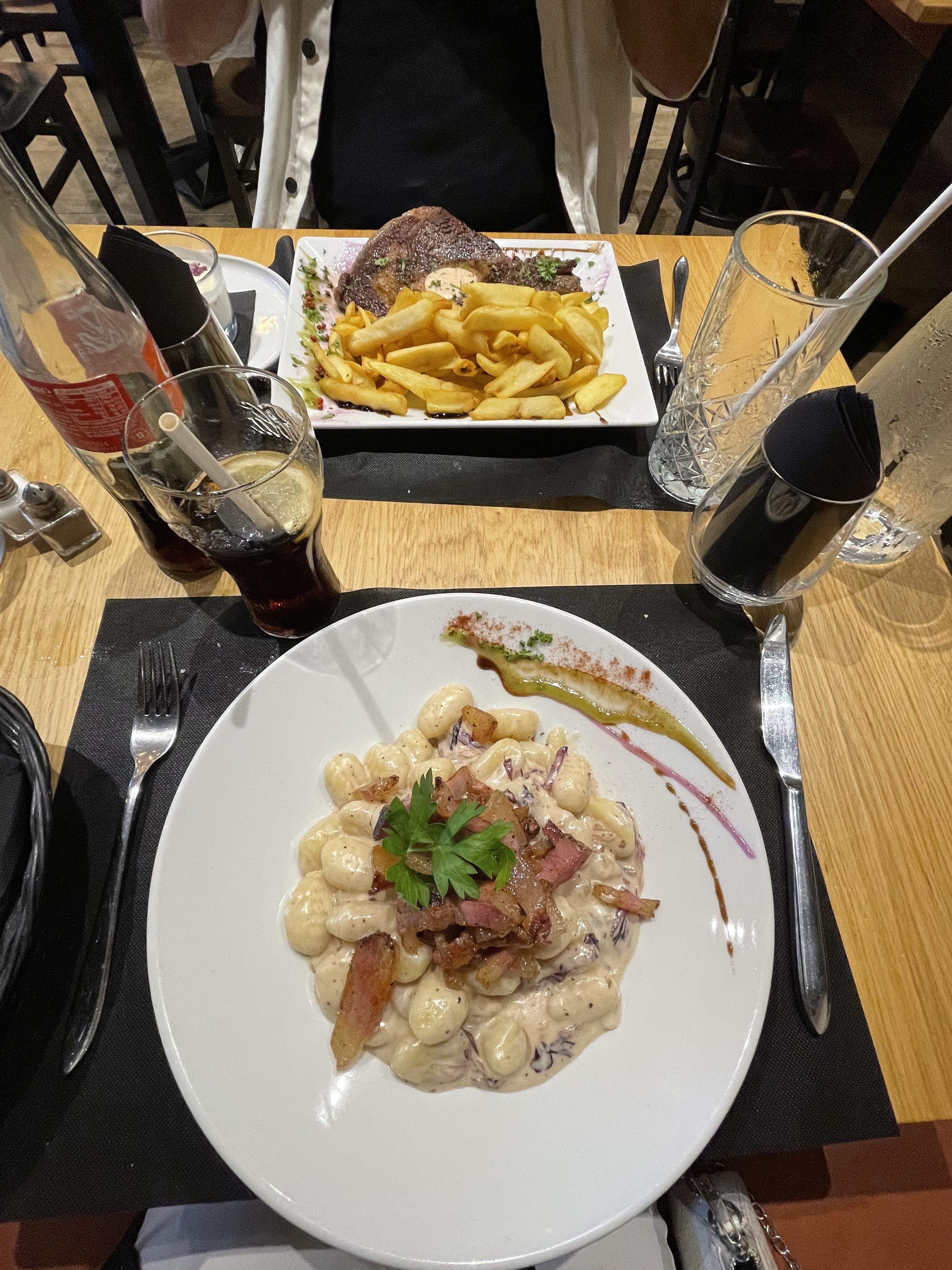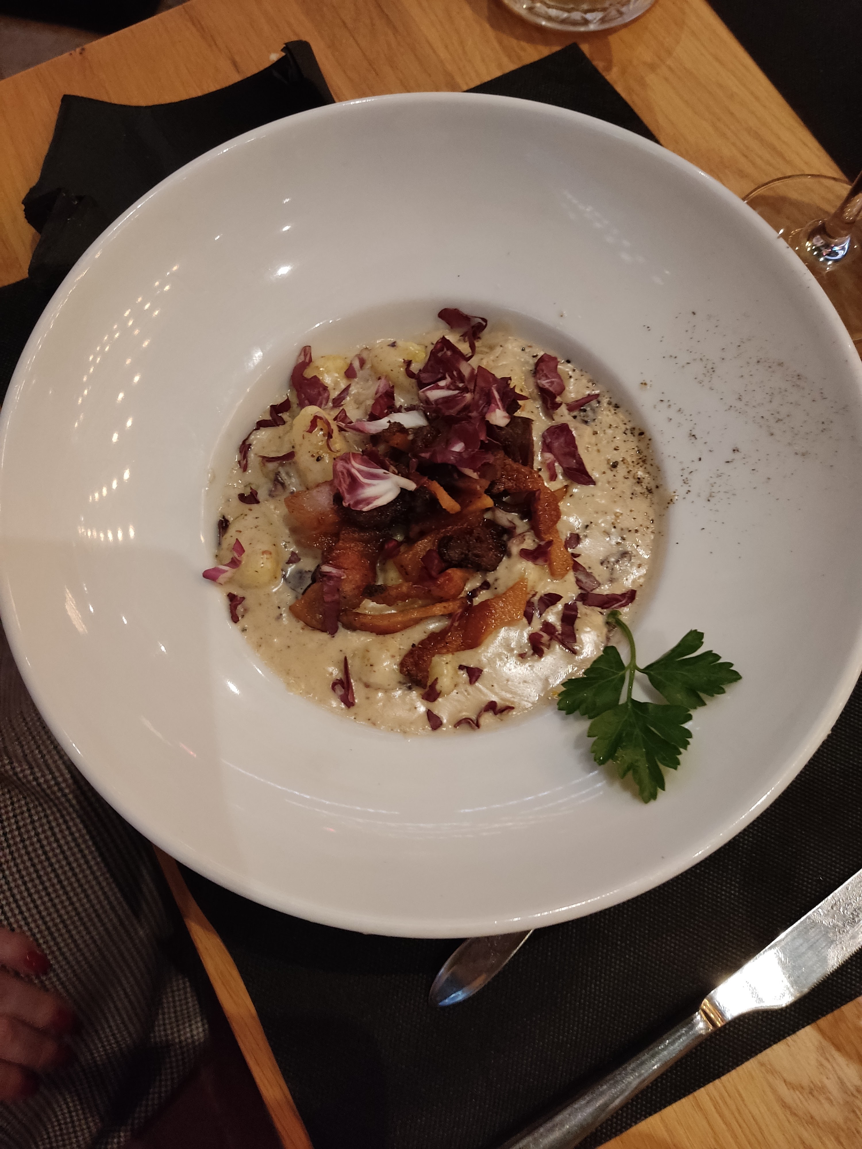 Cuisine pas adapté à son prix, risotto très salé et gambas assez fade, les gnocchis une très bonne pâte mais une sauce qui manque de beaucoup de goût. 50 euros pour deux personnes avec une cannette et deux plats.. En vaut la moitié. Bonne journée