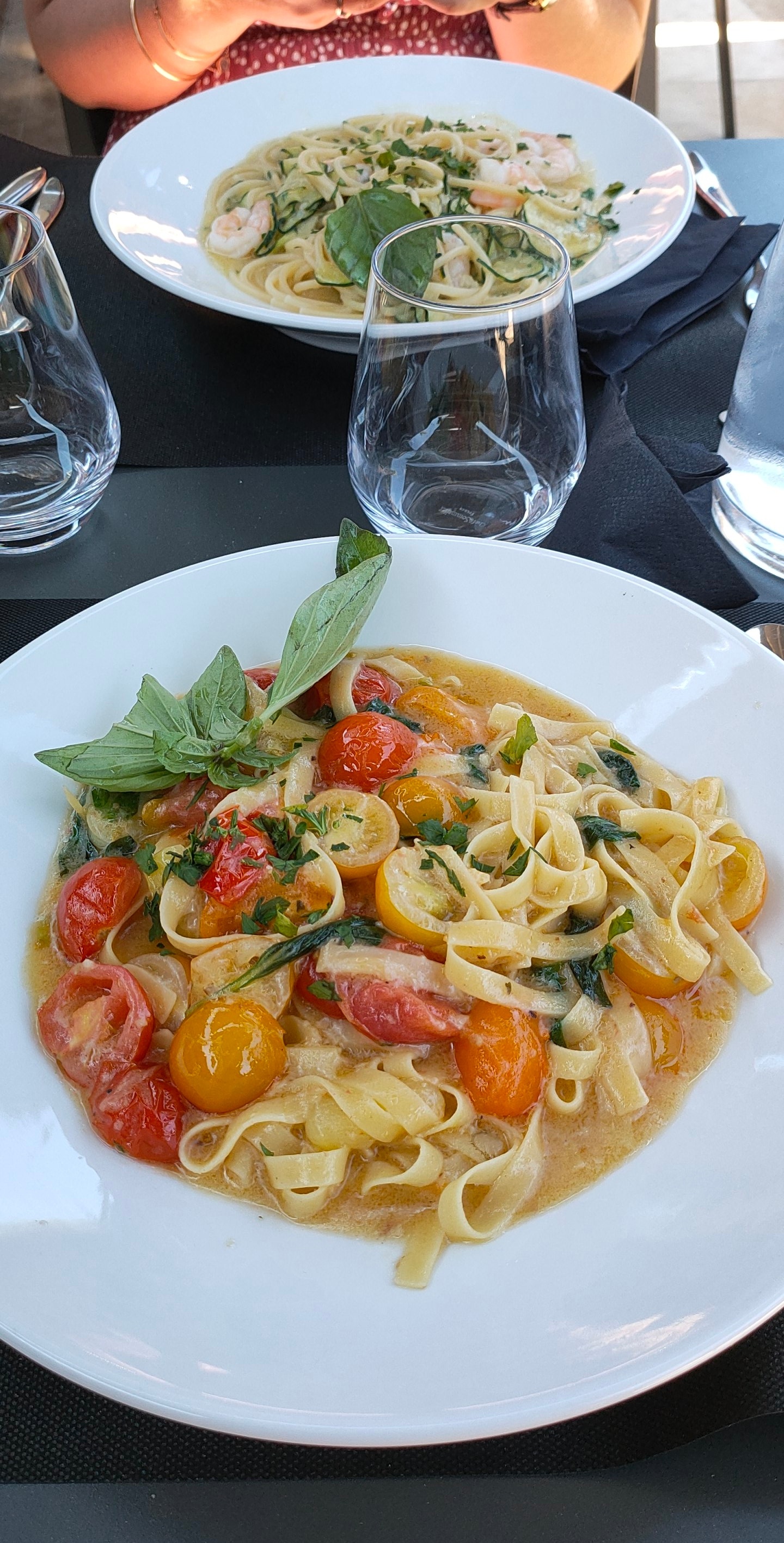 Très beau restaurant, propre et spacieux. Les plats sont très bons et on ne se sent pas lourd malgré un plat de pâtes ! Tout le personnel est très accueillant et agréable. Notre serveuse (petite blonde) était adorable avec mon bébé, je n'ai pas du tout eu l'impression de gêner et elle nous a aidé que ce soit pour la poussette ou pour son repas. Petit plus avec un espace détente avec piscine qui est magnifique.