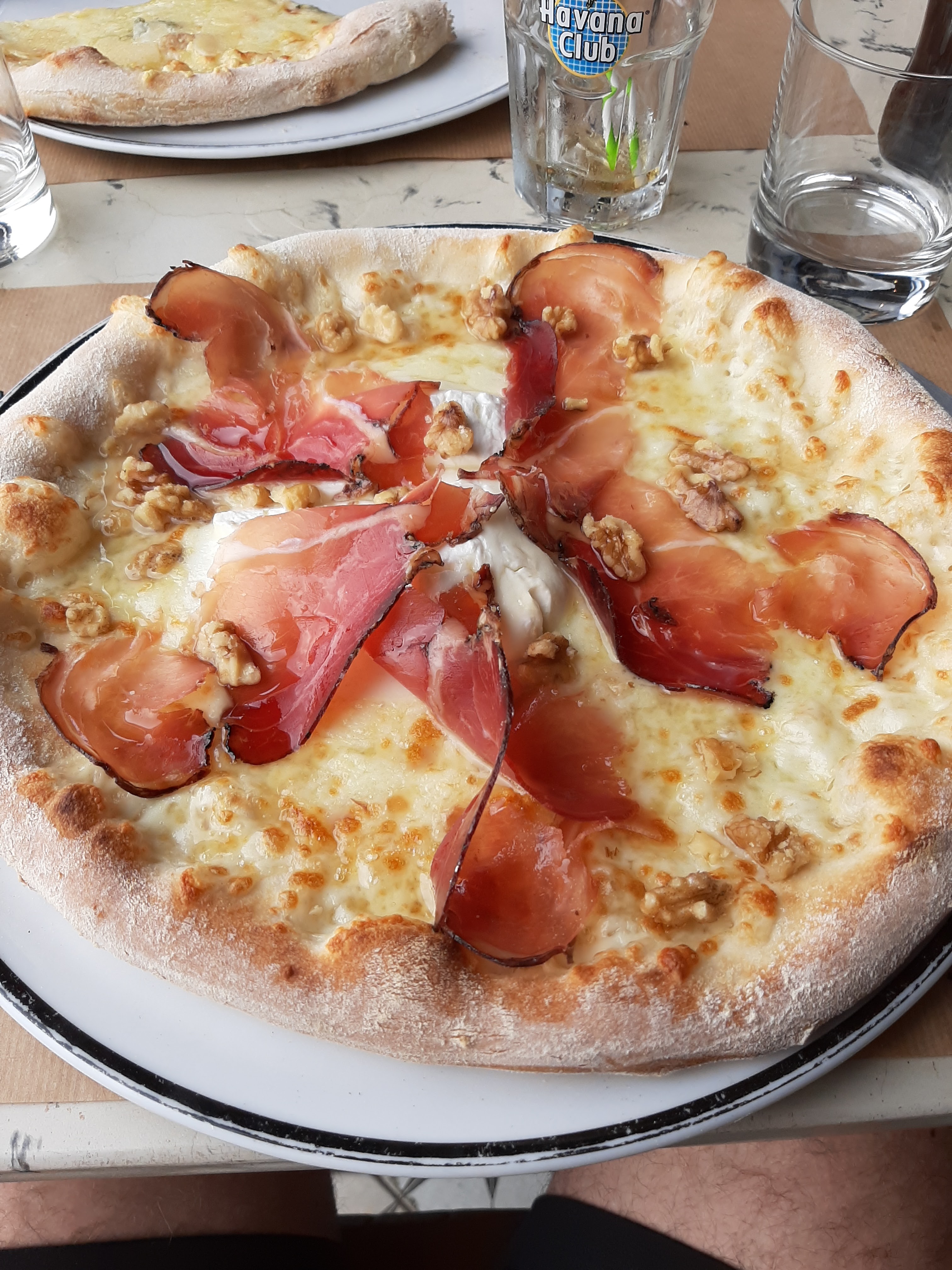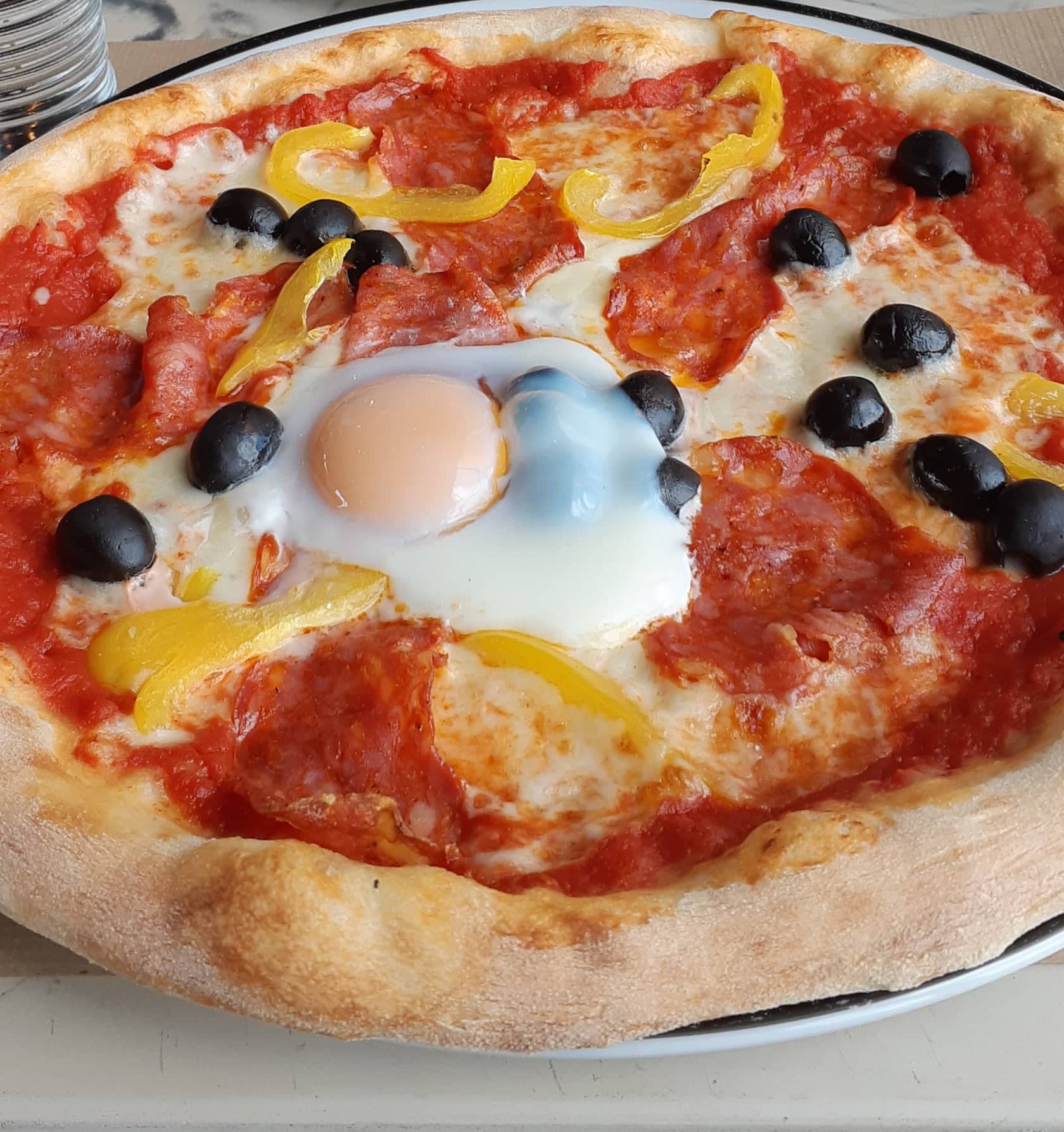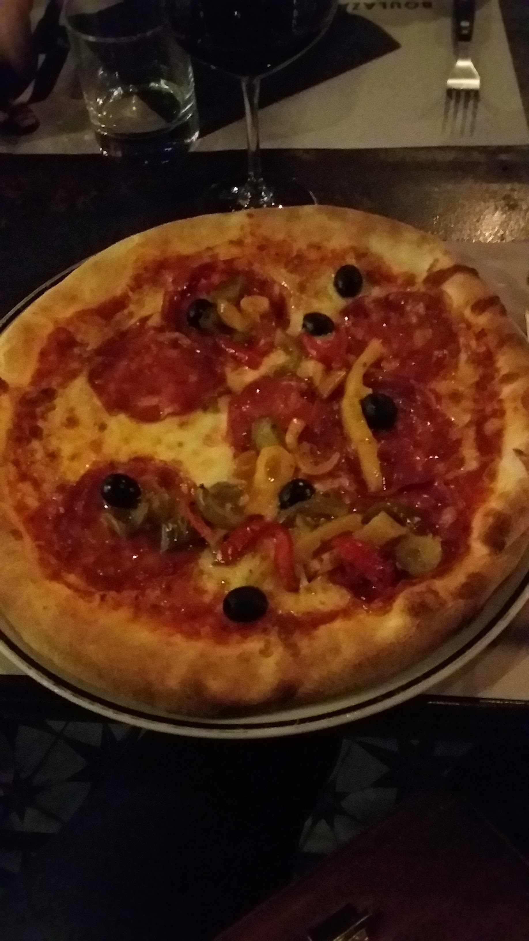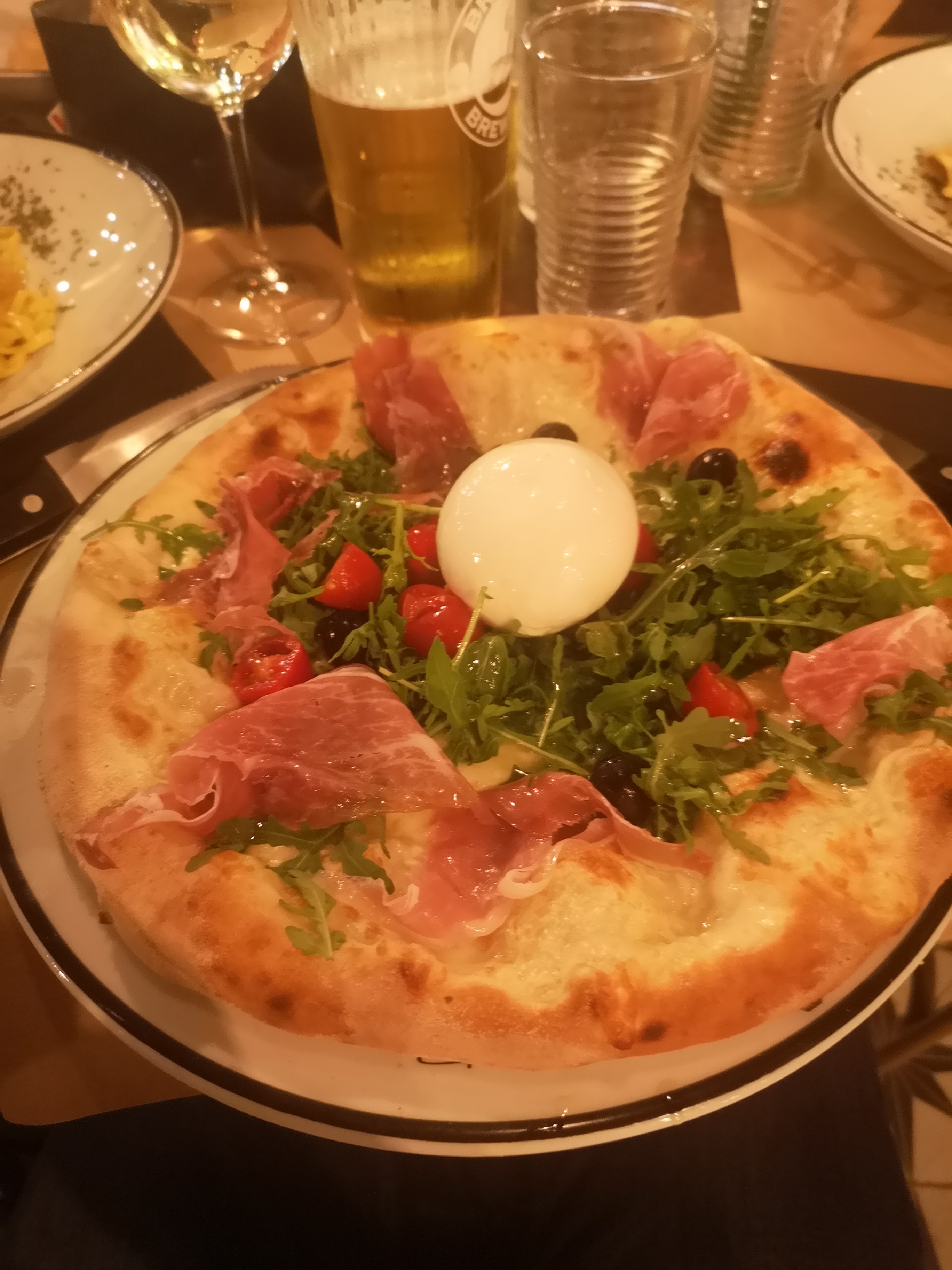 Vraiment déçue, salle très bruyante, manque d'insonorisation, rien que pour cela je n'y reviendrai pas. La terrasse c'était complet. Pizza au chorizo peu garnie, beaucoup d'olives par contre ! l'oeuf c'est du bonus, un euro de plus, heureusement que je l'ai pris sinon j'aurais mangé que de la pâte et de la tomate en boite ! et des olives pardon ... Le personnel est gentil, poli, mais dépassé, ne suit pas. Nous avons attendu une heure pour avoir notre plat. Pourtant la salle n'était qu'à demi pleine, je n'ose imaginer un samedi soir ...