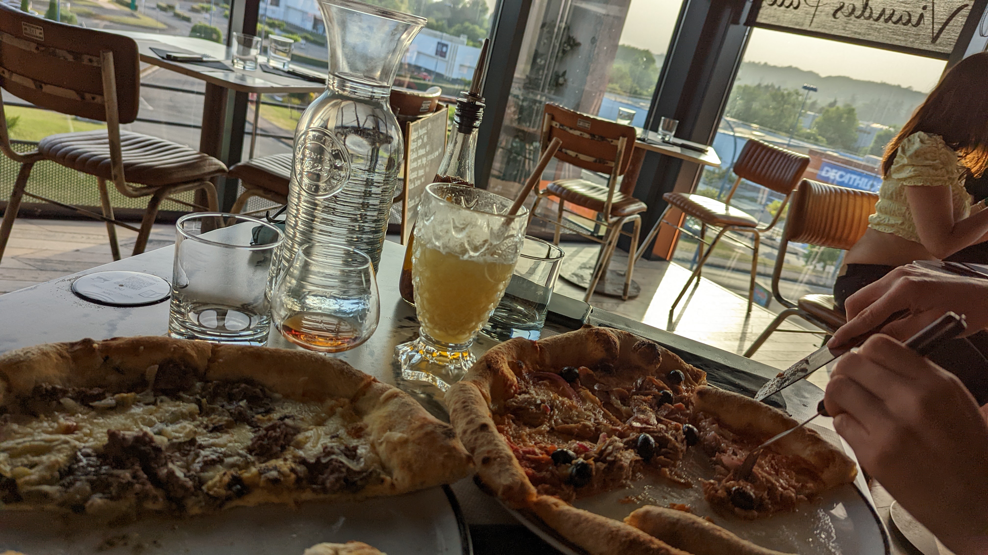 Super endroit, un cadre original, une vue magnifique depuis le rooftop, et une ambiance au top pour boire un verre après le repas. Côté repas, les pizzas étaient excellentes. A refaire sans hésitation pour goûter le reste.... à mon prochain passage dans le coin.