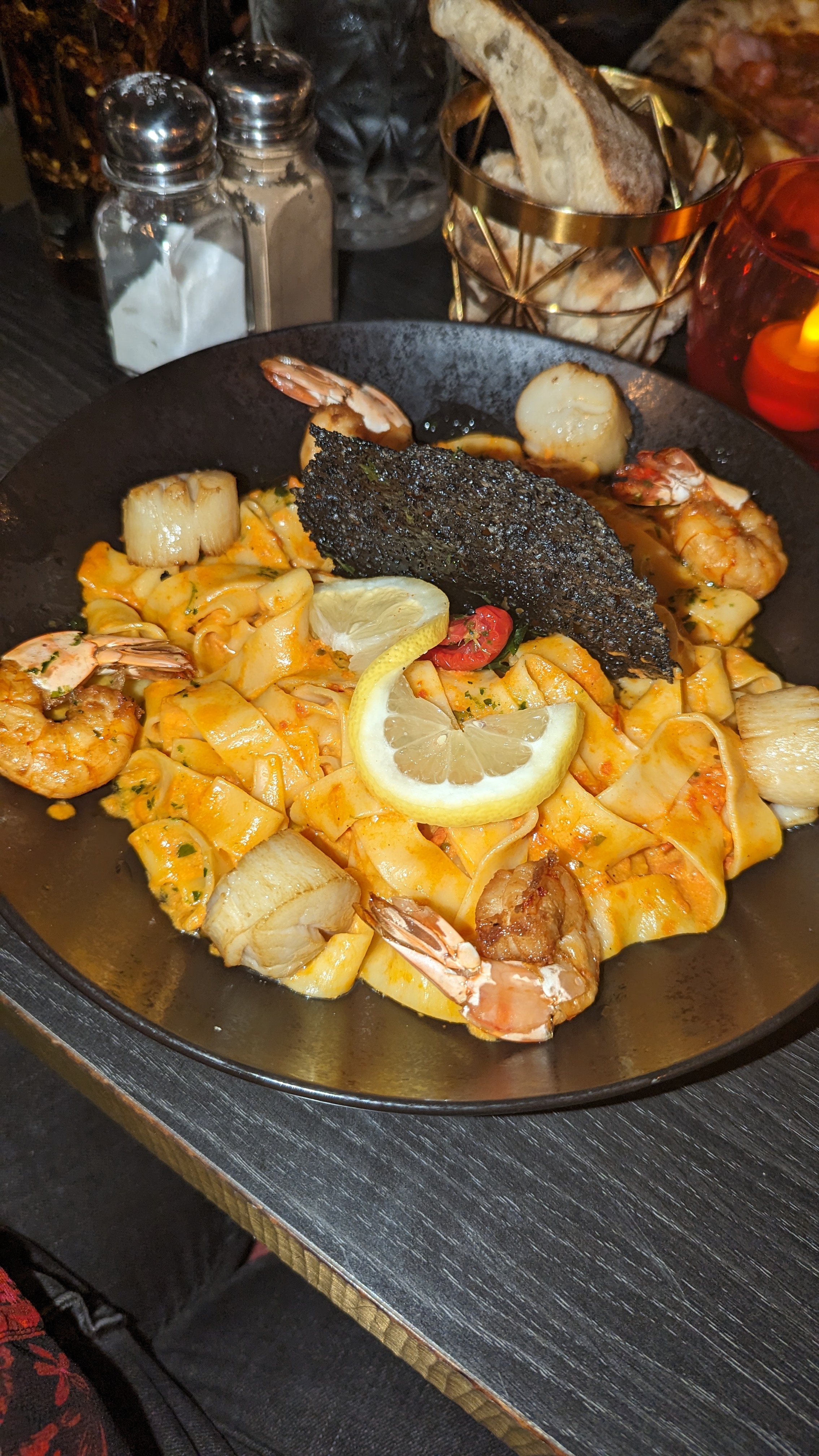 Cela faisait quelques mois déjà que nous n'y étions pas allés avec mon époux...et bien ce soir encore nous nous sommes régalés. Les nouvelles linguinis au potimarron très bon...et le risotto duo tjrs aussi bon..Et le nouveau dessert de feuilleté eu beurre de cacahuète, magnifique. En gros on s'est régalé... Bravo à la Cheffe sa brigade et au personnel en salle...
