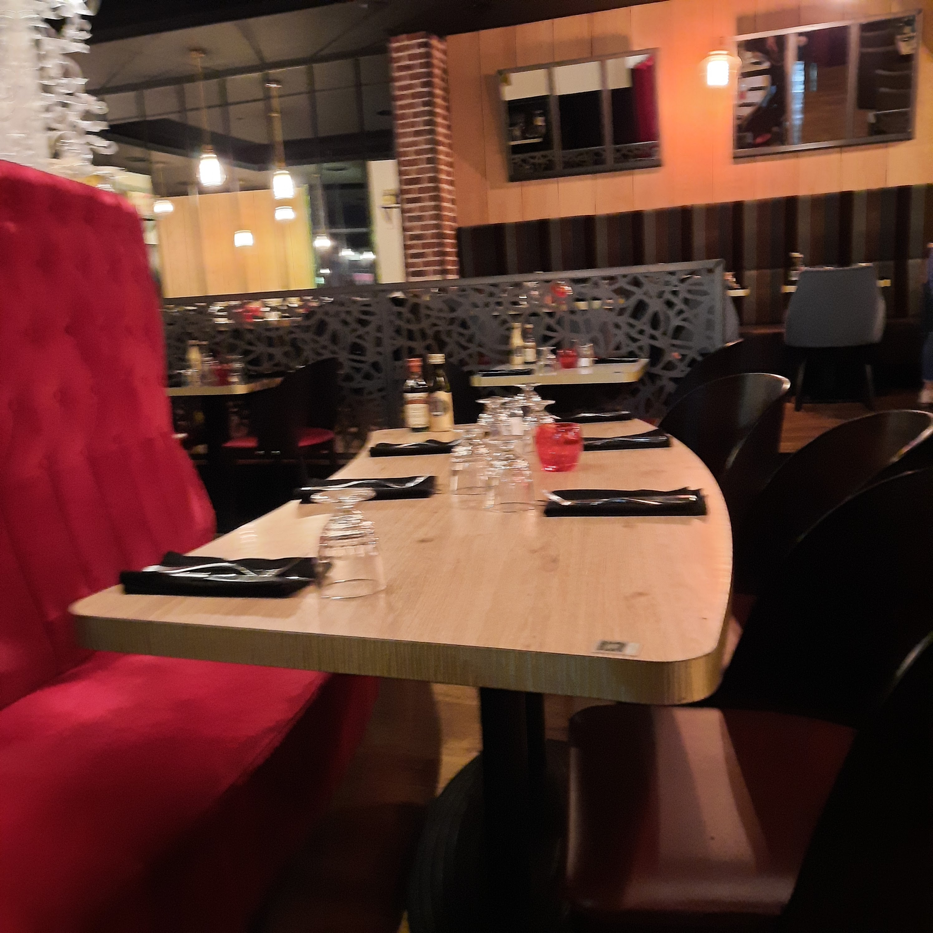 Ambiance jeune et dynamique un peu bruyant en week-end! La déco est sympa et on s y sent bien. Et surtout le grand parking devant est très pratique. Notre serveuse était opérationnelle et très gentille. Les plats sont copieux et très bons. Nous n'avons pas eu de place pour les desserts en ayant prit une entrée et un plat. Les cocktails n avaient malheureusement pas beaucoup de goût et manquaient cruellement de sucre (virgin colada et mojito). J'enleve donc une étoile. Nous y reviendrons tout de même.