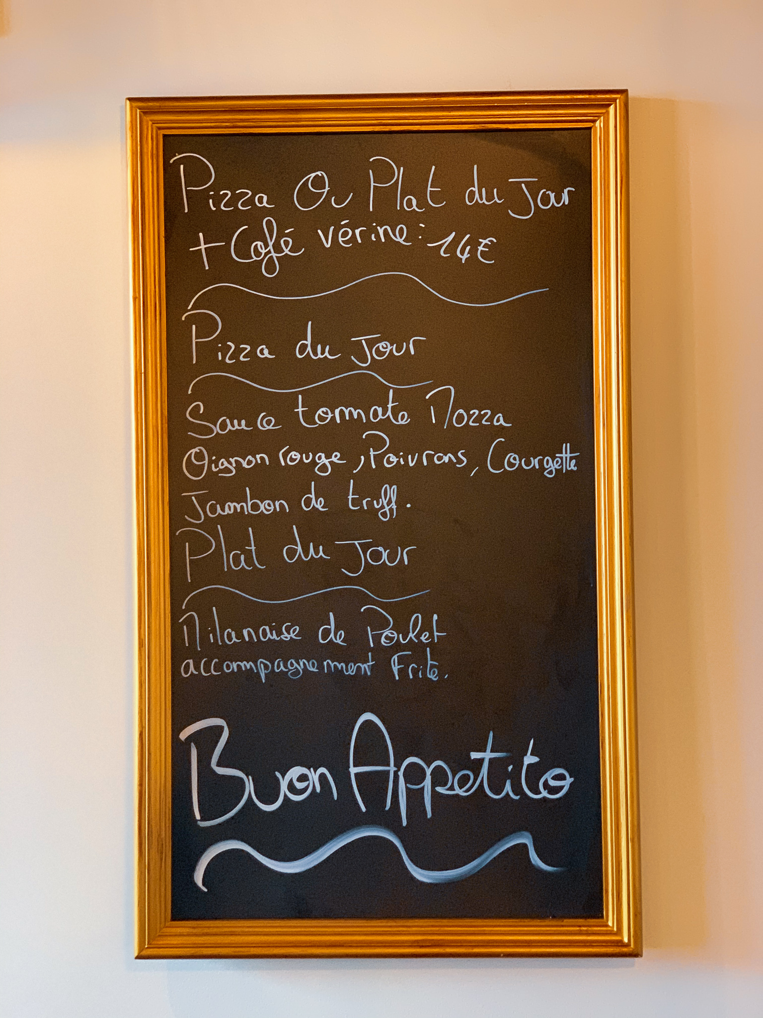 Cadre sympathique pour ce resto italien. J'ai pris l'escalope de veau trufalo. L'escalope était très tendre. L'assiette bien garnie. Je me suis régalé Un peu d'attente mais le resto était bien remplit. Service agréable