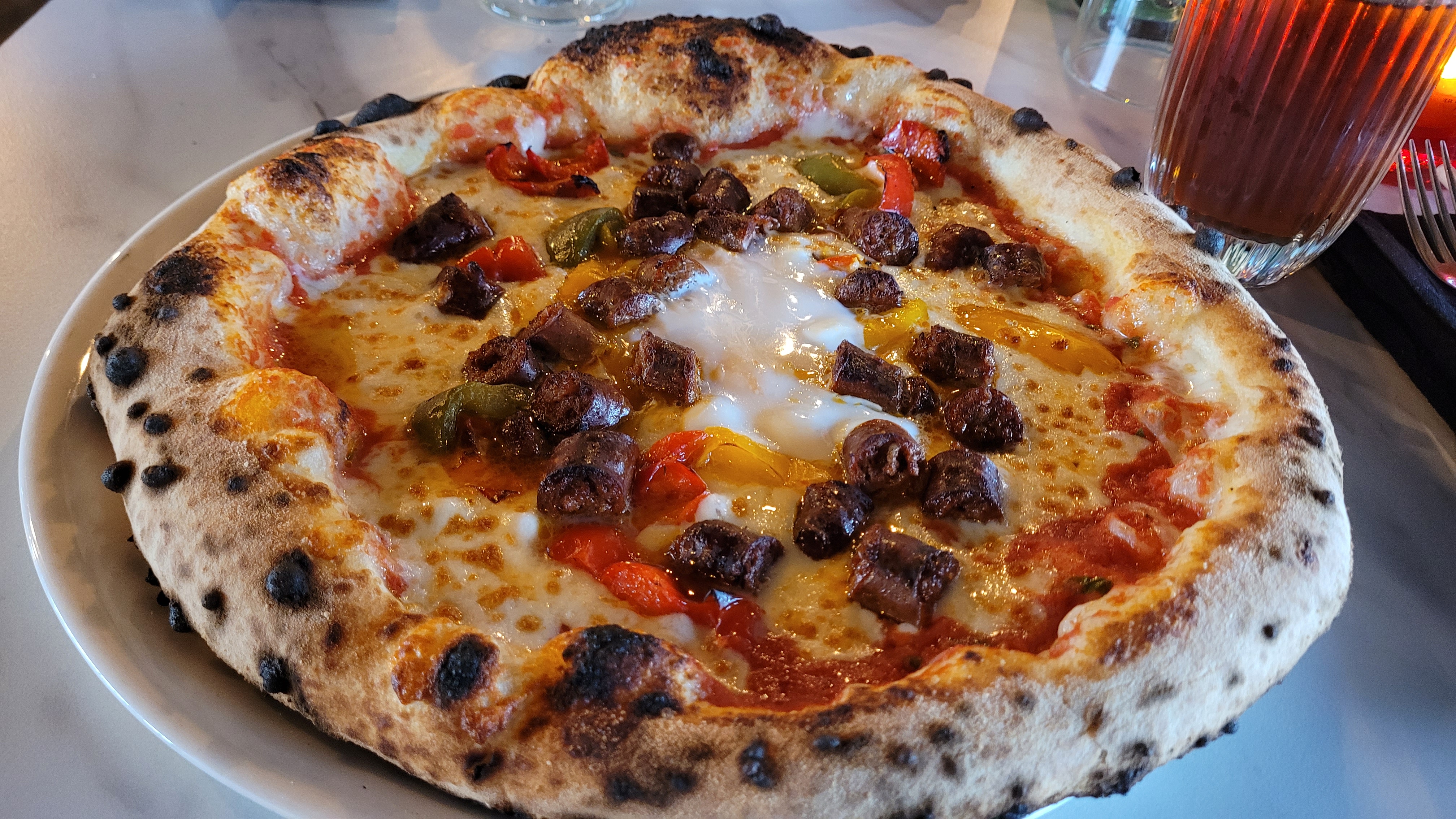 Dîner pour 4 personnes en famille. Repas excellent. Pizzas succulentes avec une pâte légère et soufflée cuite au feu de bois. Personnel très accueillant et souriant. Service rapide. Très bonne expérience, nous y retournerons. Seul Bémol : quelque peu bruyant mais on ne peut pas se dire que si on va au restaurant il n'y aura aucun bruit donc à assumer. Nous recommandons.