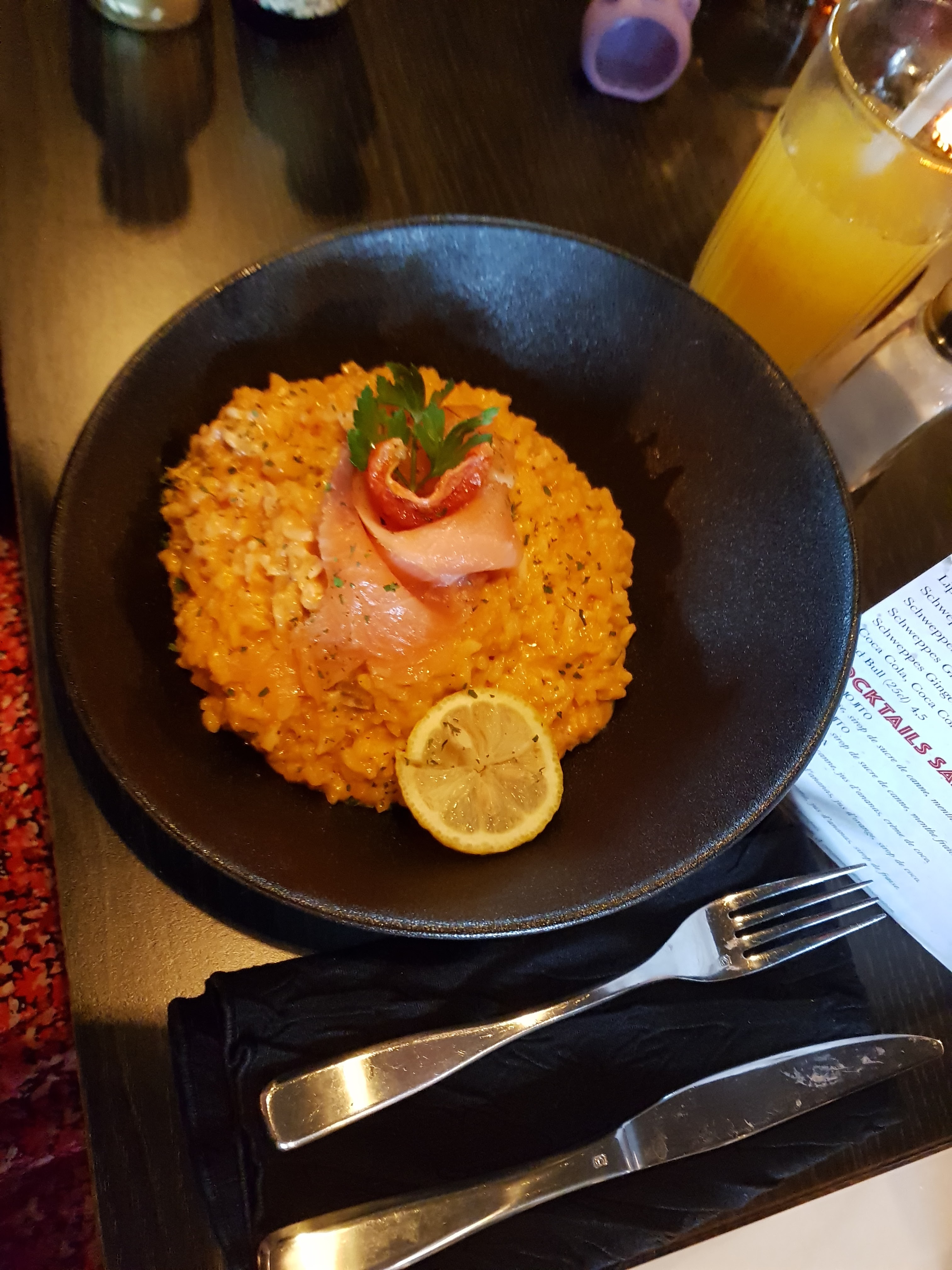 Superbe découverte... Personnel très aimable et sympathique... Plats excellents et rapport qualité prix, au top... Risotto aux saumon /risotto aux poulet et scapiata piquante.... 😉