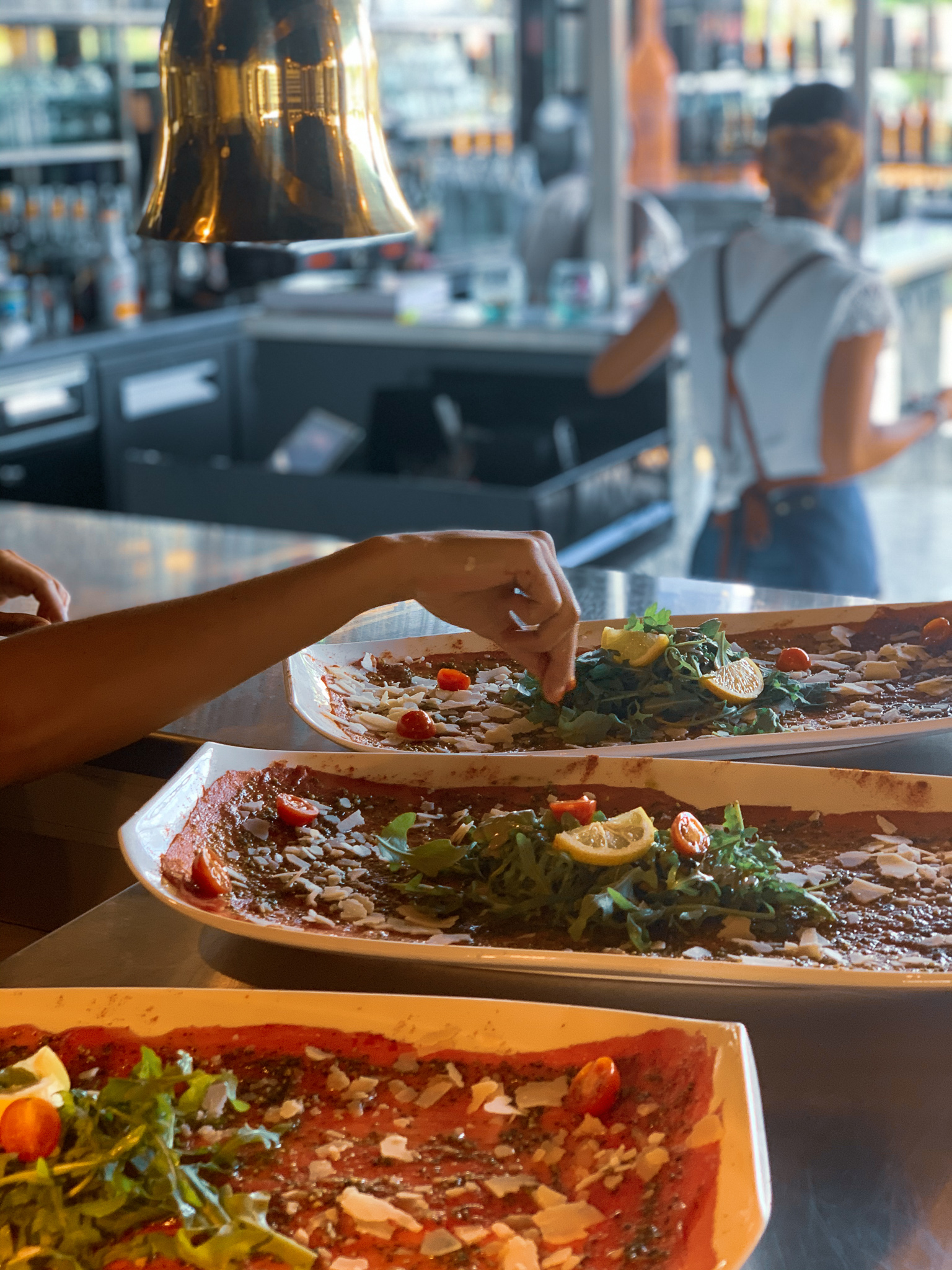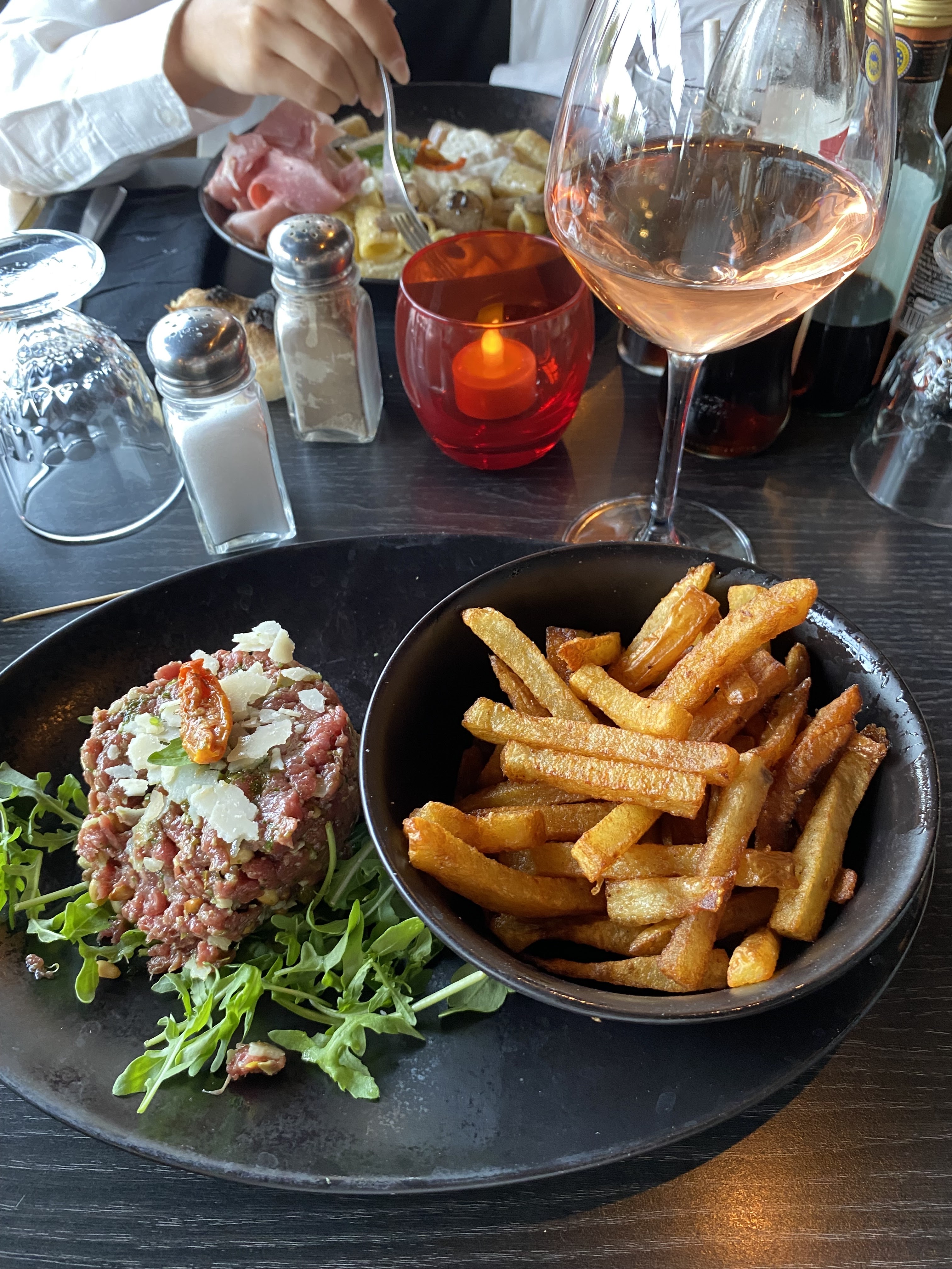 Bonjour, Je suis Venu pour la première fois, et dîner seul avant d’aller au cinéma, surprise par la taille du carpaccio vraiment énorme je pensais mangé léger , finalement je me suis un peu trop rassasié servi avec de la roquette , tomate cerises et frite maison 😋, j’ai bien aimé! Avec une boisson limonada citron italien super bonne ! J’ai demandé un dessert pour la fin un tiramisu maison mais j’ai pas trop aimé un peu trop coulant ou trop de chantilly et l’attente a été long 15min pour le dessert au bout d’un moment j’avais plus trop faim et j’avais peur de rater ma séance de cinéma. Enfin bon sinon bon repas et je recommande !