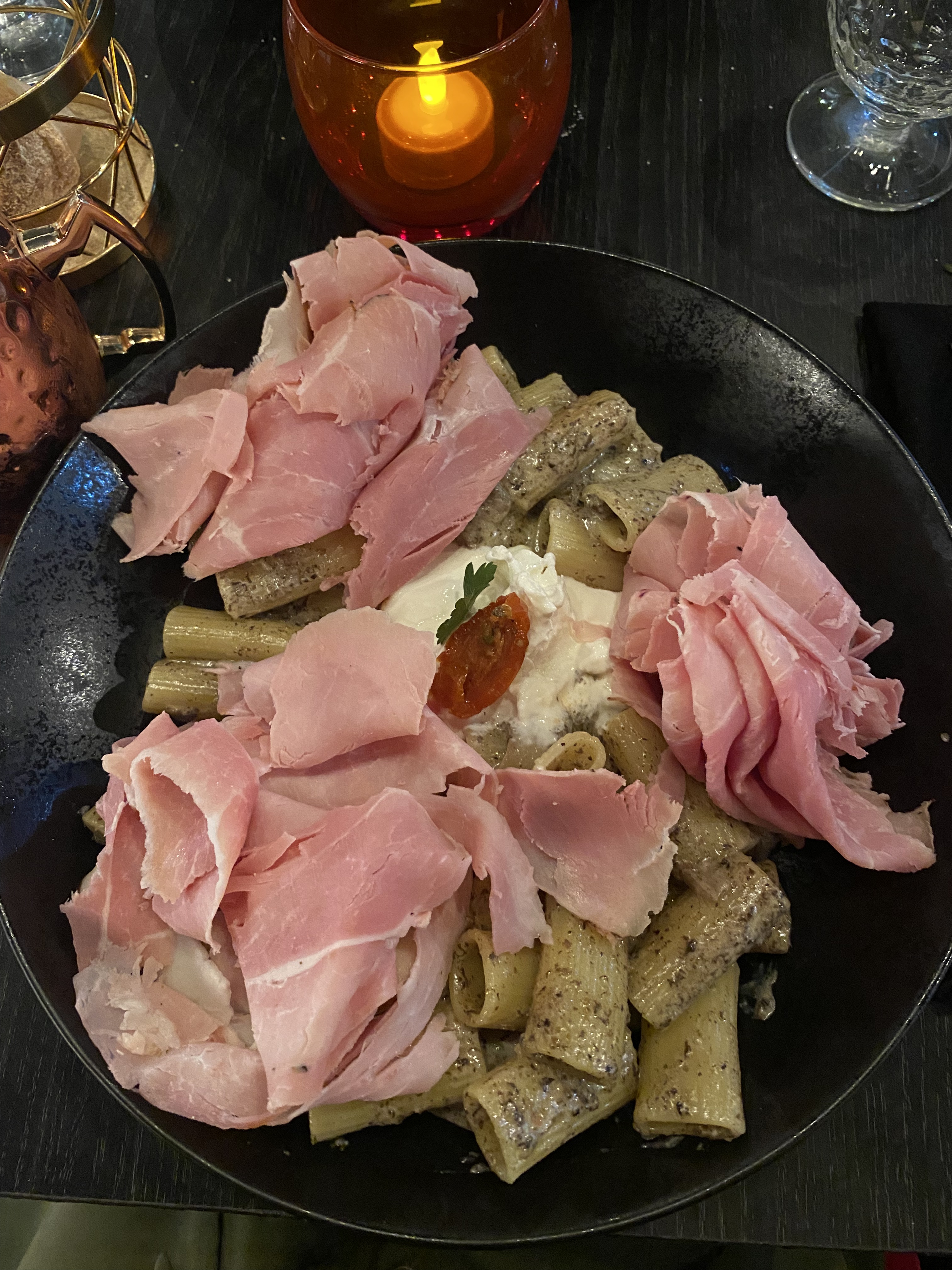 Venu à 2, nous nous sommes régalés, cependant il est vrai que les gambas ressemblaient plus à de grosses crevettes et pour le prix nous nous attendions à un peu plus de quantité (4). Rien à dire de la sauce à la truffe, les cocktails étaient tops et nos pâtes aussi, par contre dommage pour les fruits rouges servis sur la pana cotta qui avaient de la moisissures à l'intérieur. Nous reviendrons tout de même