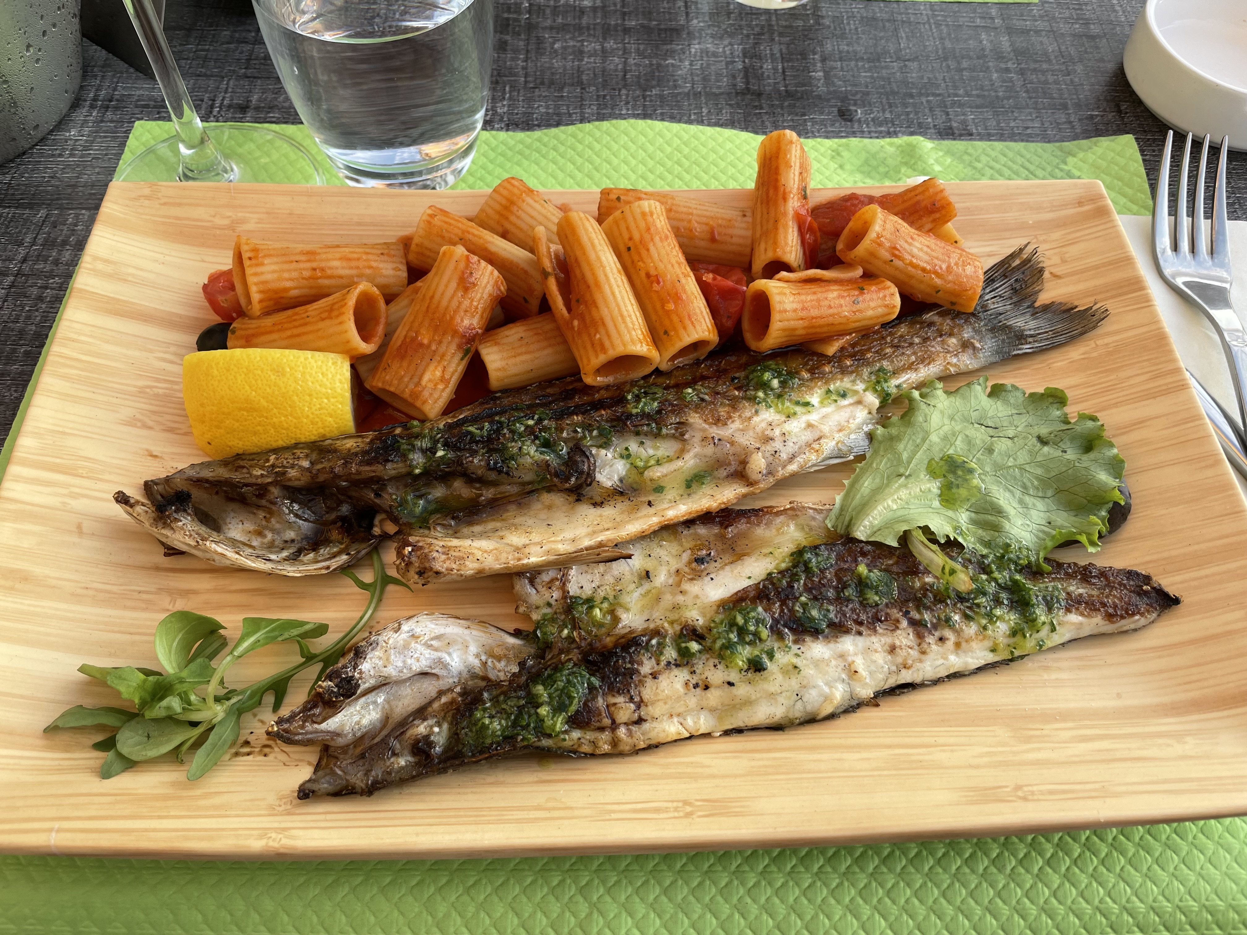 Pizzas et pâtes très bonnes Poisson grillé très bon mais facturé plus cher que ce qui était indiqué sur l’ardoise Désert pas assez de chocolat sur les poires belle Hélène ,chocolat froid c’est meilleur avec du bon chocolat chaud On reviendra comme même car on a comme même bien mangé …