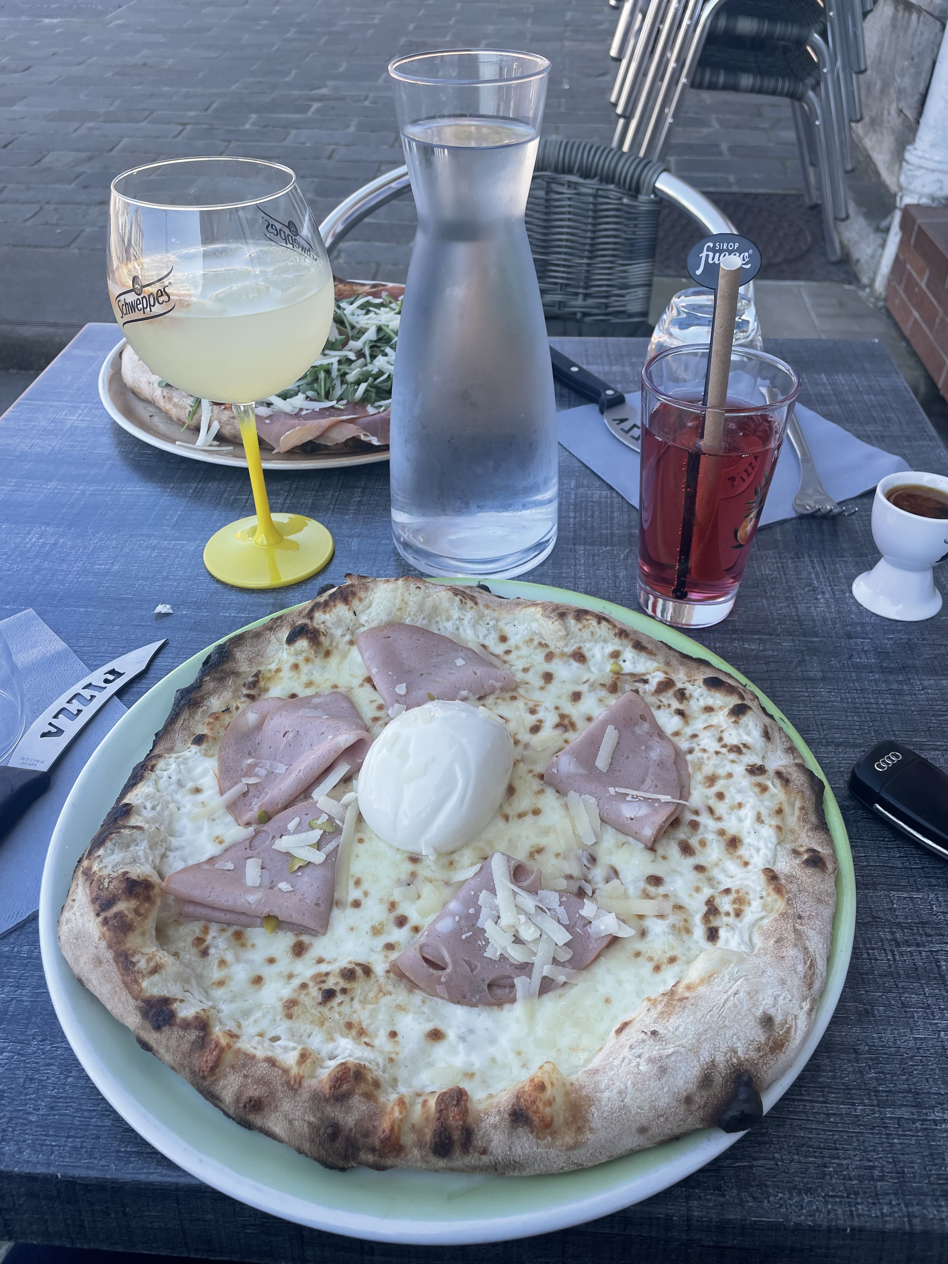 De très bonnes pizza, ici en photo la Parma, très rafraîchissante, pâte aérienne. 🍕