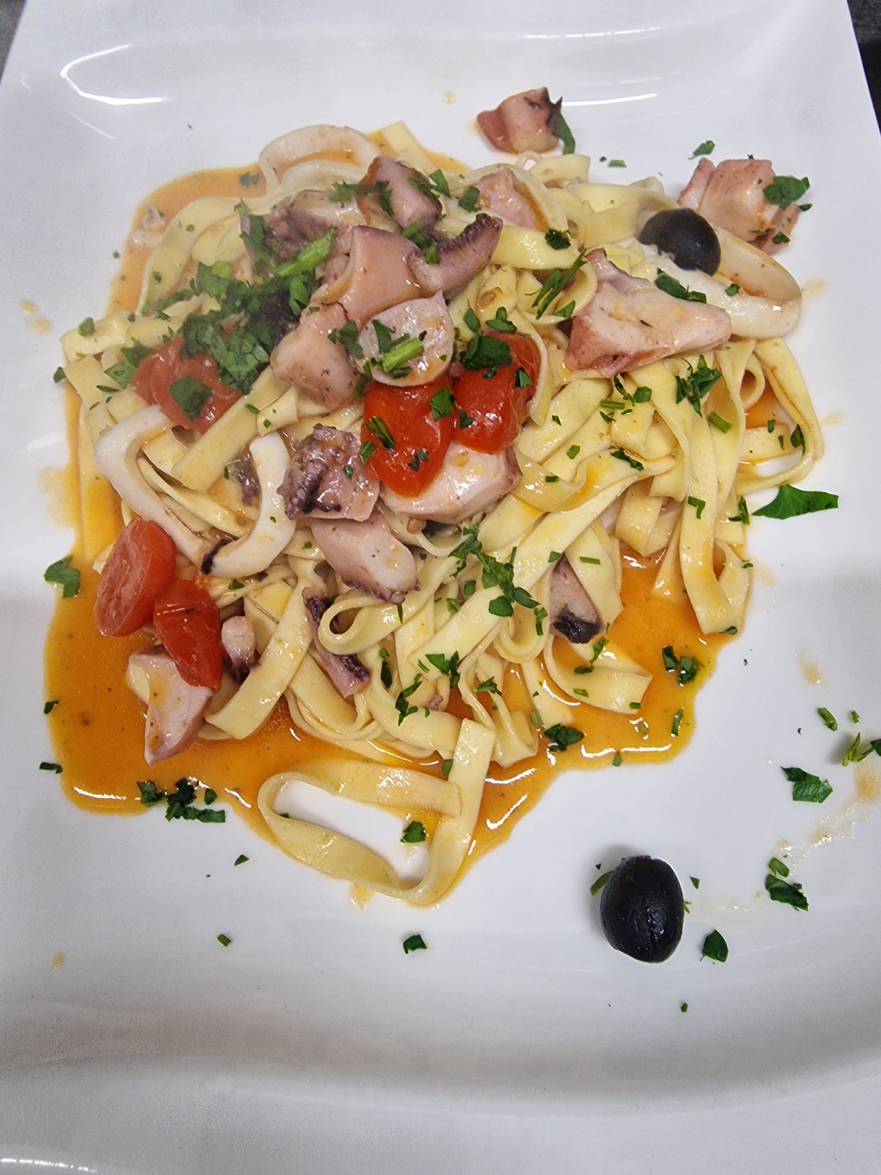 Service long car peu de personnel. Prix un peu élevé pour quelques beignets de calamar avec une poignée de spaghettis.
