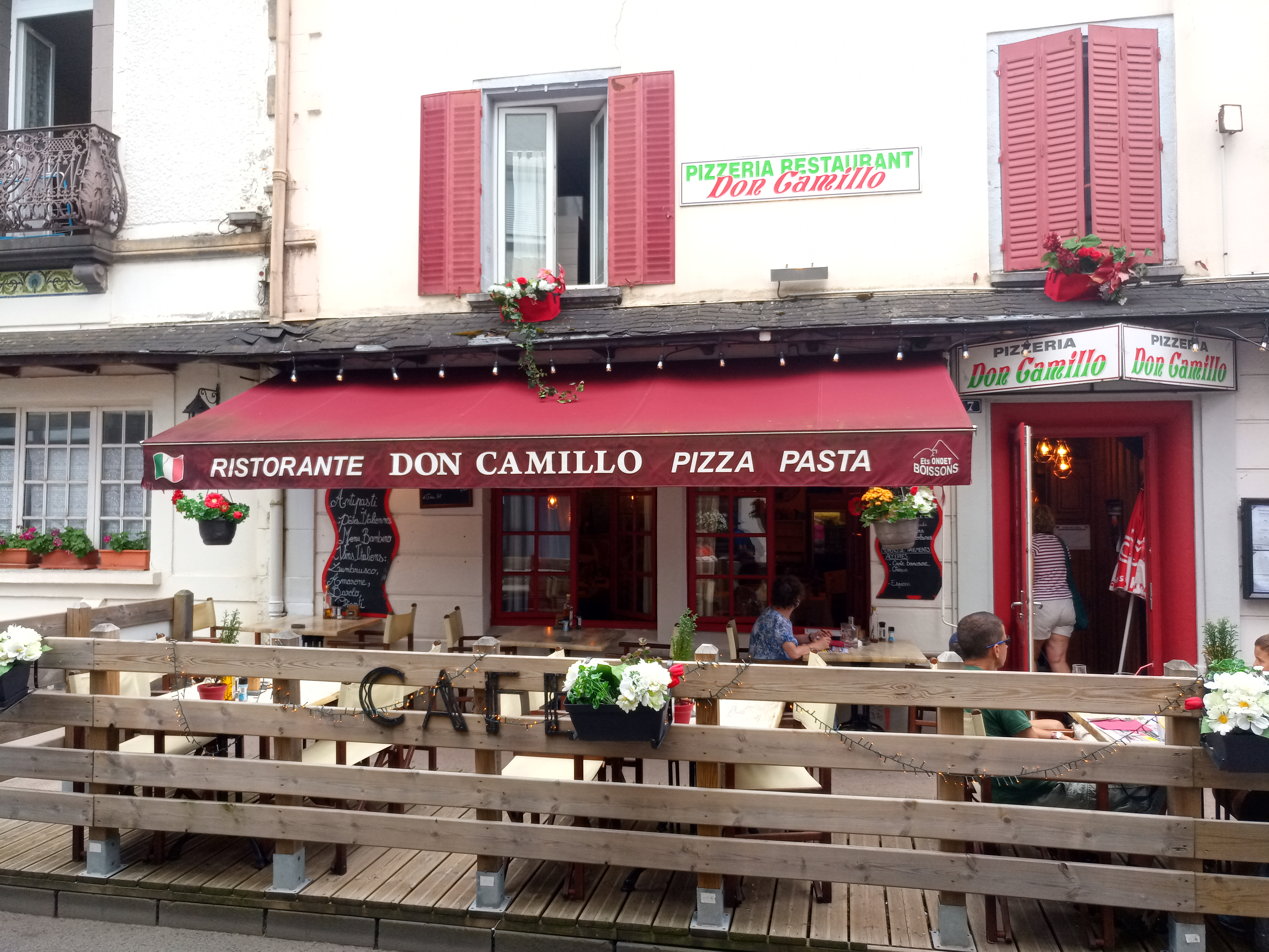Retour de randonnée dimanche vers 15h nous avons pu déjeuner au don Camillo. Salade et pizza excellentes ainsi que les desserts.Service rapide . Très bonne adresse.