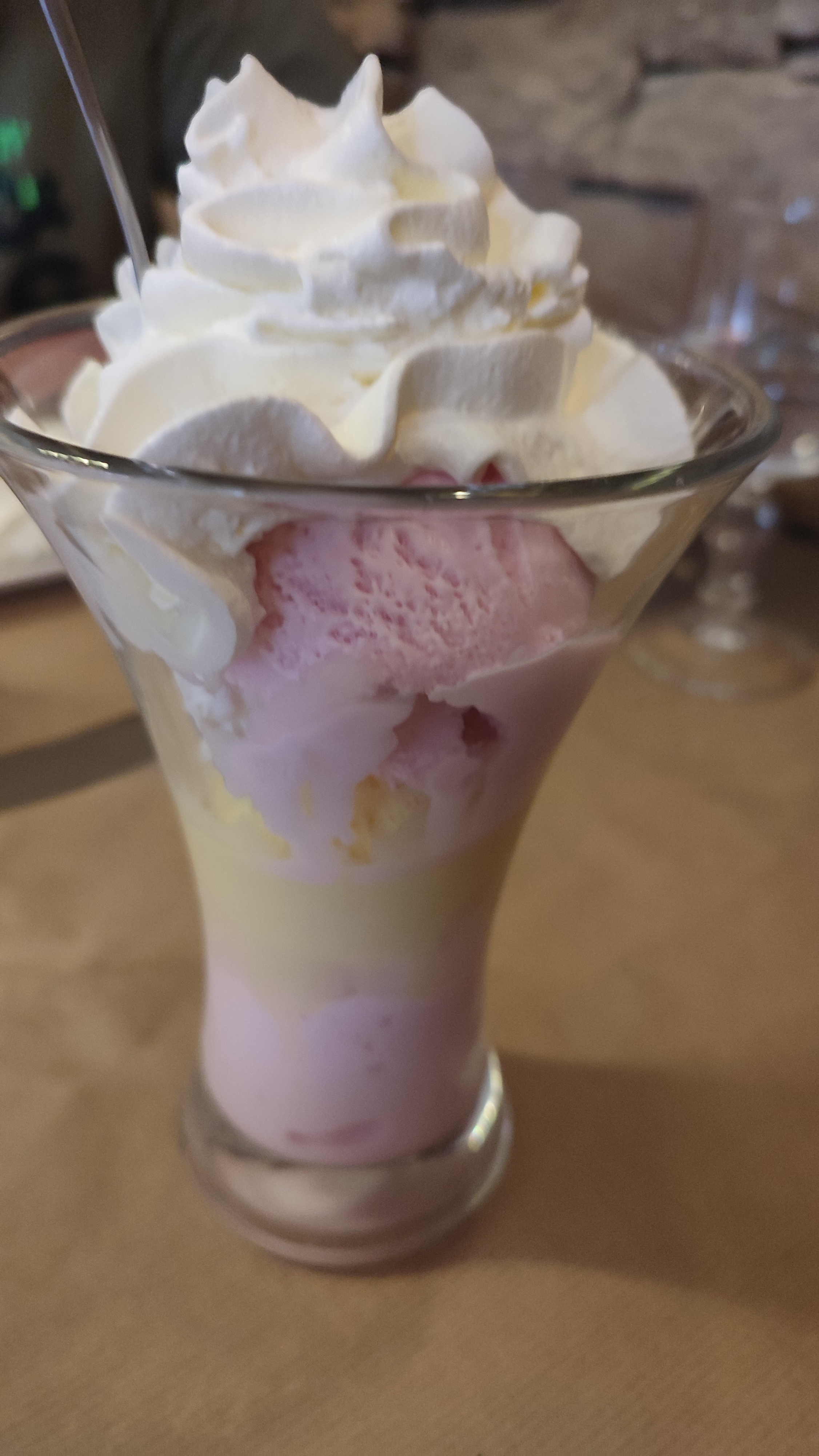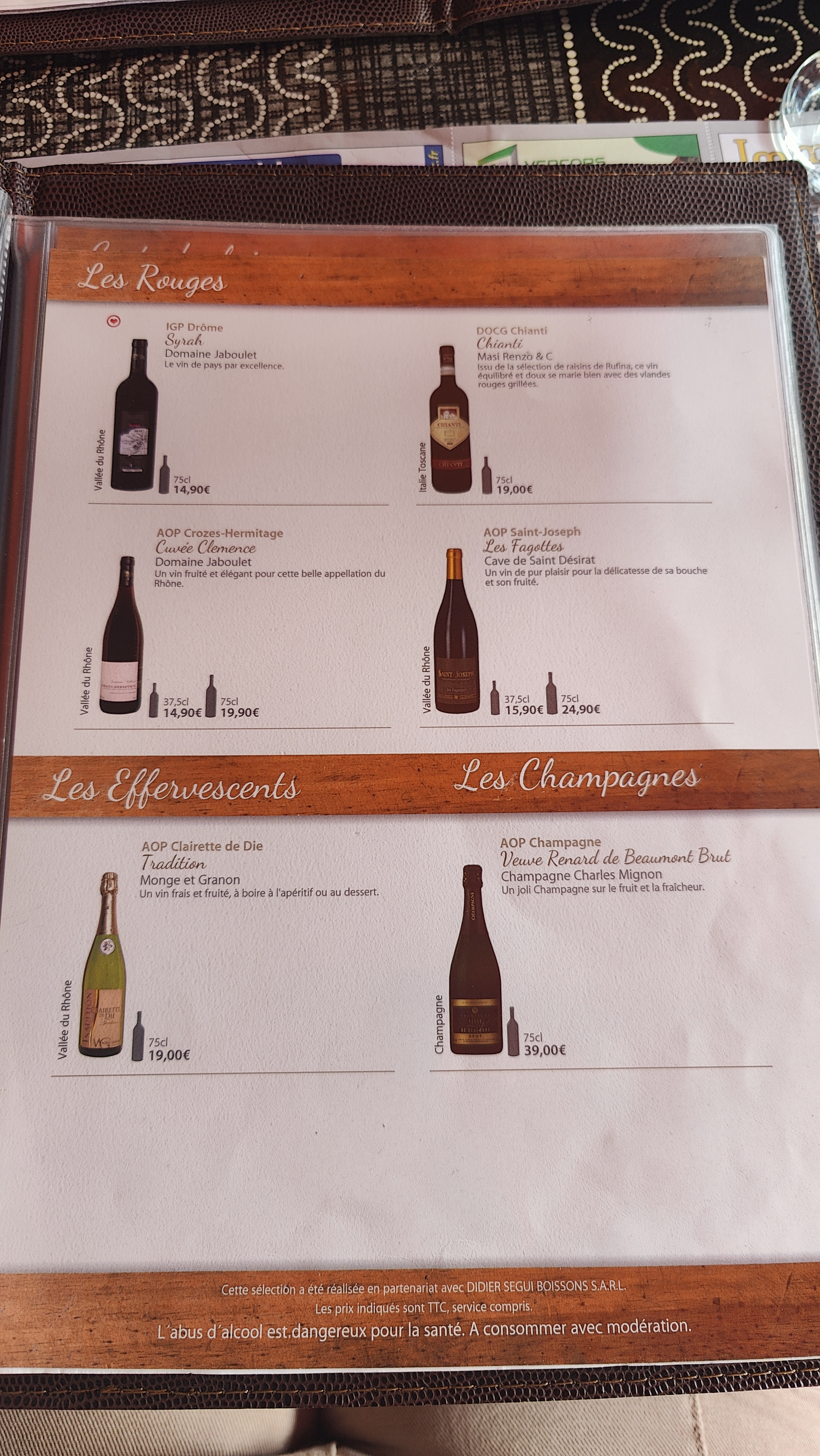 On attend d'autres suggestions du chef !!!! Et le dessert glace Ardèchoise sans glace marron et une trace de crème au marton.... lamantable!... je n'y reviens plus....