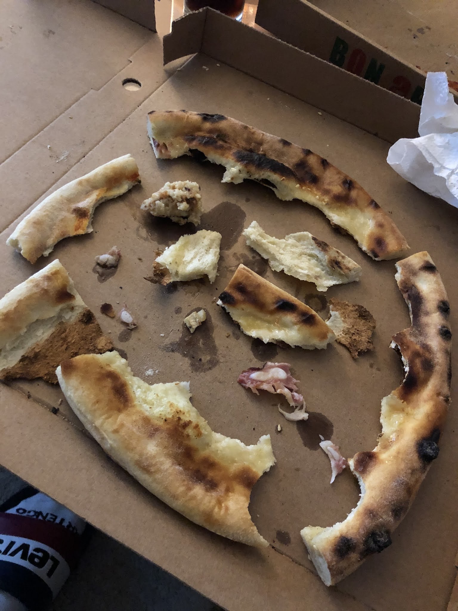 La pizza aurait pu être super bonne si elle n'avait pas été cramée tout le dessous donc forcément ça laisse un goût de brûlé à chaque bouchée : vraiment dommage!!