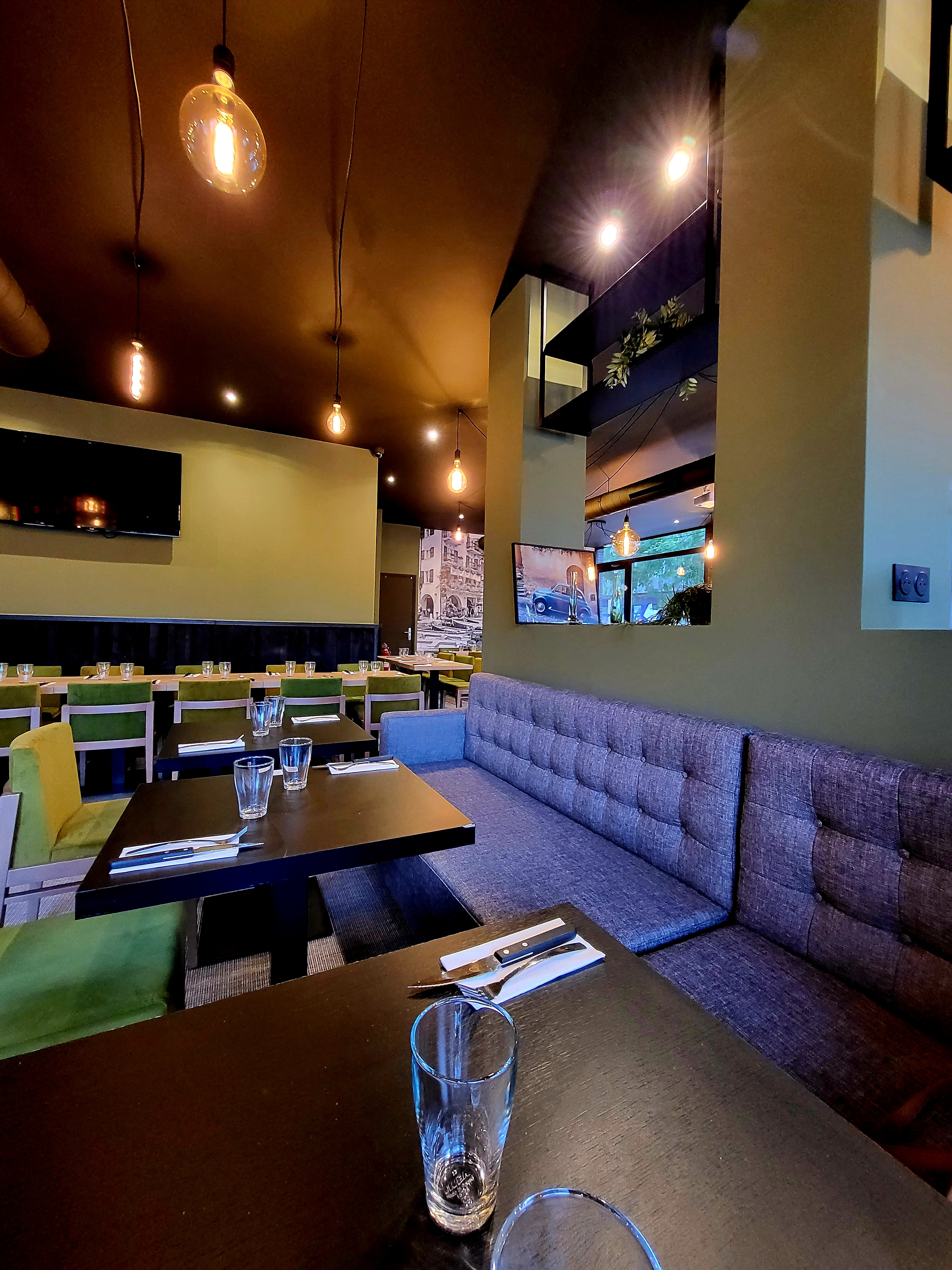 Gros vendredi ce soir pour le SO lors de notre première visite. Une équipe jeune et dynamique, et même si certain manque encore un peu de professionnalisme et d'organisation mais il y a de bonne volonté et des sourires. Pour la cuisine, les pizzas, comme les autres plats ou les cocktails sont de bonne facture, on s'est régalé pour un prix raisonnable. Pour le reste, vous aurez la choix entre table standard et table haute et une déco sobre et chic. J'y retournerai sans problème avec l'indulgence qu'il faut avoir pour un nouveau restaurant qui monte son équipe ... d'ailleurs, il cherche du monde tant en cuisine qu'en salle ;-)