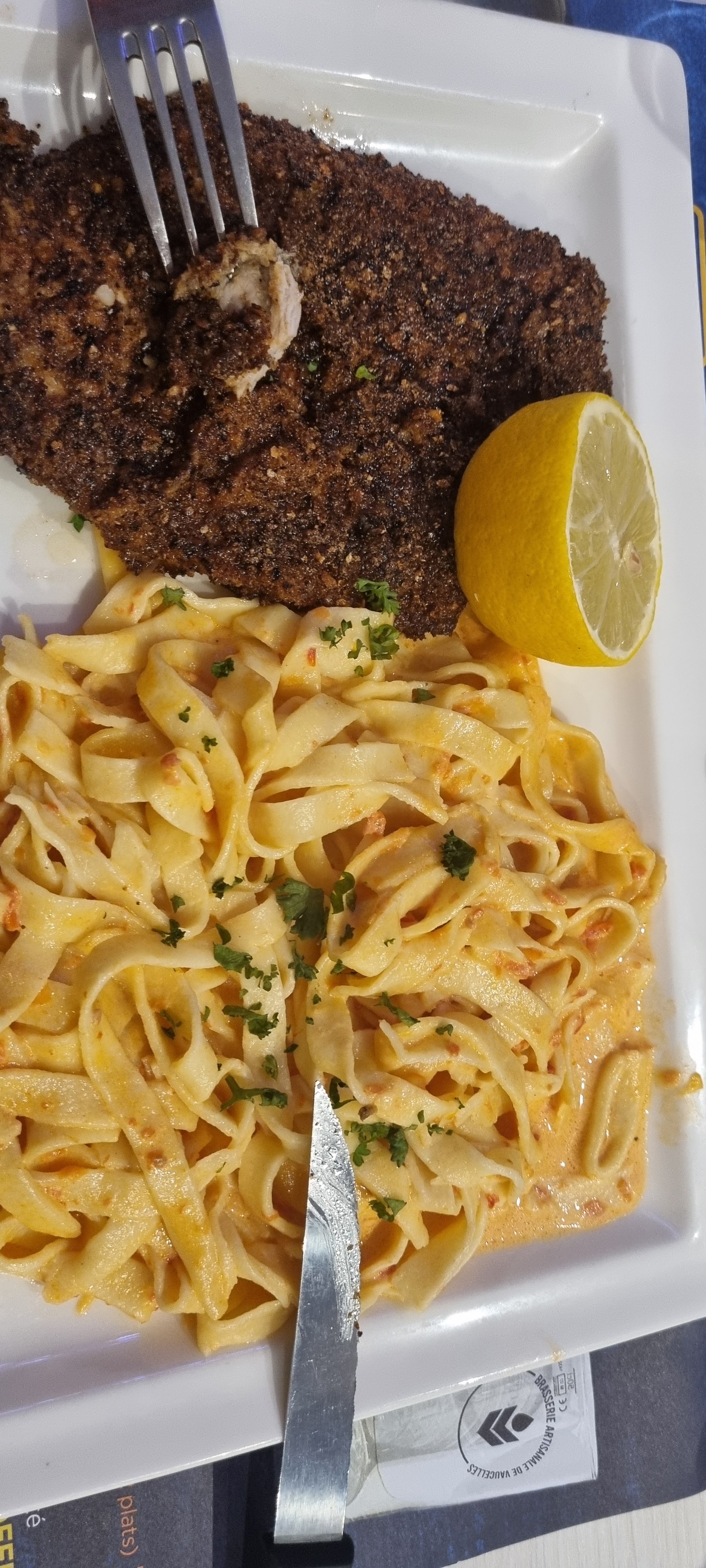 Je suis venu un midi avec ma femme. Nous avons beaucoup aimé notre repas. J'ai pris une escalope a l'italienne avec des linguines et je doit dire que je me suis régalé. Merci aux cuisinés c'était parfait 👍. Nous avons été charmé par la belle terrasse et les nouveaux patrons sont très sympathiques et efficace. La note de 5 est amplement mérité.