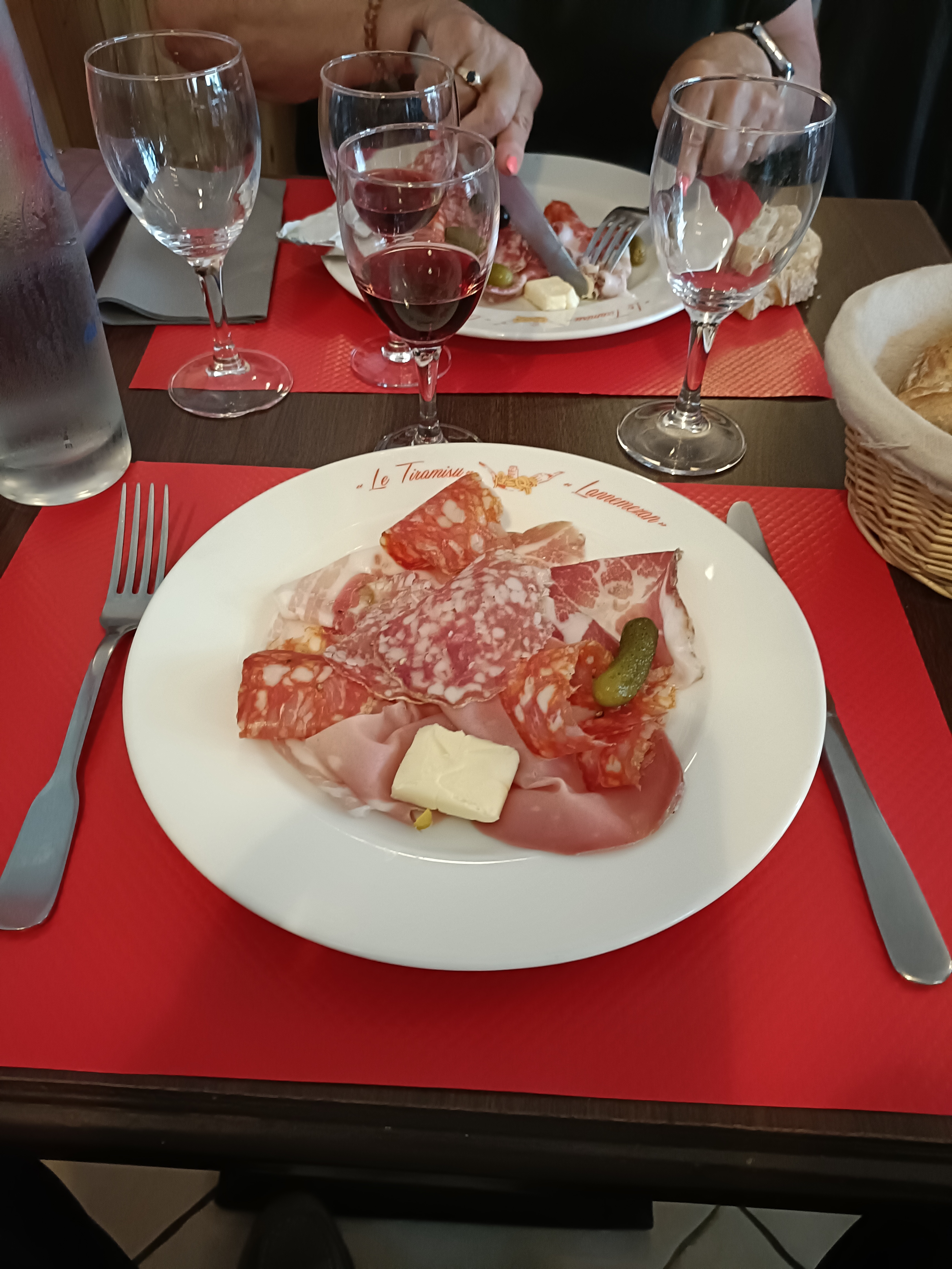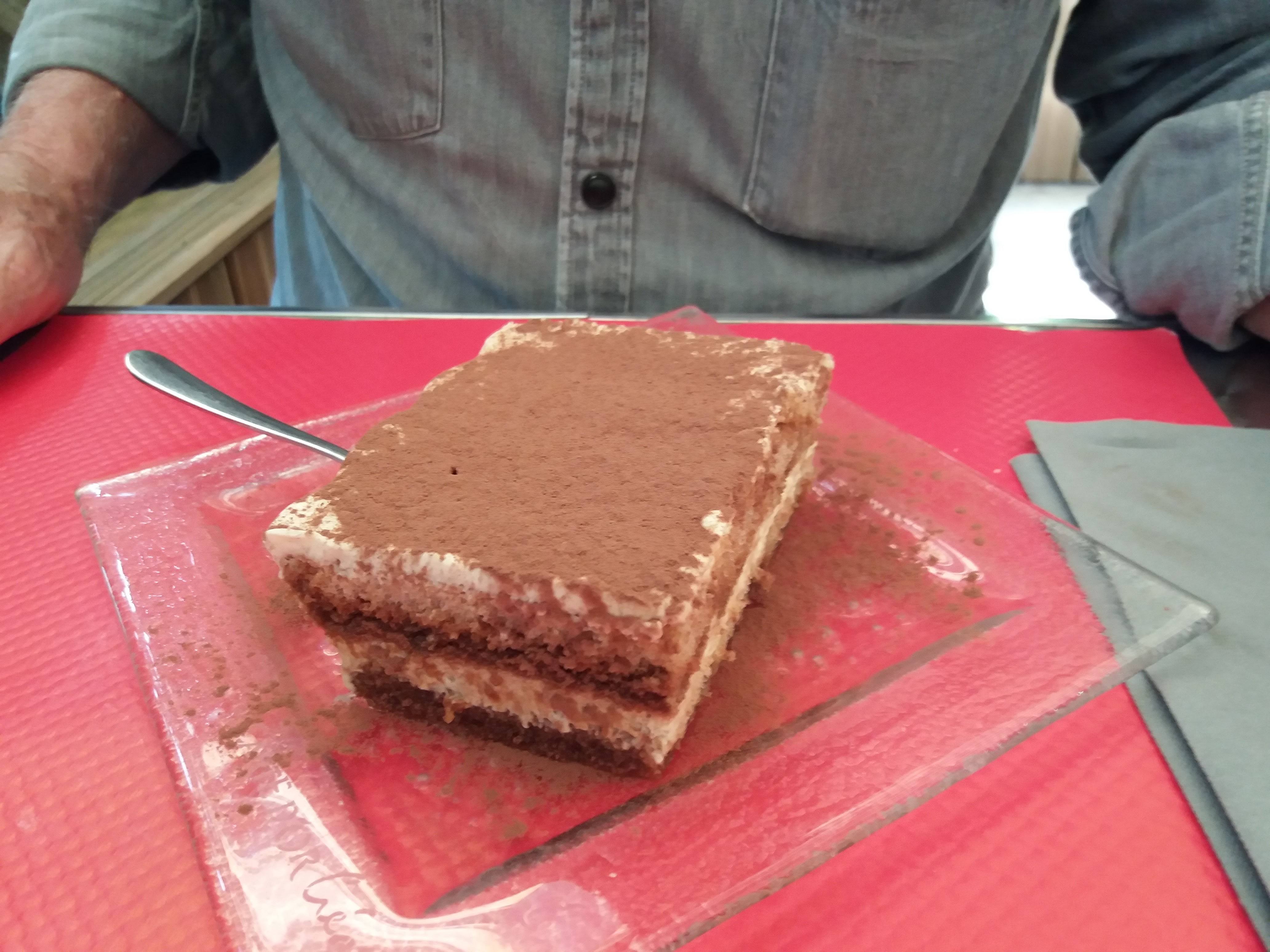 De passage dans la région, suite une hospitalisation d’un de mes proches, je découvres le Tiramisu. Nous sommes dimanche, l’ambiance est familiale, agréable et festive. Service par une jeune femme agréable et souriante, et par le patron décontracté et rigolo. Il est presque complet (2 grandes tables) il refuse même des personnes pour préserver le service et le bien-être des employés en cuisine et service. En ce qui est du repas, là salade au chèvre/pommes et sauce caramel est un délice et l’assemblage des saveurs me donne encore l’eau à la bouche. Pour être gourmande, je prend une coupe glacée Visivio, que je peine à finir, non pas par délice car elle est légère, mais parce que la salade m’a contenté. Mon petit bémol serait pour le spritz apérol qui était très mal dosé et/ou ne sentait que l’apérol …