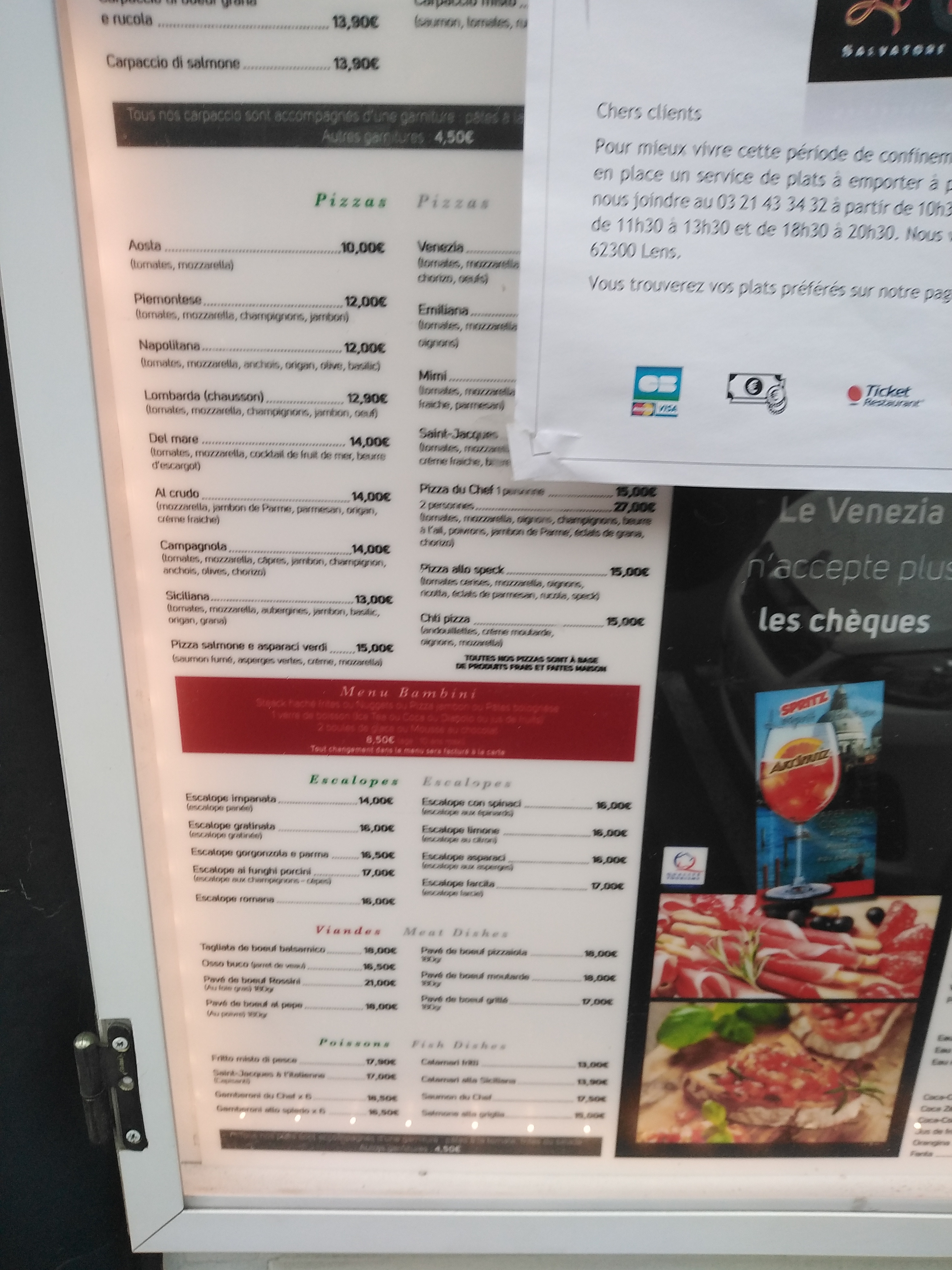 Le Venezia à Lens (62) : à l'issue du match de foot Lens - Nice, sommes allés souper après réservation. Bon accueil, bonne carte bien fournie et plats très copieux, voire trop, mais excellents. Je recommande.