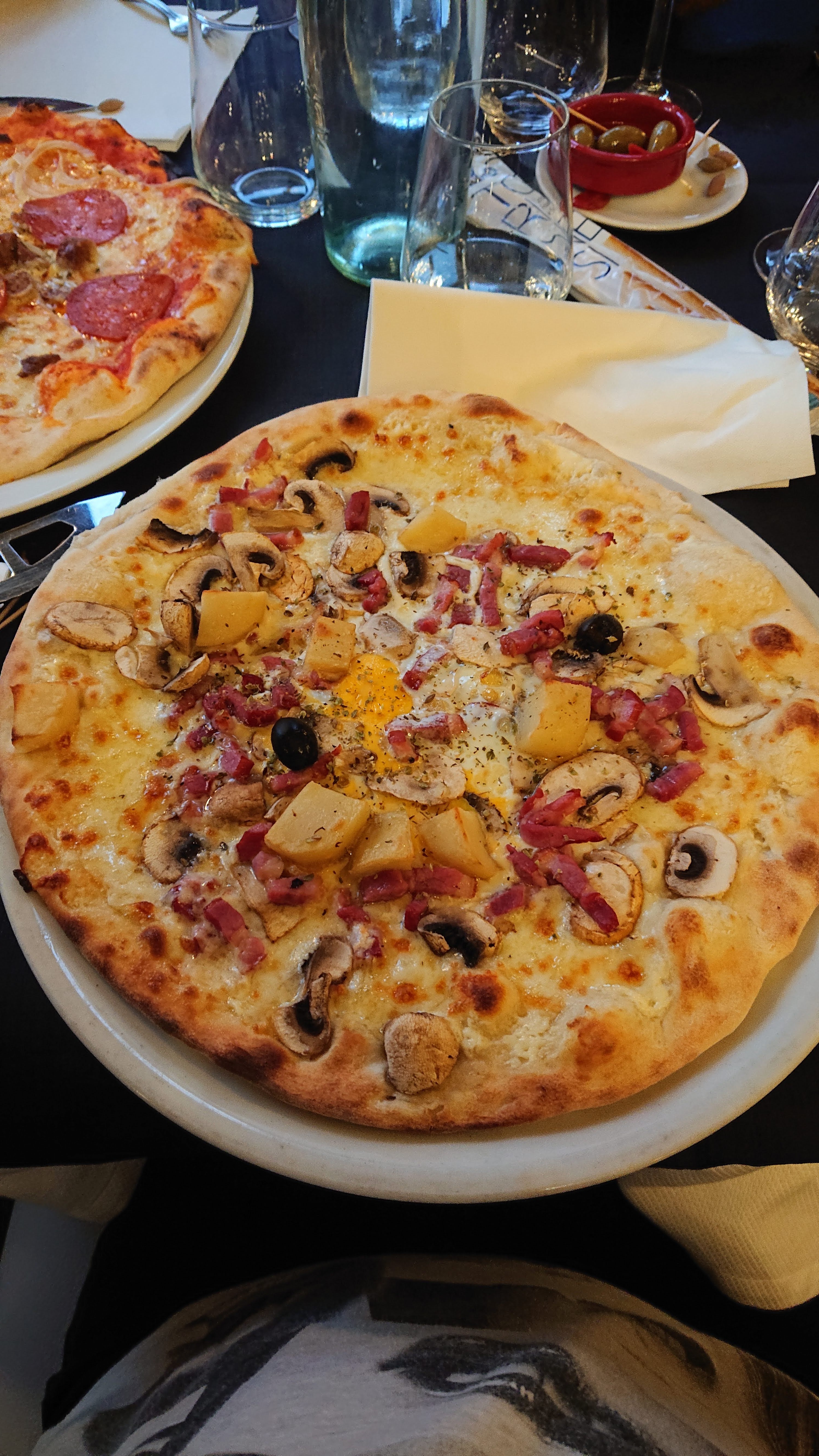 Pizza correctes, bien remplies et pâte bien cuite mais plus de cèpes à 12h30 alors que le plat du jour sont des pâtes au cèpes...