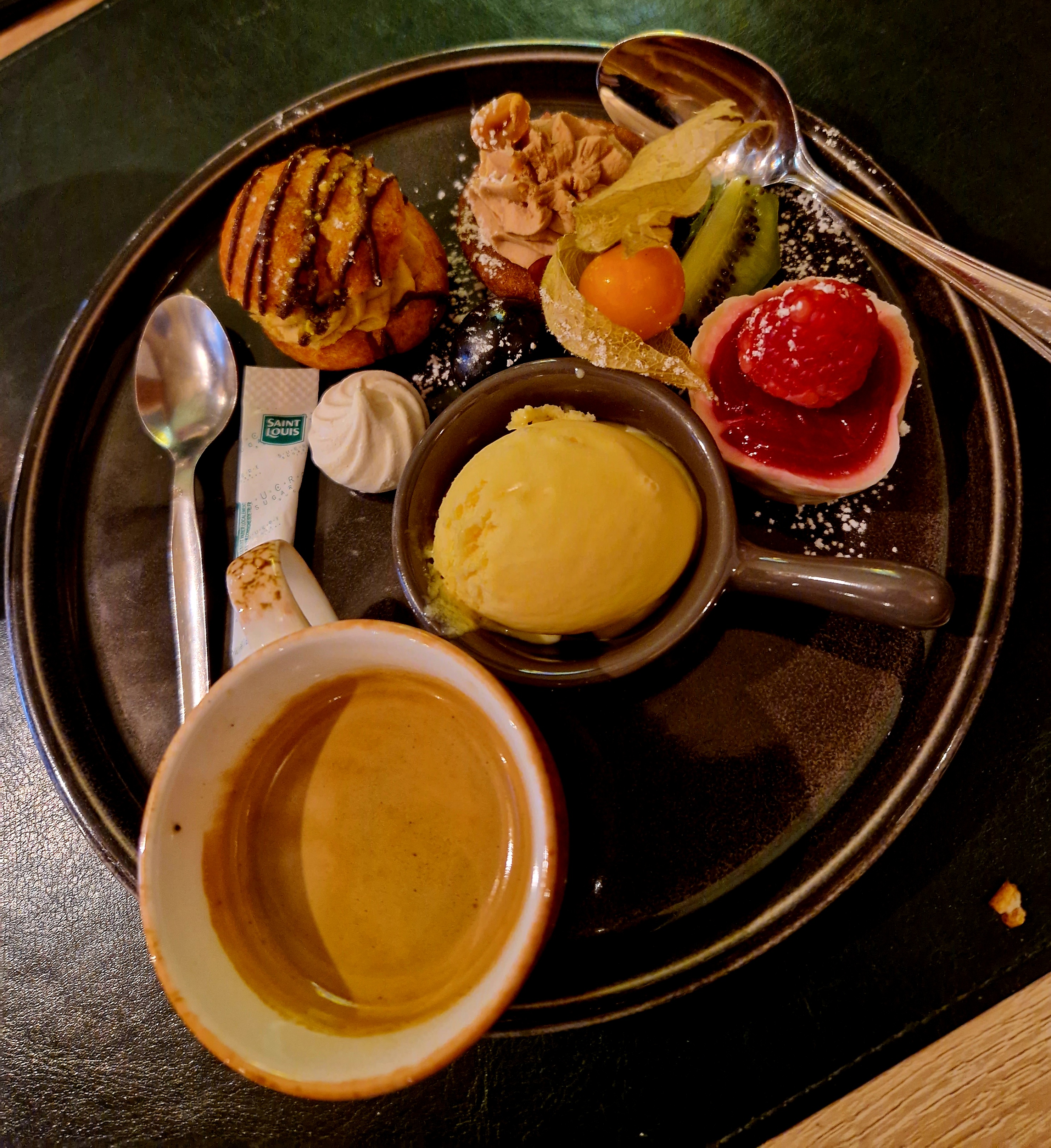 Très bon repas dans une ambiance sympa... juste dommage que les personnes sleevees ne puissent pas avoir un repas taille enfant facturé en taille enfant...
