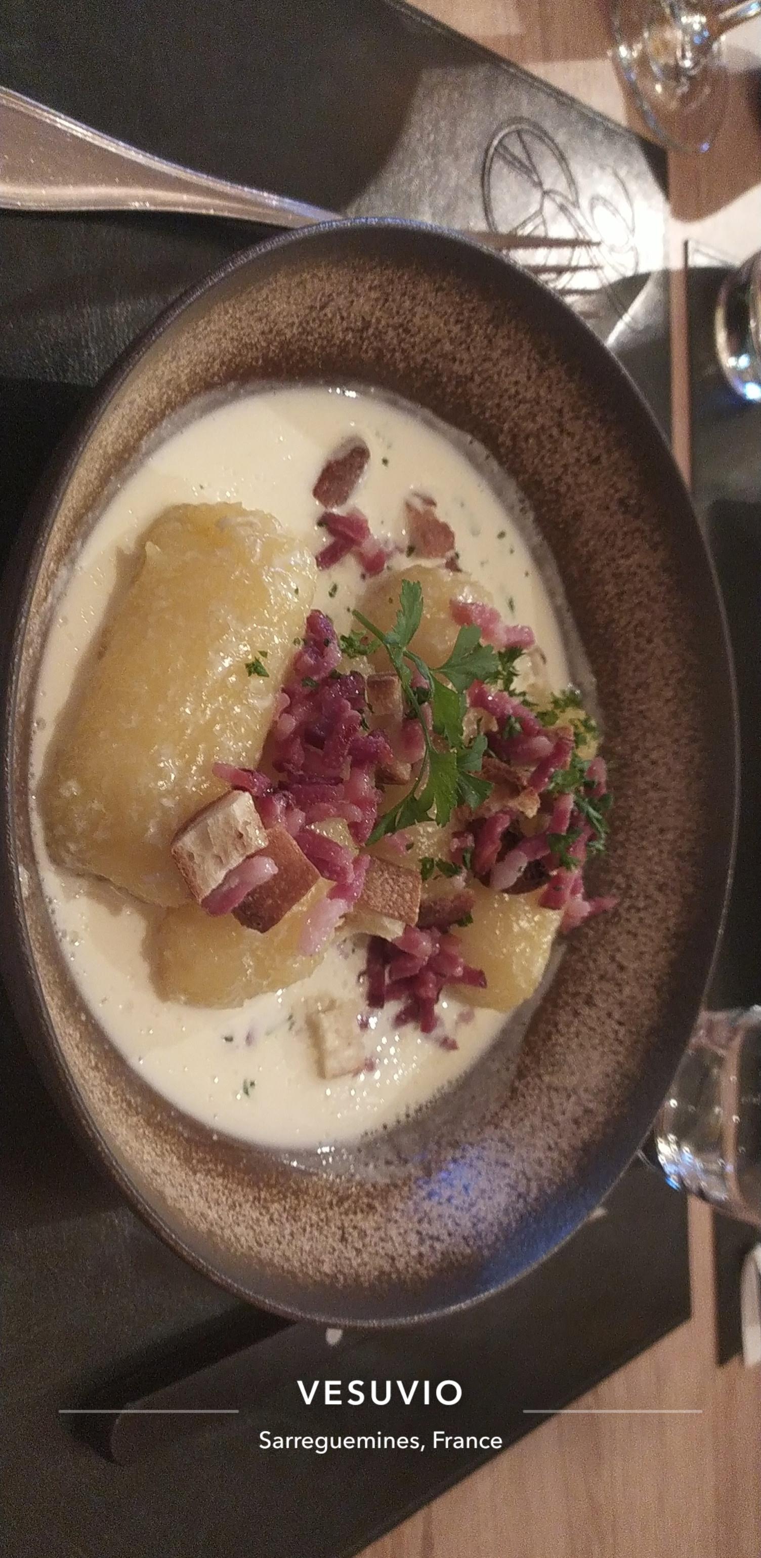 Après être venus 3 fois. Je me permet cet avis. Au niveau de l'accueil et du personnel rien a dire. Très professionnel. L'ambiance est sympathique, on apprécie les vitraux. Le grand plus est le visuel sur la cuisine du pizzaiolo. Ce dernier qui ne manquera pas de faire pétiller notre palais. La cuisine est très bonne, l'harmonie des saveurs et des assaisonnement est parfaite. On retrouve une grande maîtrise et une grande légèreté en terme de cuisine. Pizzeria que je conseil pour les amateurs de pizza a pâtes fine. Le seul point négatif a mon goût est la garniture. Il serait bien que la cuisine soit plus généreuse. Niveau prix il est a la hauteur de la qualité proposé. Si vous passez a Sarreguemines le Vesuvio est une bonne adresse.