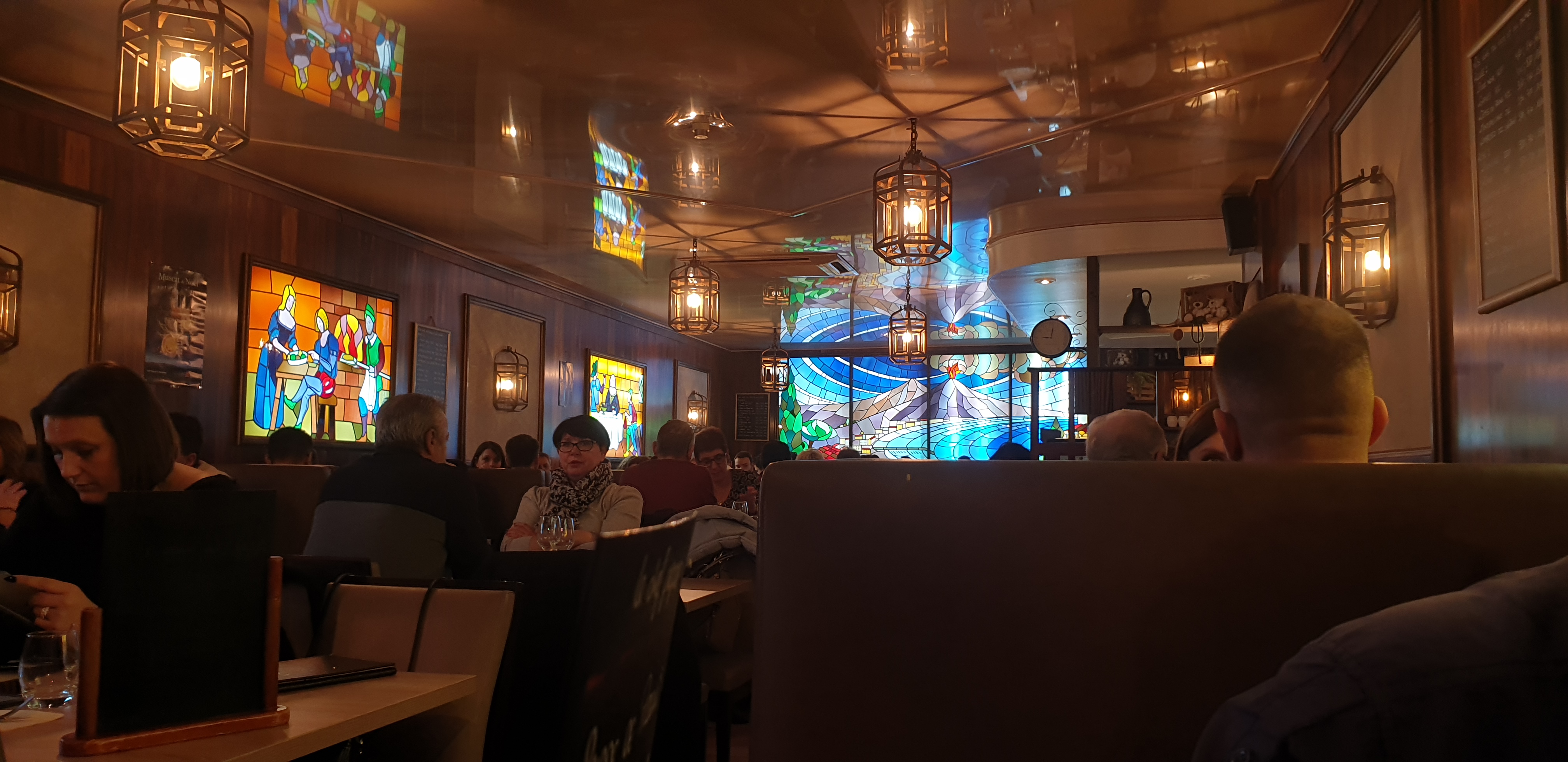 Je recommande, très bon plats, serveurs et serveuses agréables, et l'ambiance est symphatique, gros coup de coeur pour le vitrail représentant le Vésuve😊👌