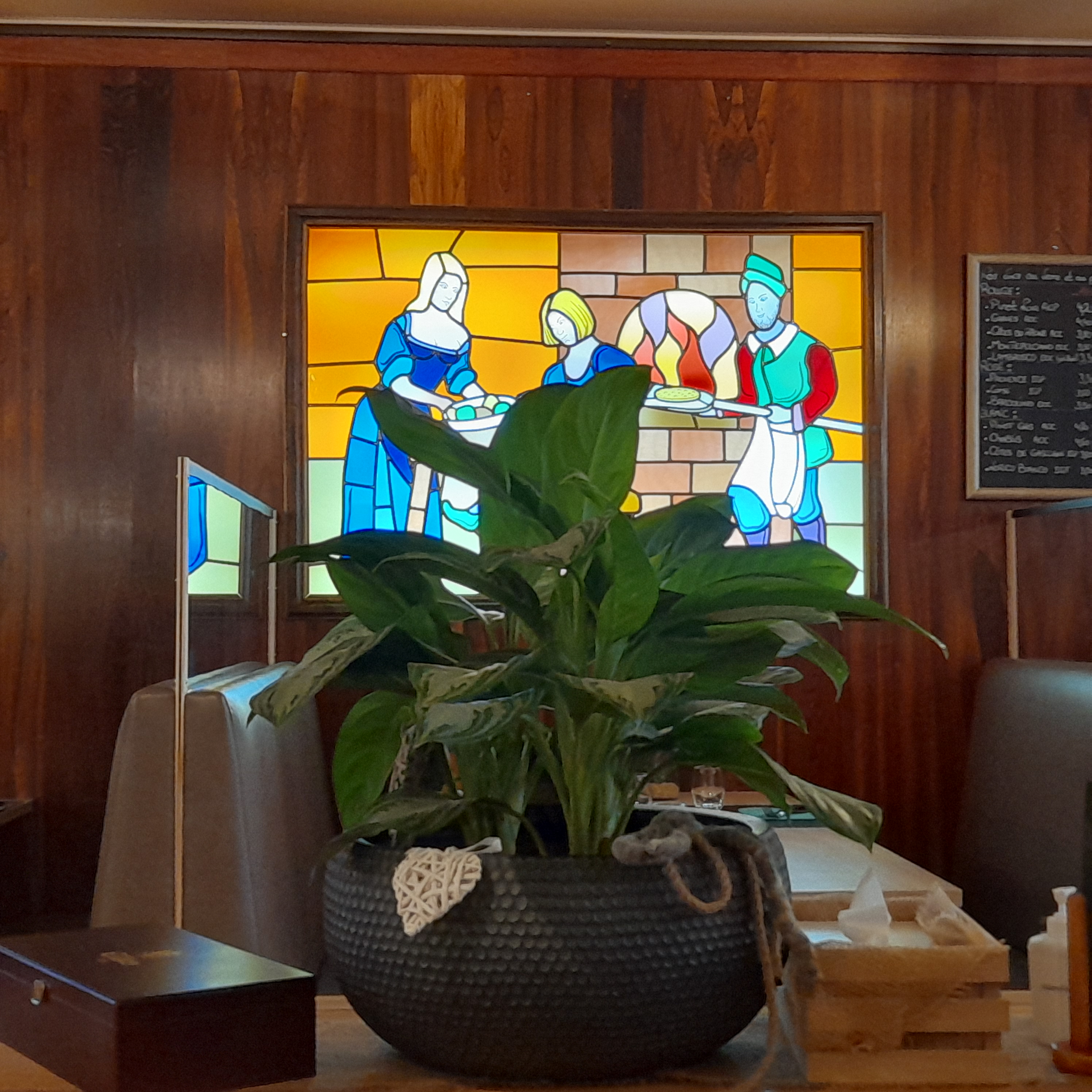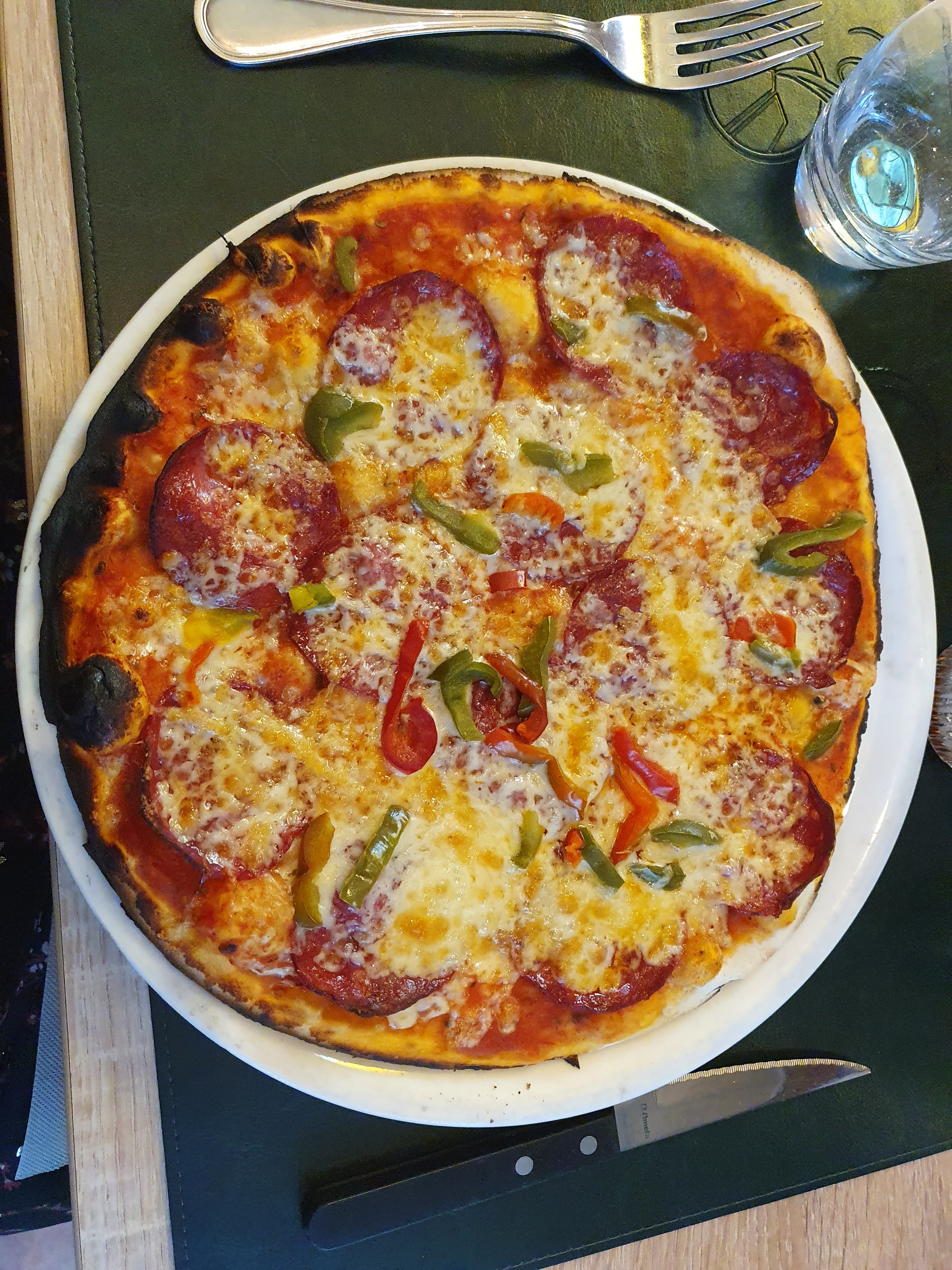 super! pizza copieuse et très bien préparé ! décoration avec des vitraux lumineux sympathique ,service suivie et rapide à conseiller !
