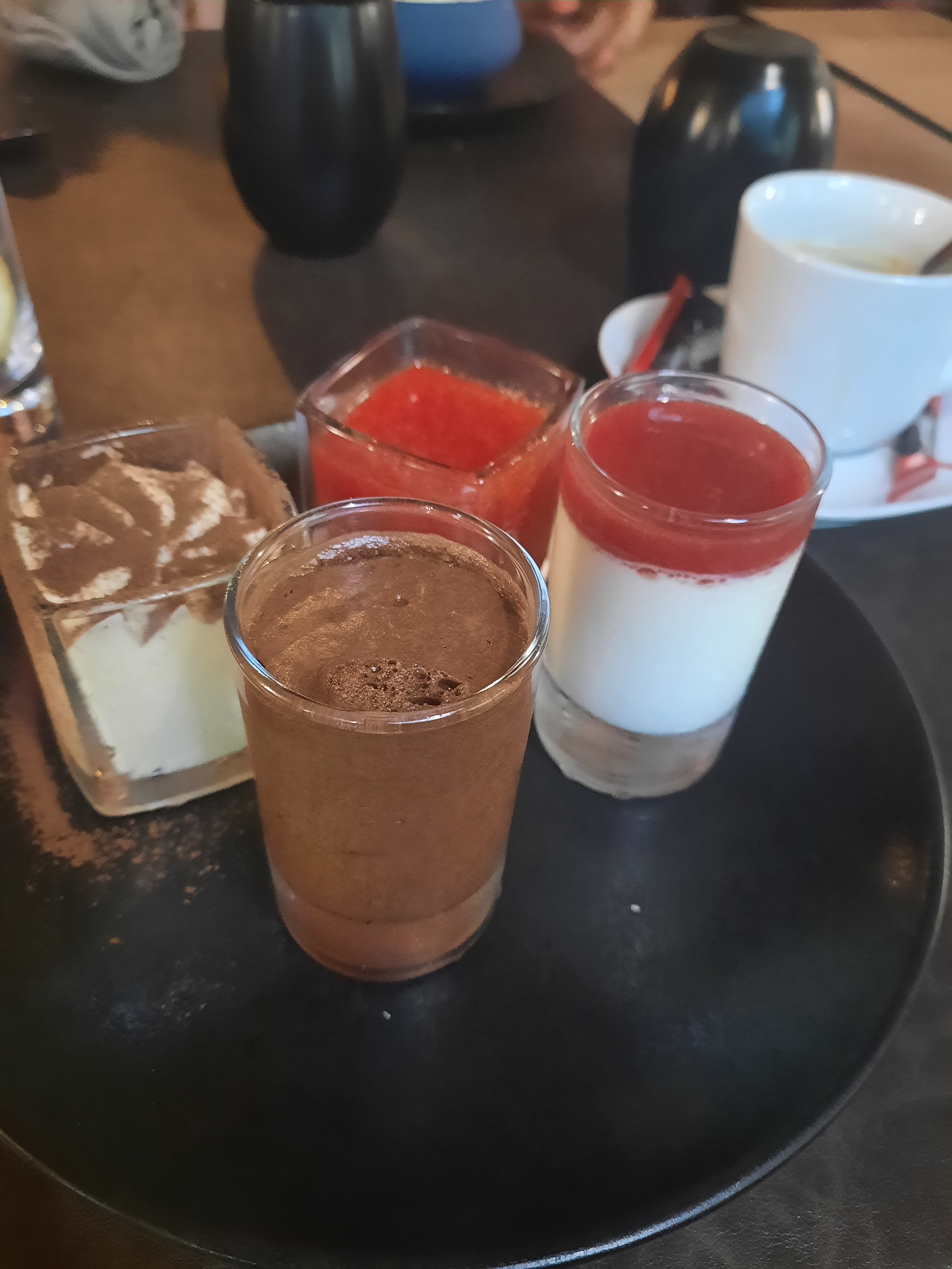 Les plats et desserts que nous avons pris étaient délicieux ! Le personnel était très attentionné et agréable. Petite suggestion d'amélioration : faire goûter le vin avant de le servir.