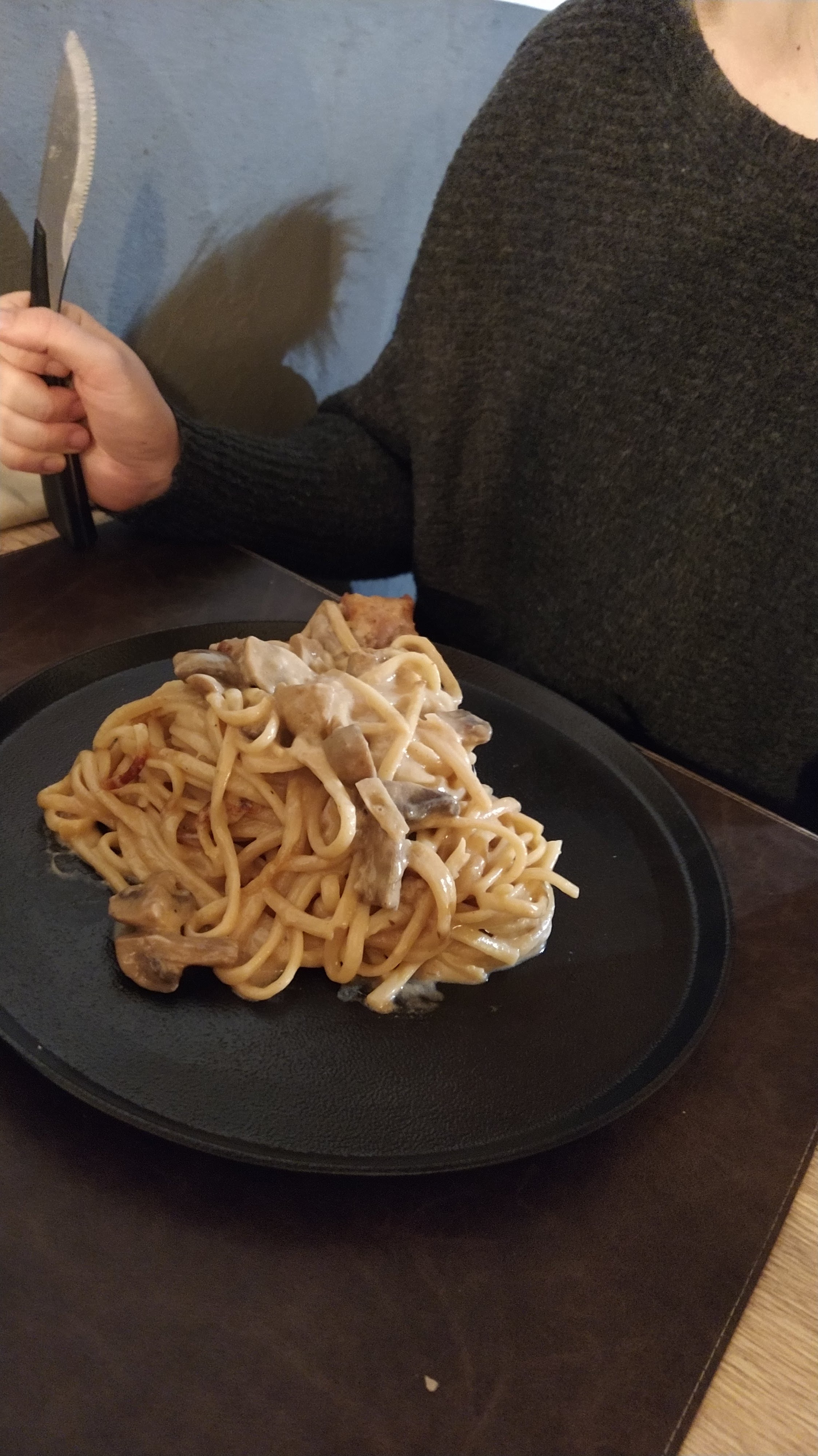 Globalement, c'était bon et copieux, un bon mélange entre l'italien et l'alsacien mais il n'y avait rien d'exceptionnel. Il y a deux salles assez agréable et nous avons eu une grande table pour deux. Le service aurait pu être optimisé car la serveuse a oublié beaucoup de choses (couvert, vin, eau, serviette).