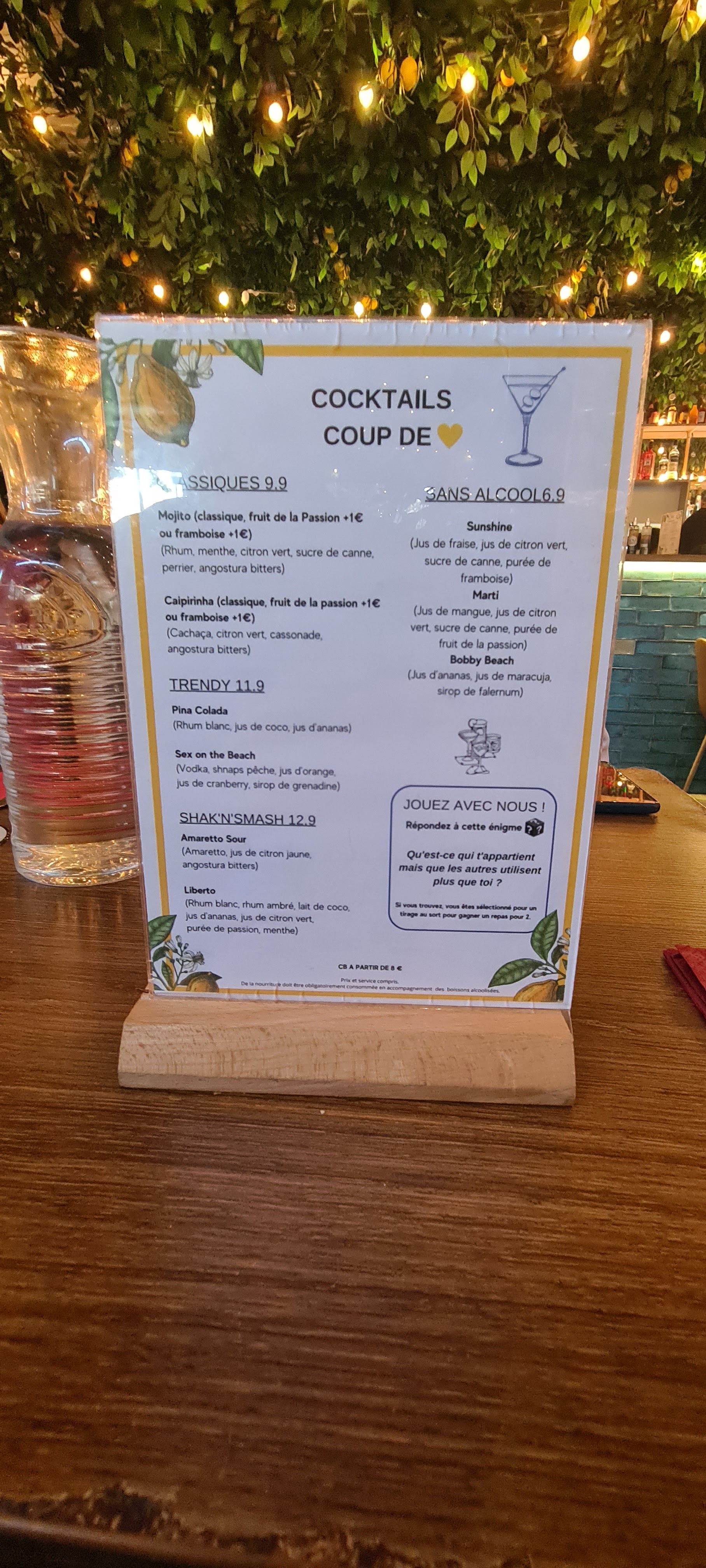 - ✔️ Cocktails et apéritifs