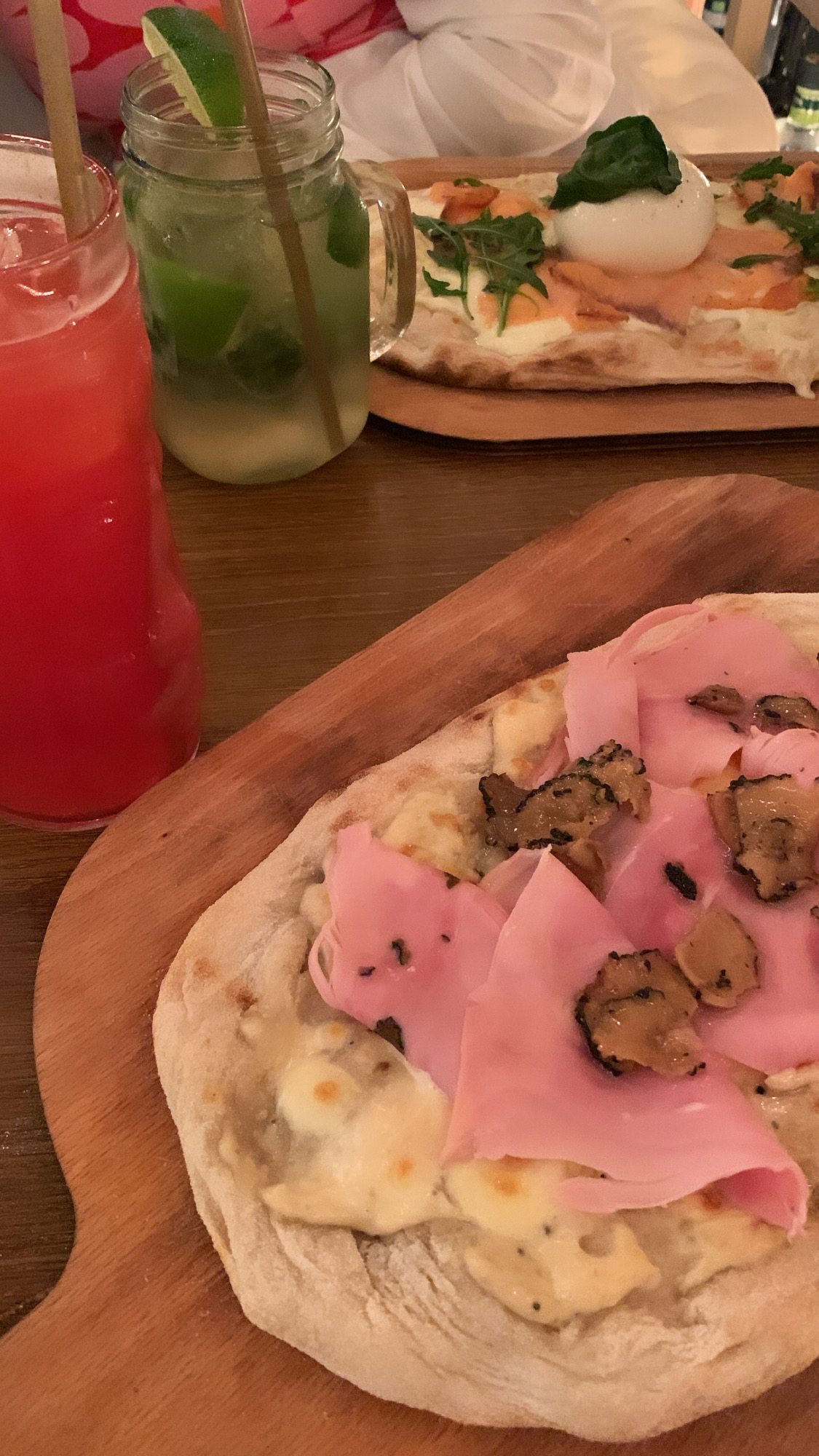 Bon dîner Cocktail sans alcool à la pamplemousse vraiment recommandé Pizza rectangulaire originale Maître de salle très attentionné 👍🙏🏻