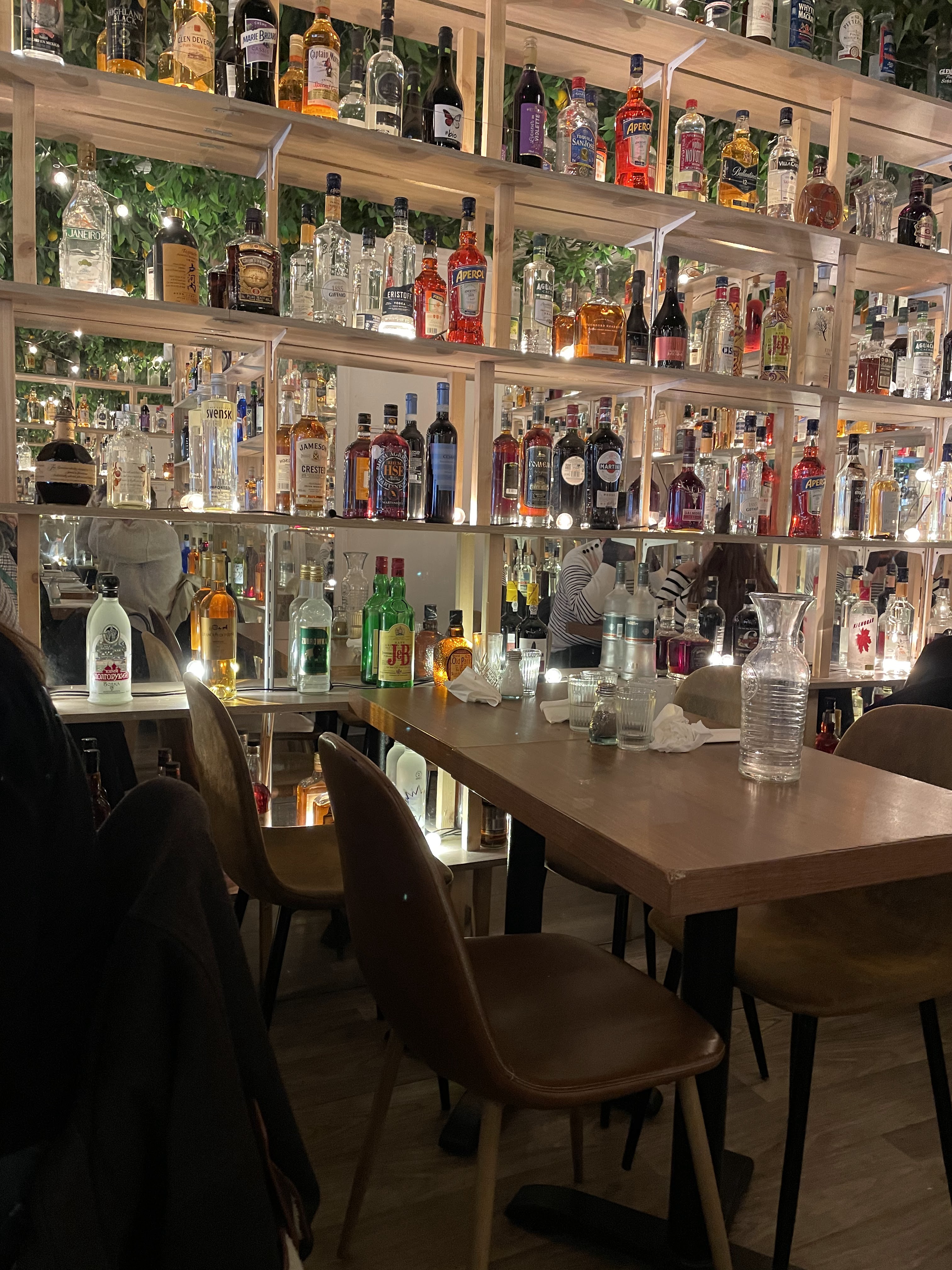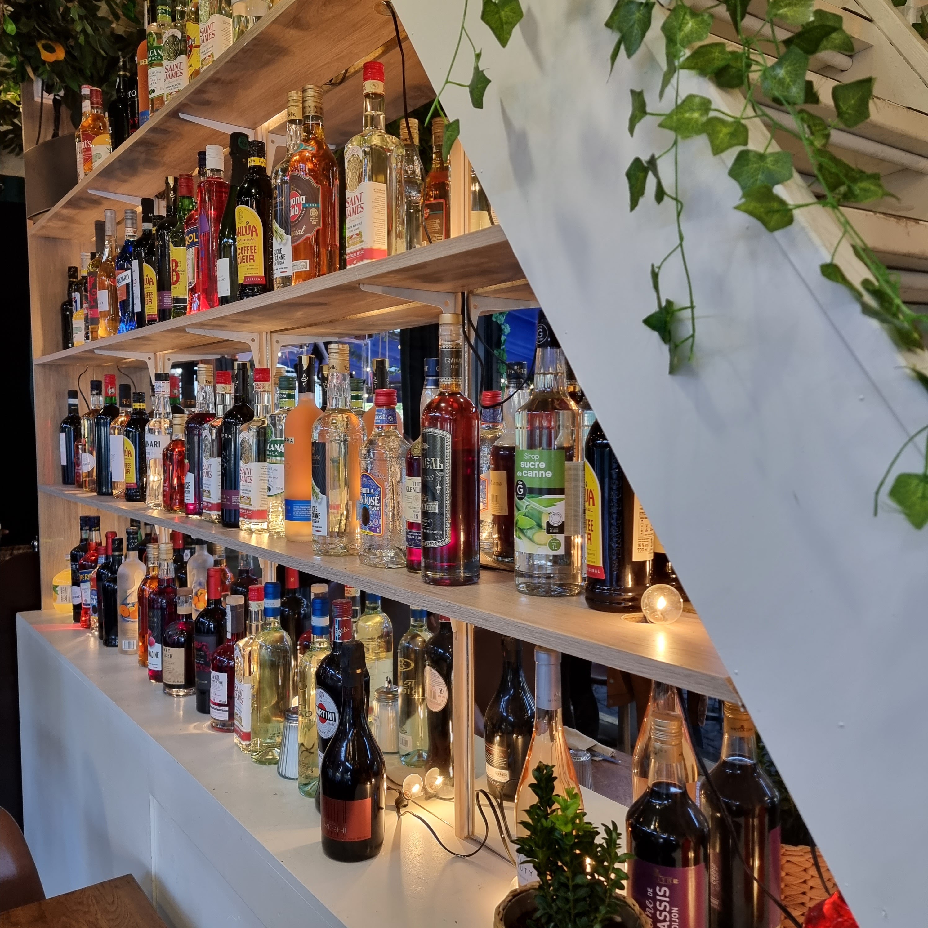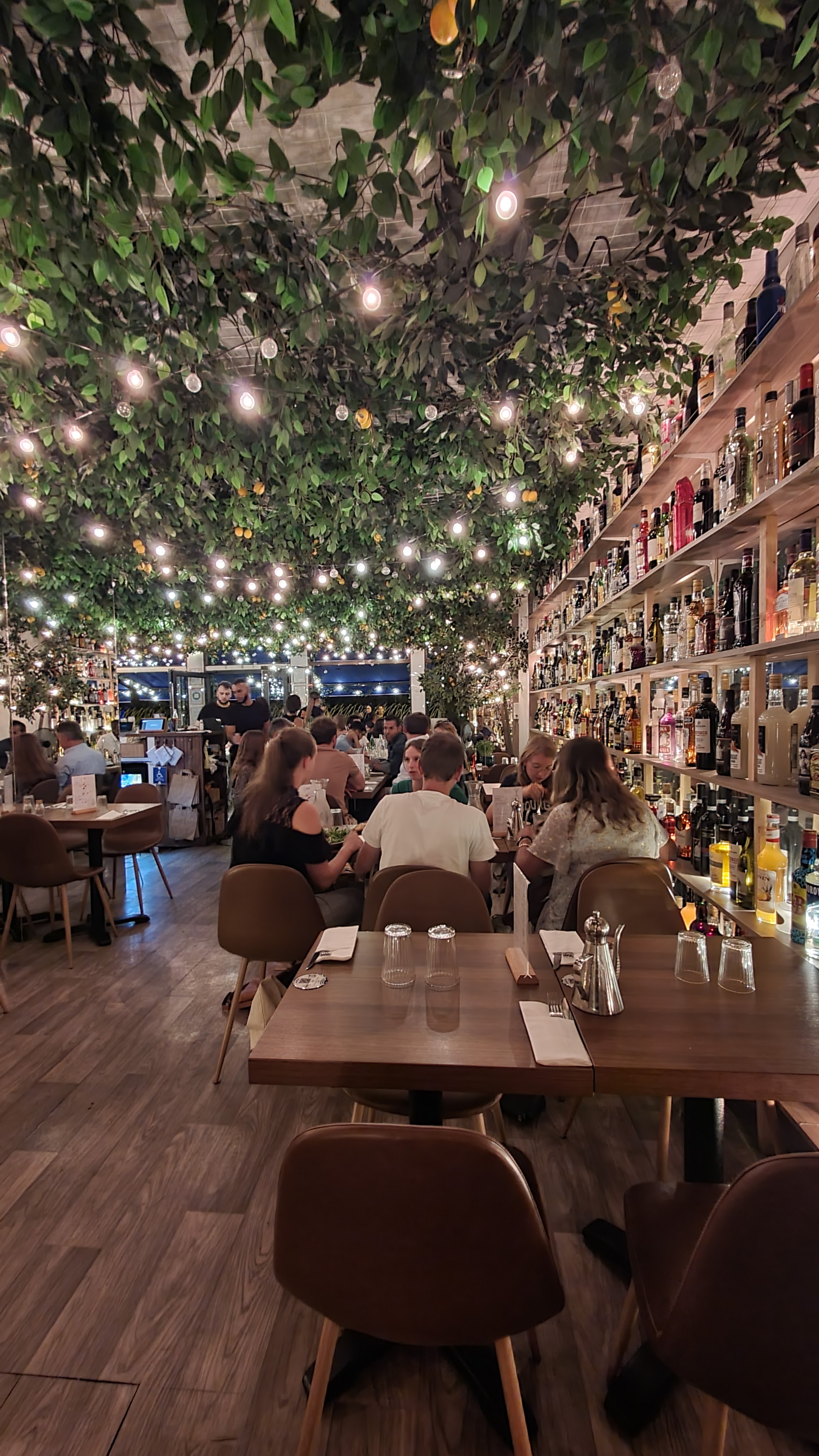 Top La décoration du restaurant lui donne beaucoup de charme : entre les bouteilles, la végétation et les lumières, on mange dans un cadre agréable. Petit bémol, malgré la grande terrasse et la salle plutôt grande, les tables sont collées les unes aux autres, ce qui rend l'espace assez étroit et la circulation malaisée. La nourriture est bonne, variée mais il vaut mieux arriver tôt pour que tout soit chaud. Les serveurs passent également à travers la salle pour nous servir. Le rapport qualité prix est très intéressant, pour 32 euros, on y trouve tous notre compte. Réservation indispensable.