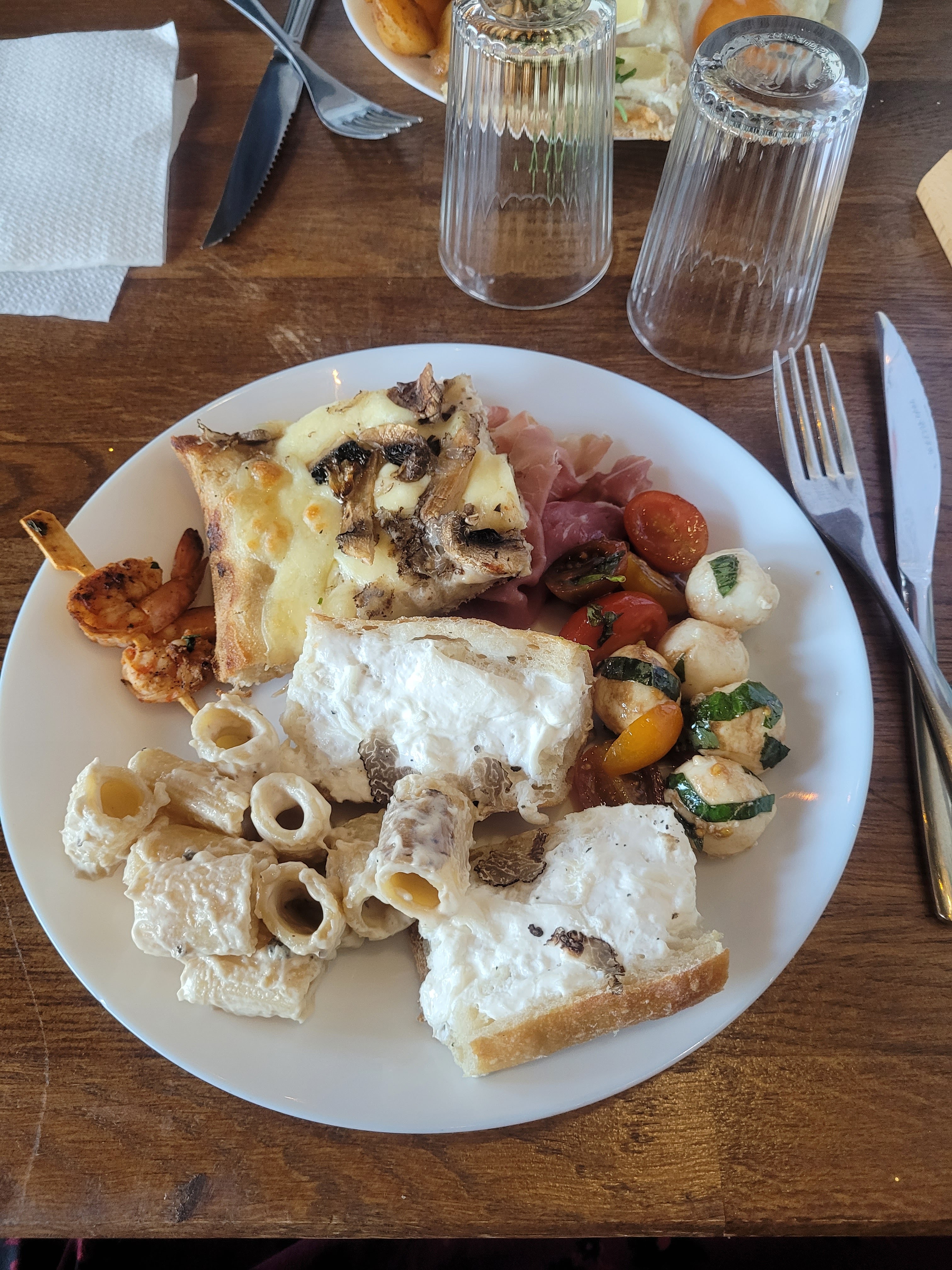 Super brunch à volonté italien avec beaucoup de choix d’entrée, de plats et de dessert. La déco est joli et le service est sympa.