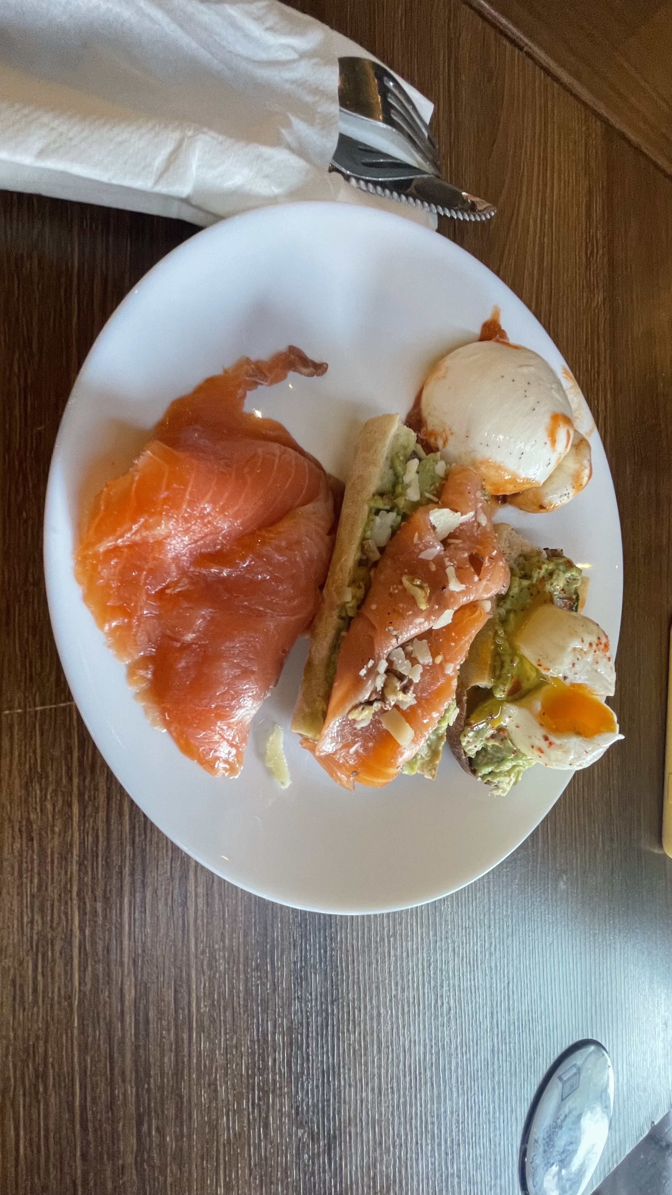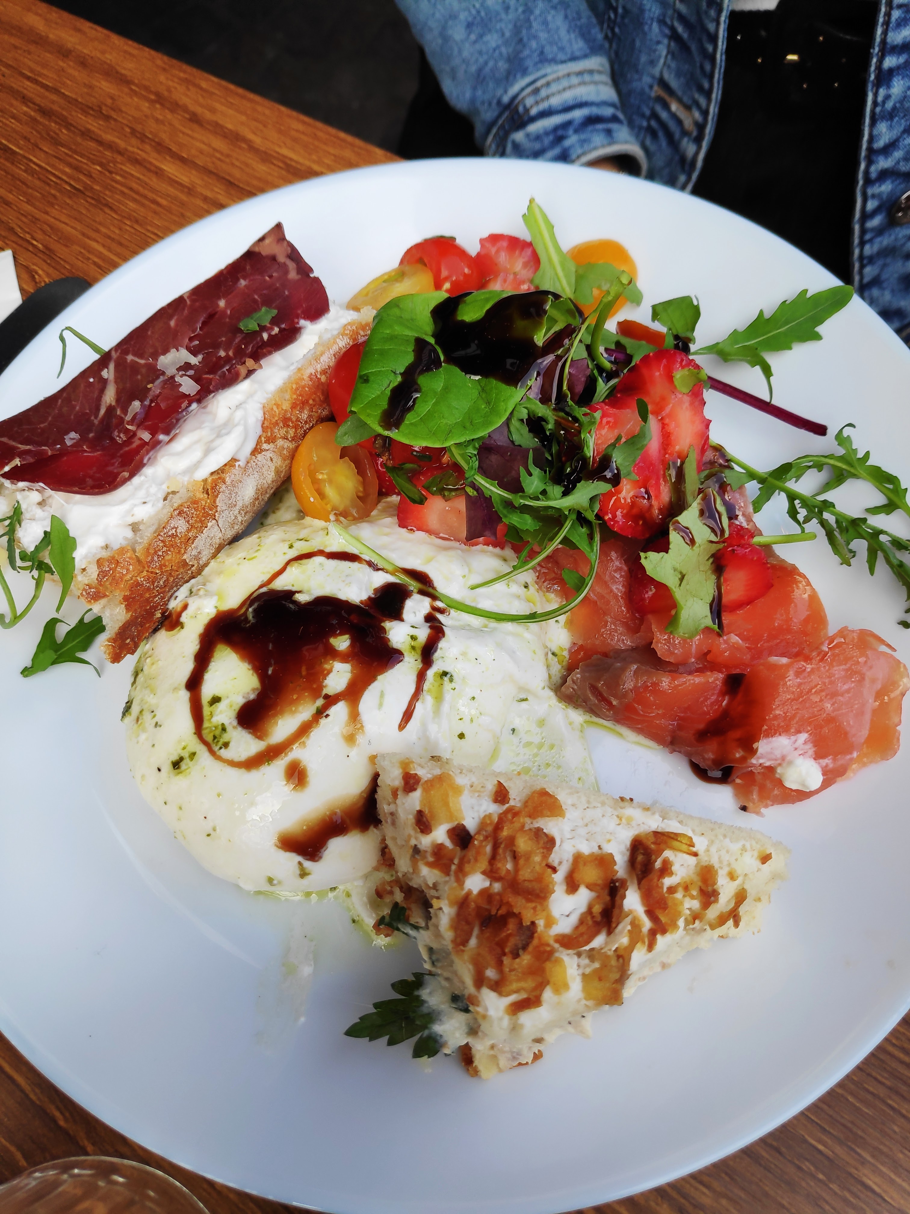 Expérience sympa dans l’ensemble avec un cadre très agréable (autant intérieur qu’extérieur) et une salade saumon burrata très bonne. Petit bémol cependant pour le service qui est parfois un peu chaotique du fait du monde et surtout du café qui est mauvais, à ne pas prendre ! Le personnel est cependant très gentil et souriant, je reviendrai sûrement pour tester le brunch et voir si l’expérience diffère.