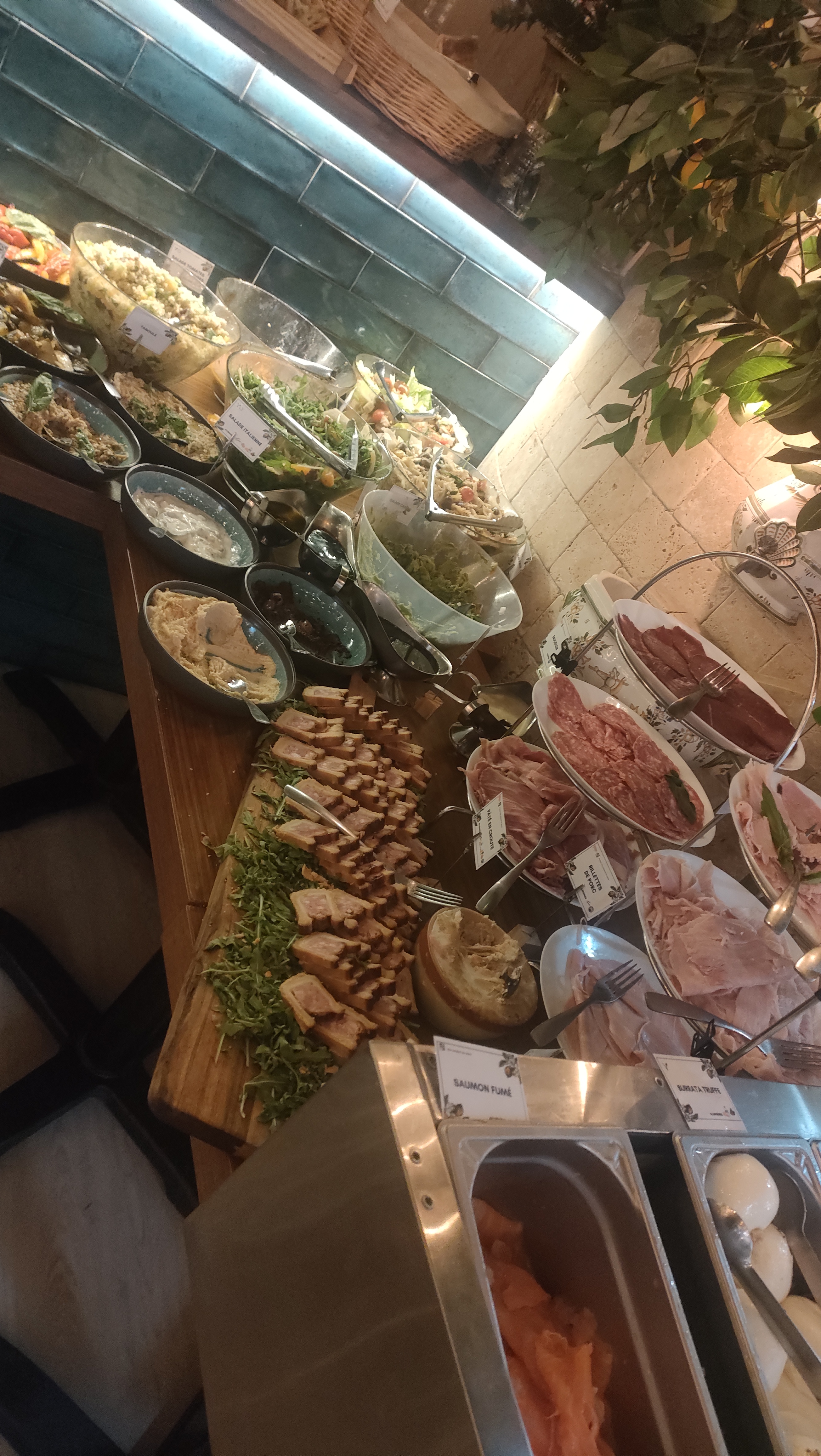A part la deco rien n'allait. Le service est plus que médiocre, ça nous presse pour finir car les services s'enchaînent. Le prix 80e pour deux pour un resto buffet a volonté c'est énorme, pour ce prix là allez au grands buffet a narbonne... la nourriture j'ai l'impression que tout venait des cantines des lycées parisiens, aliments sans grande qualité, sans grande saveur, de l'industriel au prix de l'artisanal en parlant d'anal je vous raconte pas la gueule des mes toilettes 2h après etre sorti du resto, la burrata au truffes n'est pas passée. De plus pas d'étiquettes pour savoir ce que l'on mange. Franchement je ne vous conseille pas ce restaurant, vous pouvez trouver 1000x mieux pour deux fois moins cher tout en restant dans le secteur de châtelet.