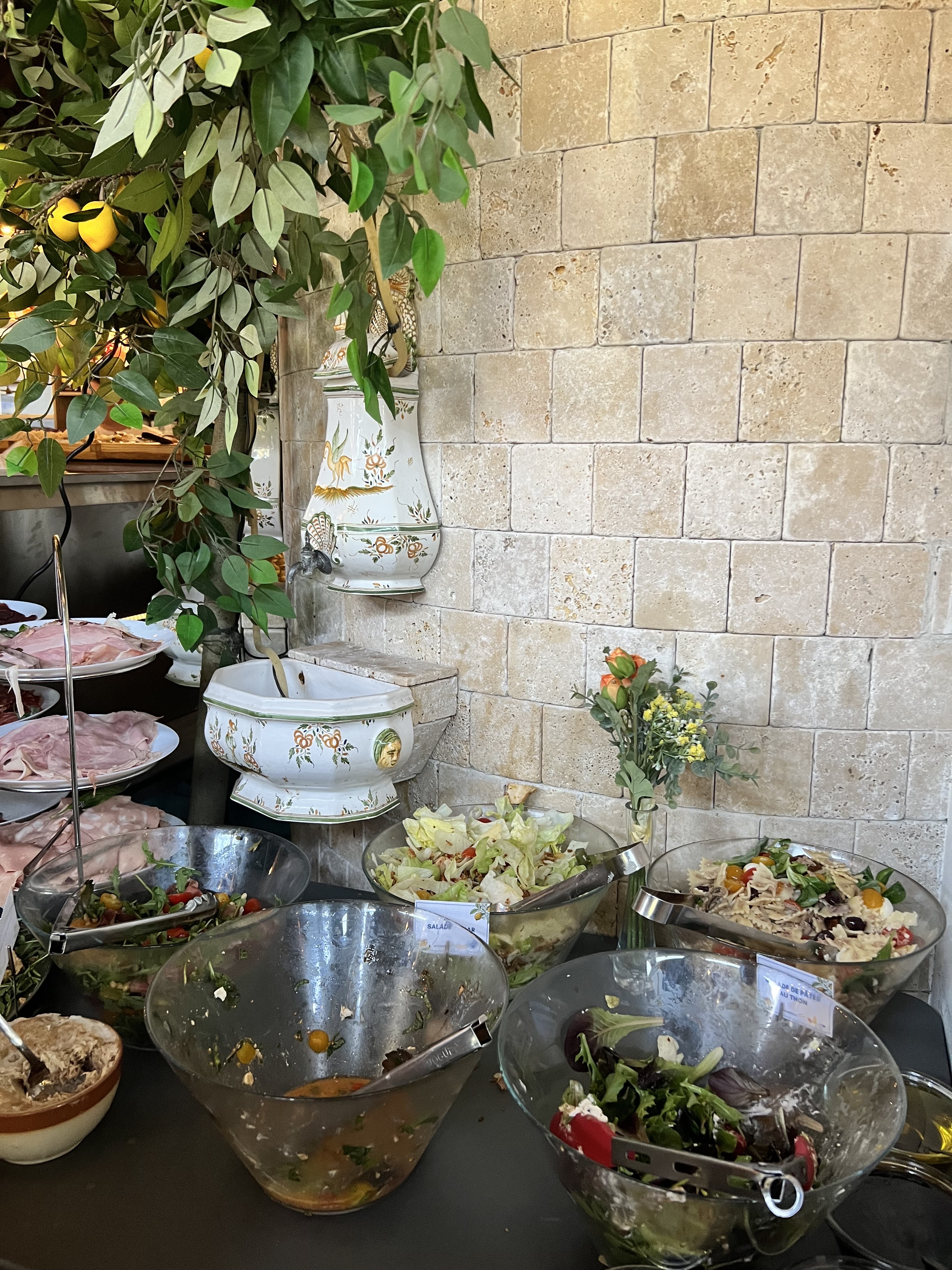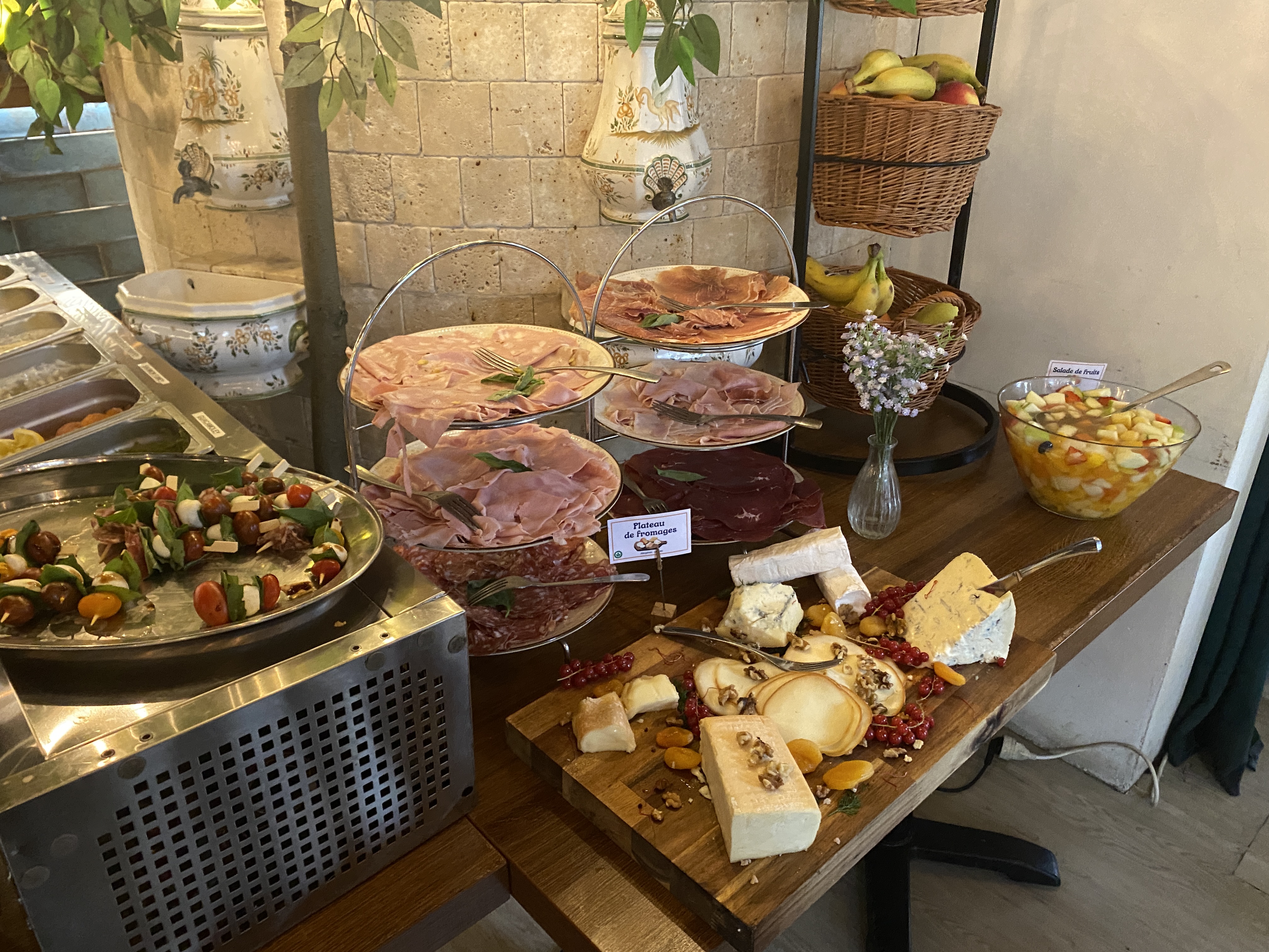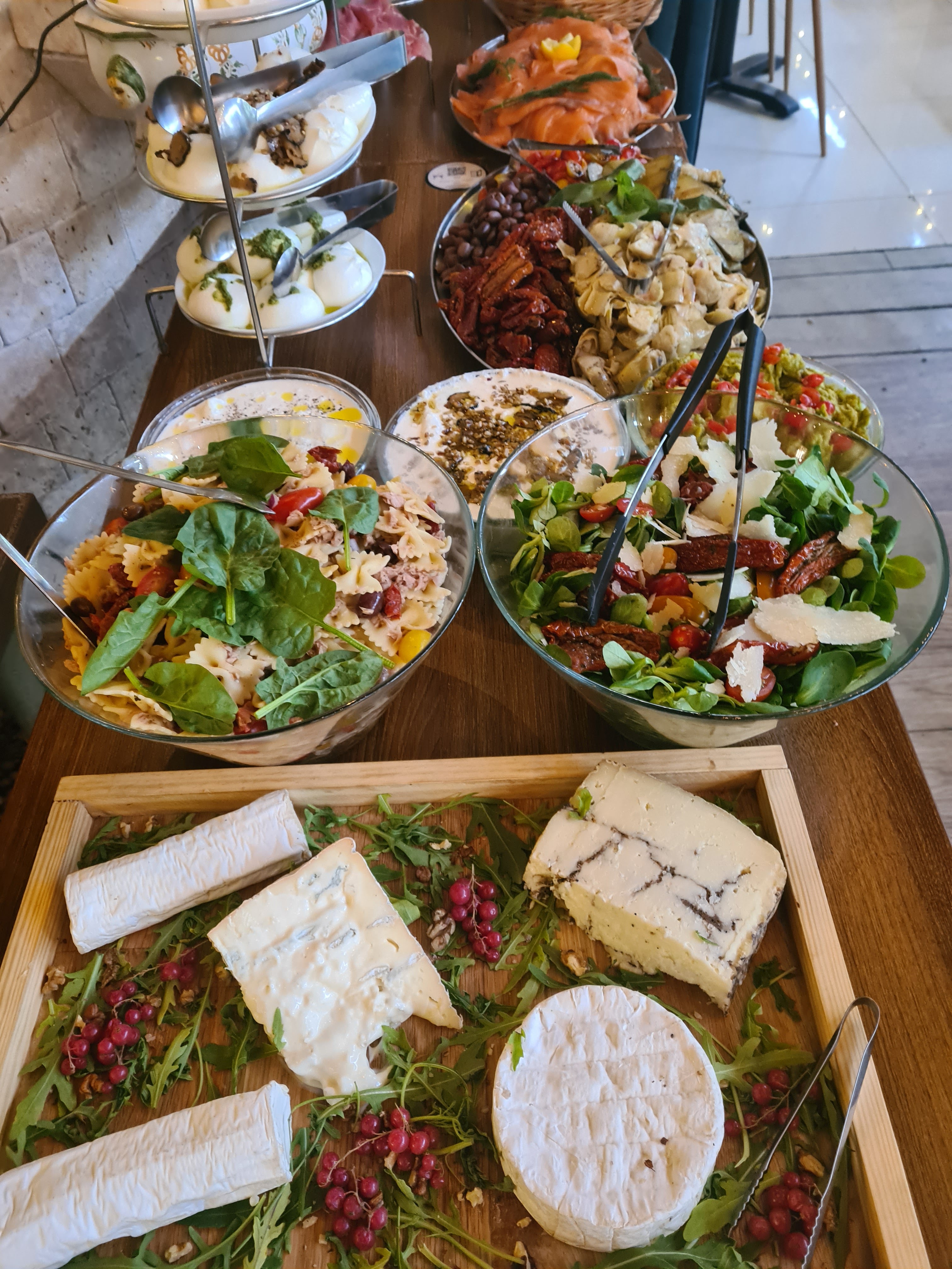 Je suis désolée de dire que le service est absolument déplorable. Le buffet en lui même a l’air de qualité, mais vu le nombre de personnes présentes il est bien trop petit. On a été forcé de manger dehors, car ils ont mal géré le nombre de réservation après 40 minutes d’attente. Ensuite il a fallu qu’on demande 5 fois pour enfin avoir nos boissons. Quand il s’est mis à pleuvoir on nous a laissé dehors 😂 Enfin bref les seuls points positifs sont: la personne qui nous a accueilli, la serveuse et tout de même la nourriture
