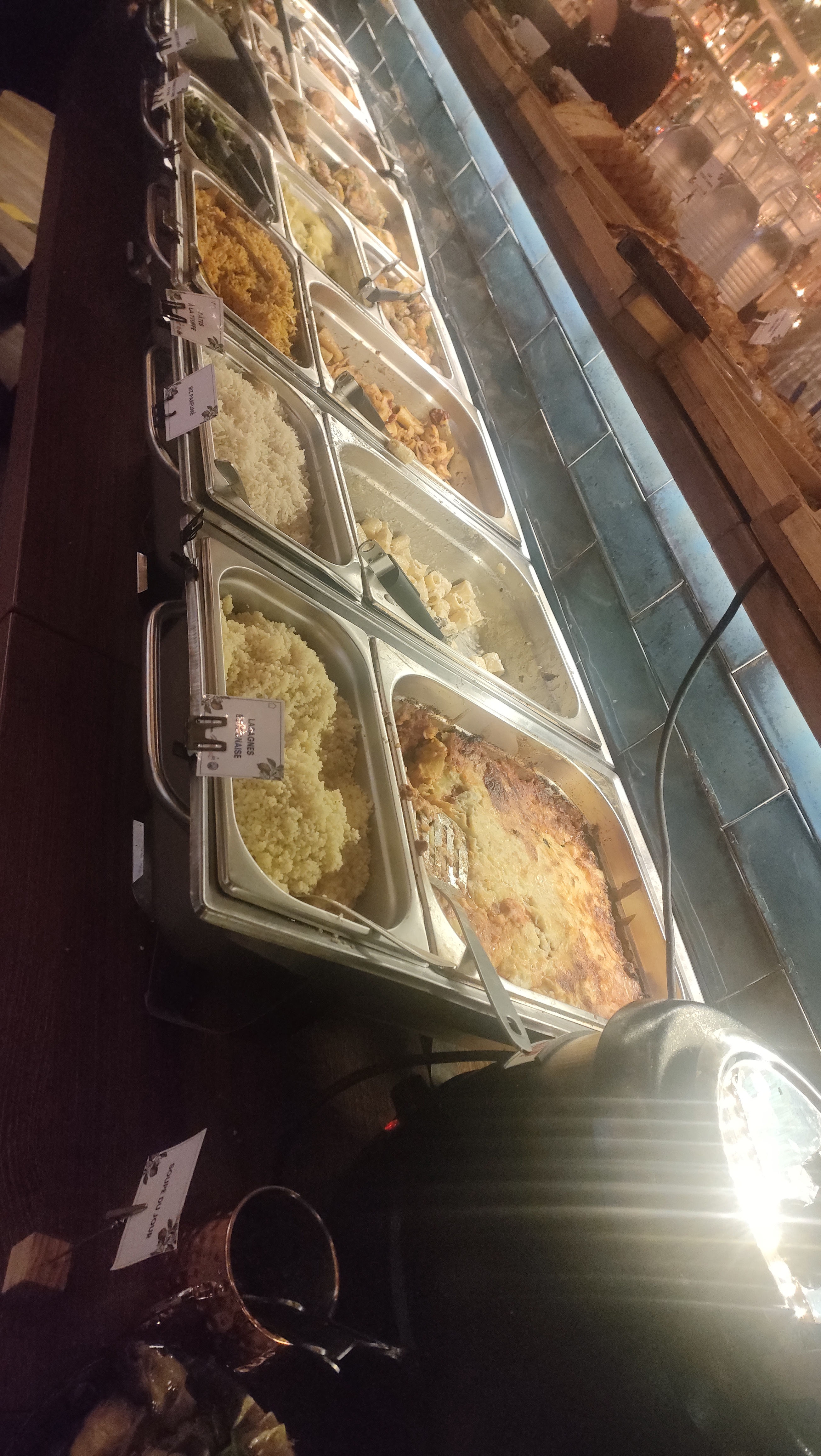 Nous sommes venues le week-end passé entre mère-fille. Restaurant très sympa, déco atypique et jolie. Placement un peu étriqué.. dommage (certes, on ne peut pas pousser les murs 😉). Le buffet est complet, différents plats à disposition (parfois pas très chaud, mieux vaut attendre le réassort quand il en reste peu). Je ne mange pas de viande et pour ma part, j'ai trouvé d'autres plats sympas à grignoter, il y a du choix (voir photo). Beaucoup de sucré pas fait maison, et je n'ai pas trouvé de tiramisu .. 😞 Mieux vaut réserver (ce qui était notre cas), car vraiment complet sur chaque service mais bien organisé. 1h30, un peu léger si vous avez des choses à vous raconter .. Alors mangez et vous parlerez en sortant 😂😂 Les serveurs très sympas et à l'écoute en cas de besoin, pour notre part les serveurs Valère, Espoir et Nolan ont été au petit soin pour nous ☺️ (la dame qui mettait à nouveau les plats chauds était sympa aussi.. je n'ai pas son nom). Restaurant accessible directement en sortant du forum, sortie 1 (rue berger). Vraiment facile à trouver. PS : j'aurais mis le buffet à un prix un peu plus abordable (actuellement à 37€50/pers). Merci et À bientôt 🙃