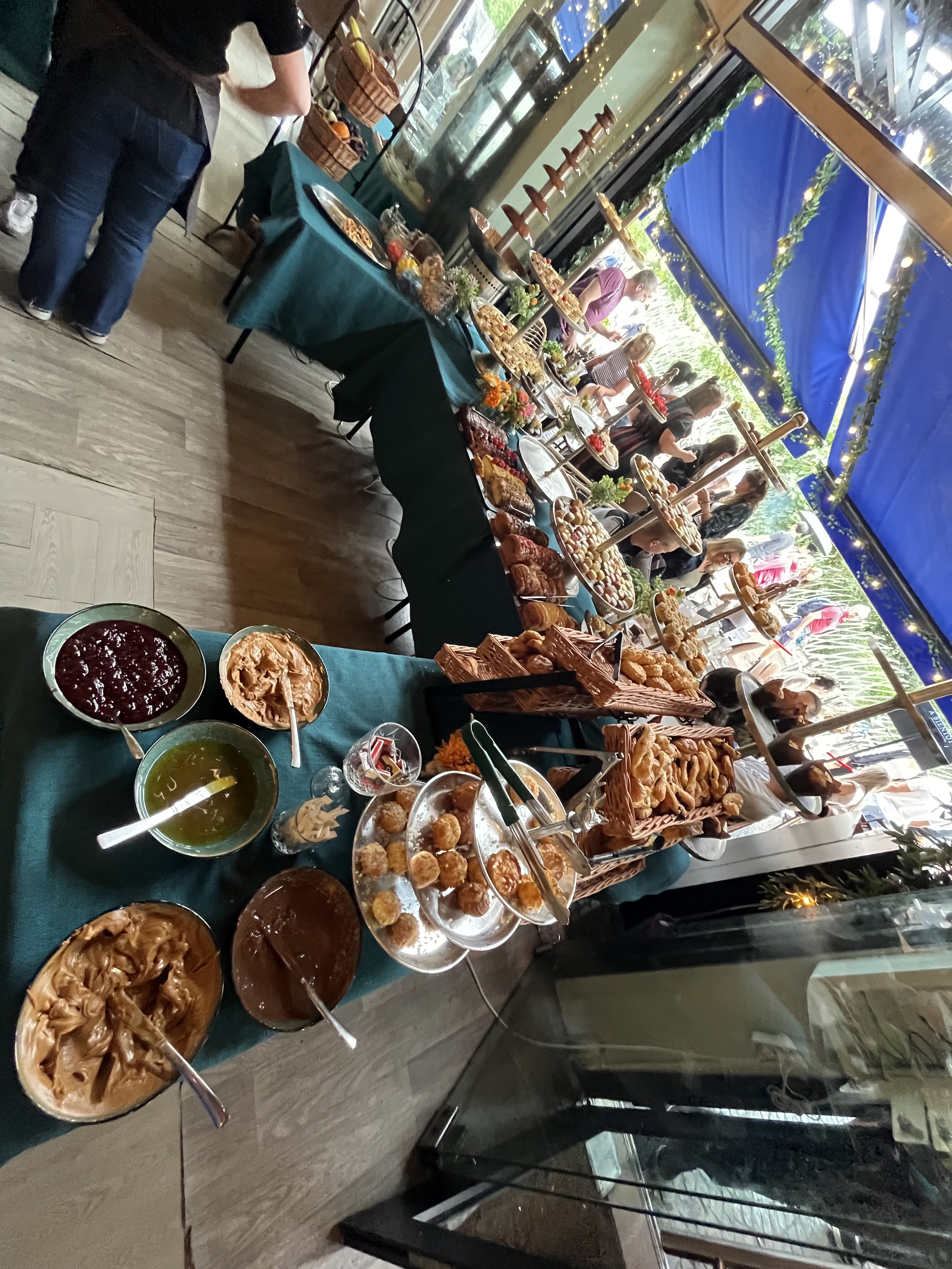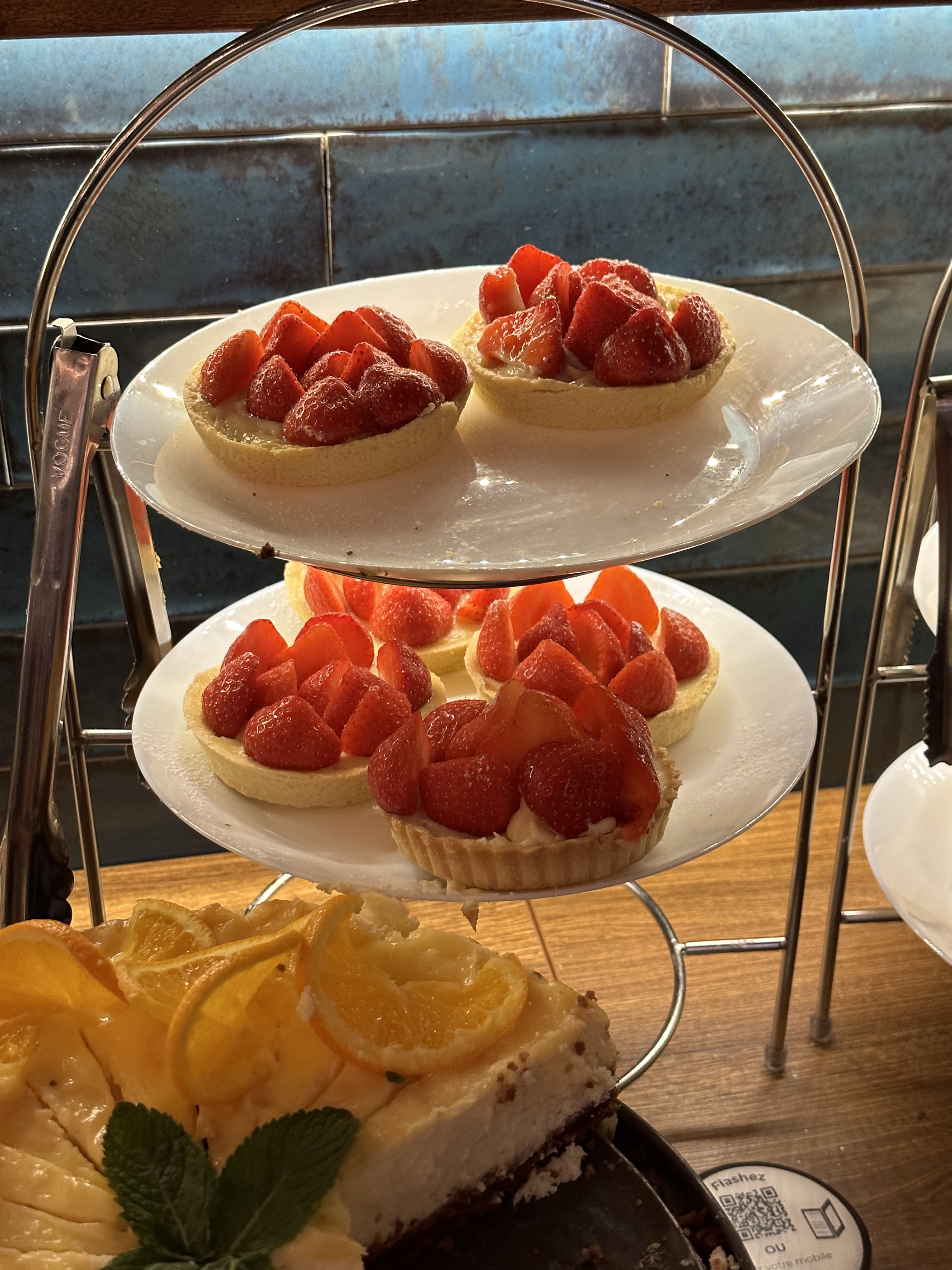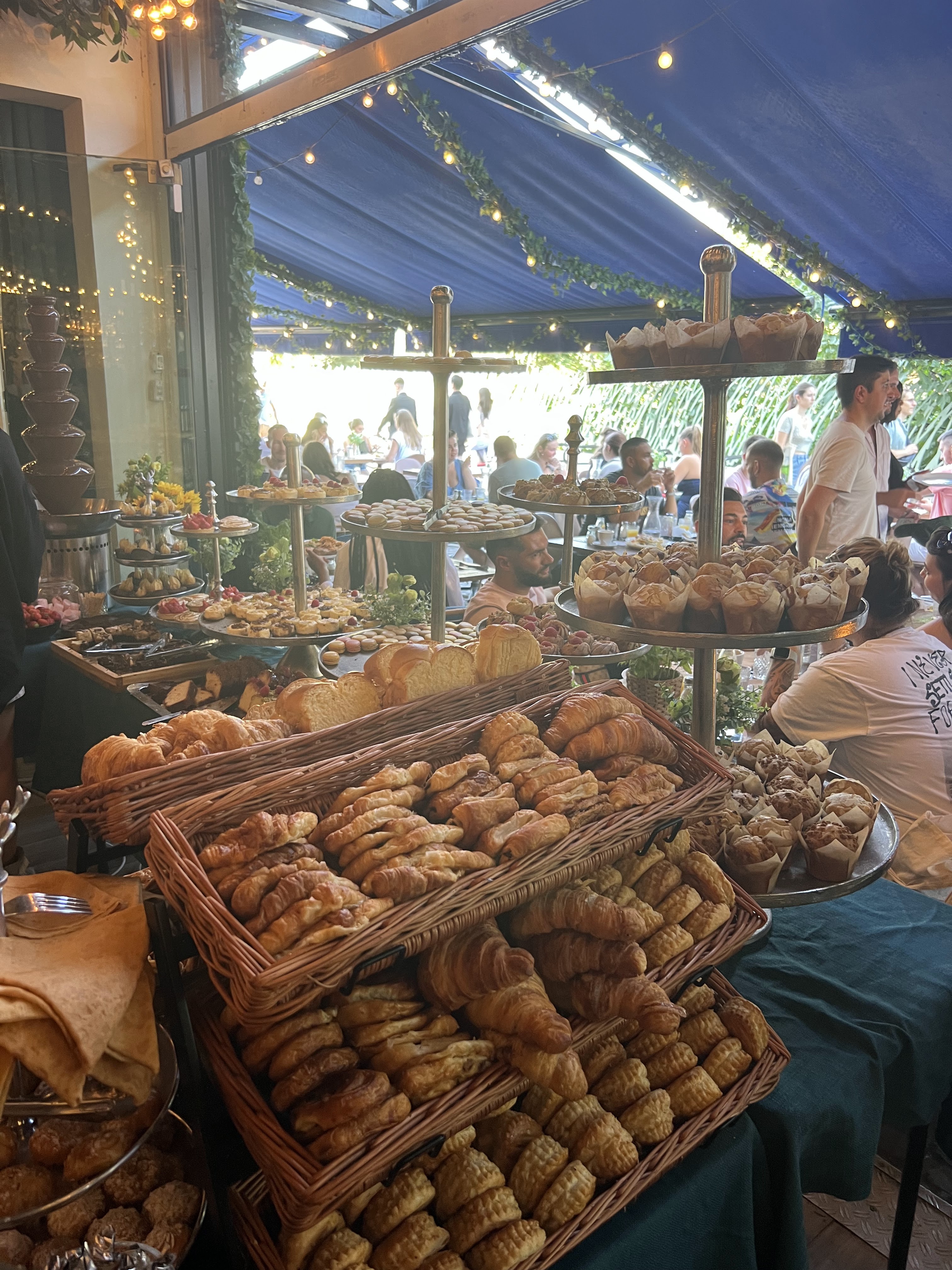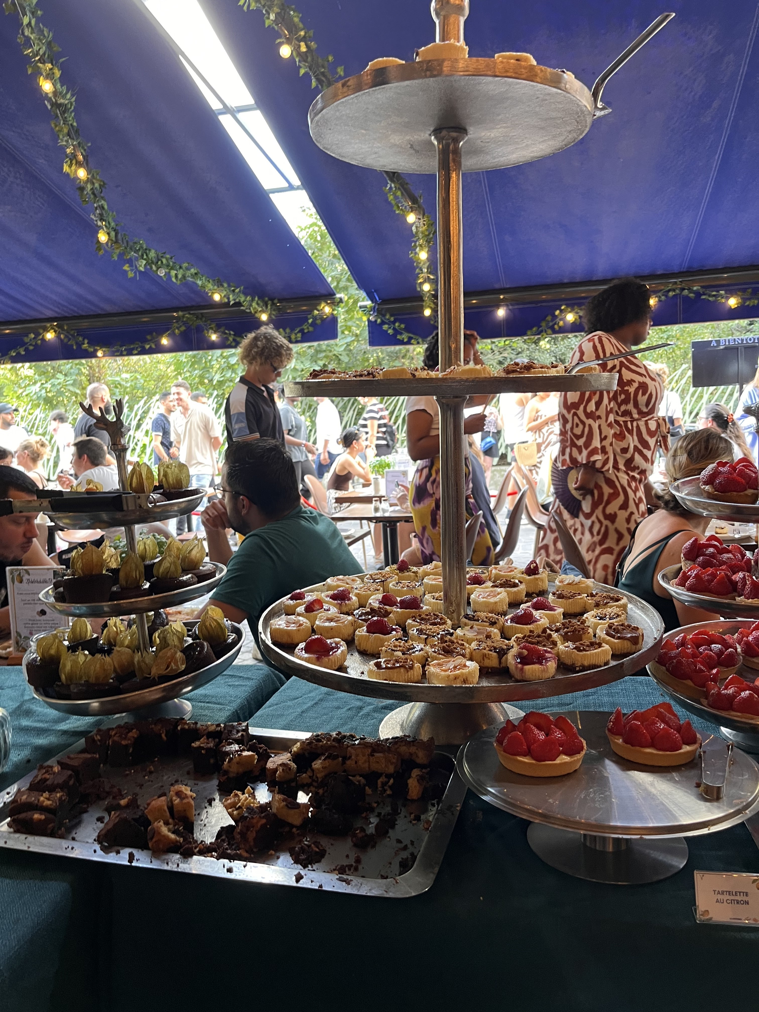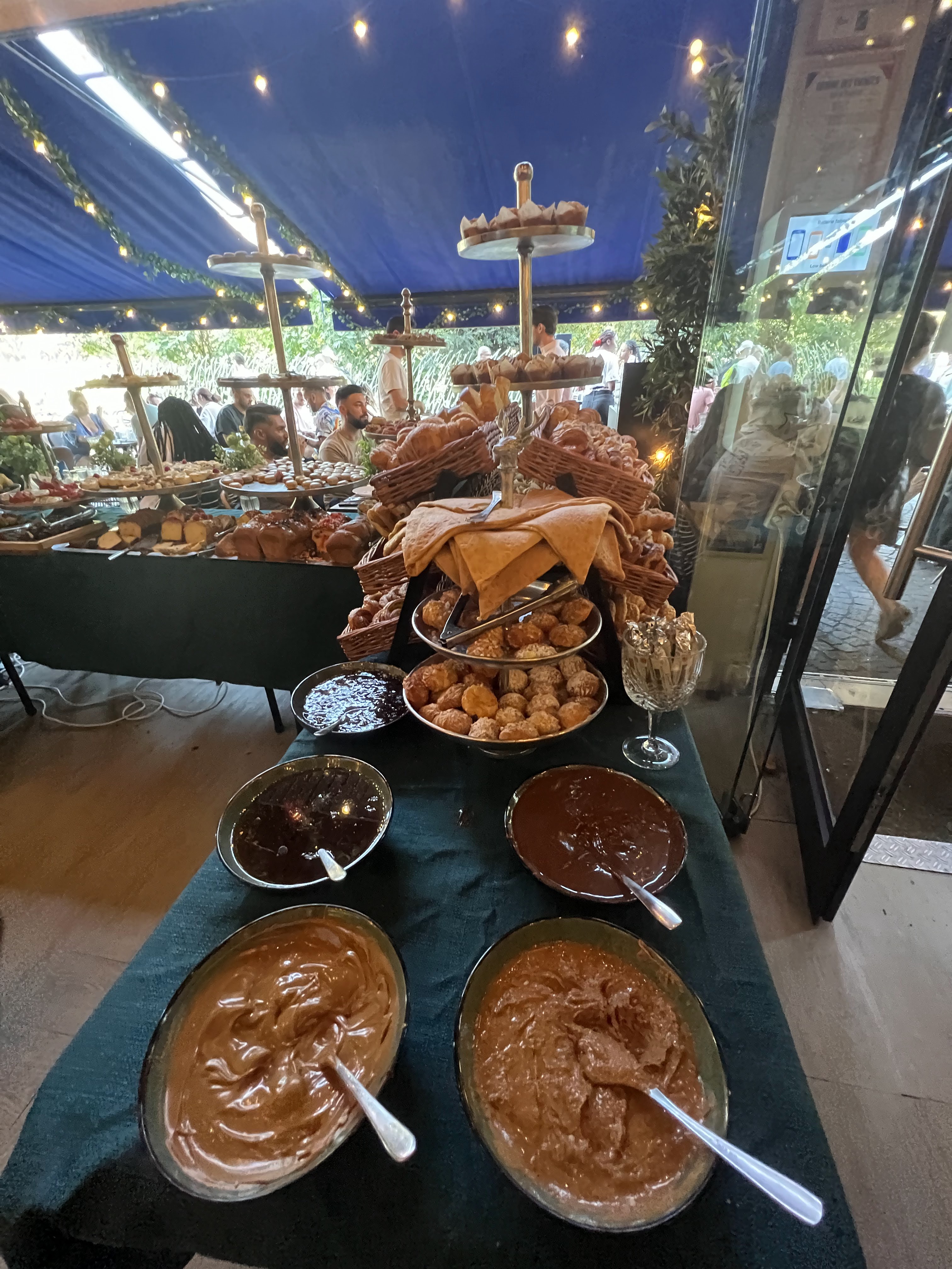 Gros carton rouge pour les thés (et tisanes ) très peu de choix mais surtout des sachets franprix ou leaderprice... les plus bas de gamme... thé saveur citron... pour un brunch à 39.9 c'est juste inacceptable... Les serveurs sont gentils mais pas très efficaces. Il faut tout demander au moins deux fois... La salle est surchargée, c'est compliqué de se glisser hors de sa place pour aller se servir... Le buffet est bien plein et alimenté en permanence. (Beaucoup de coupures d'électricité mais ça arrive. Ça n'a pas modifier la note )
