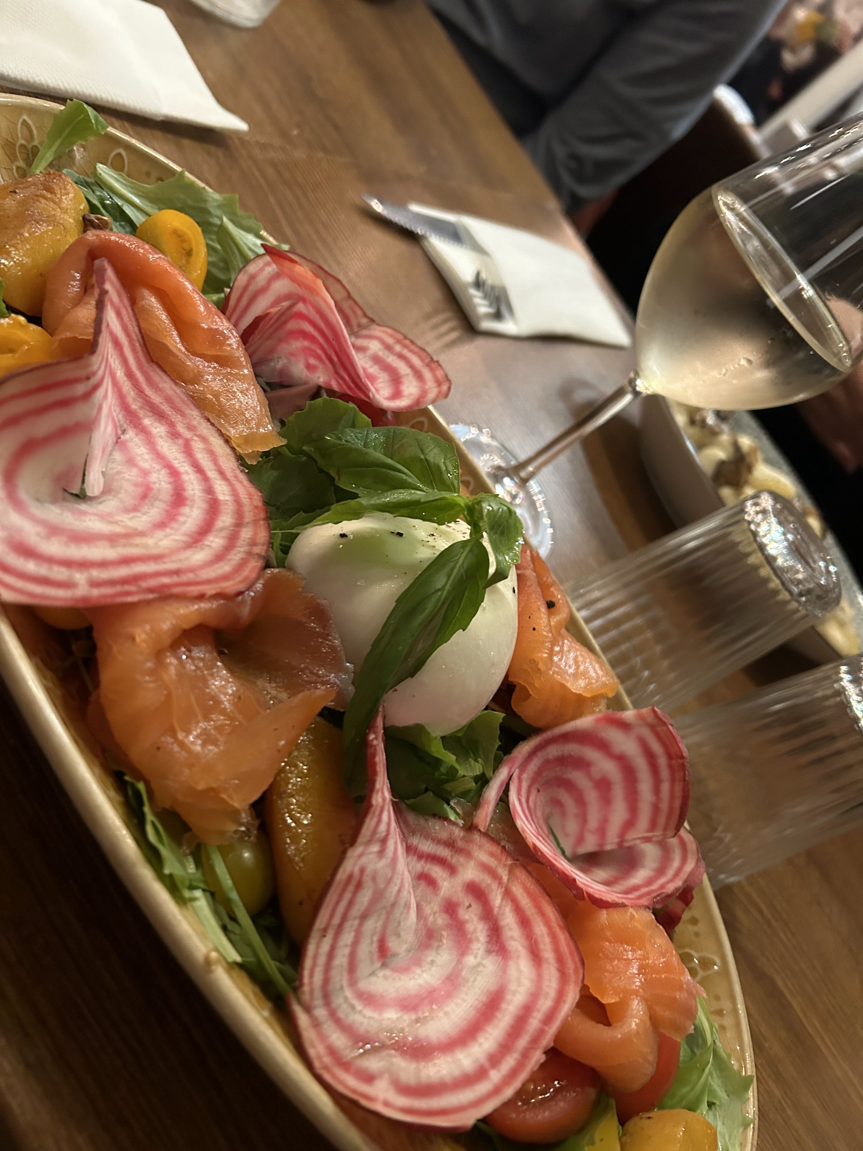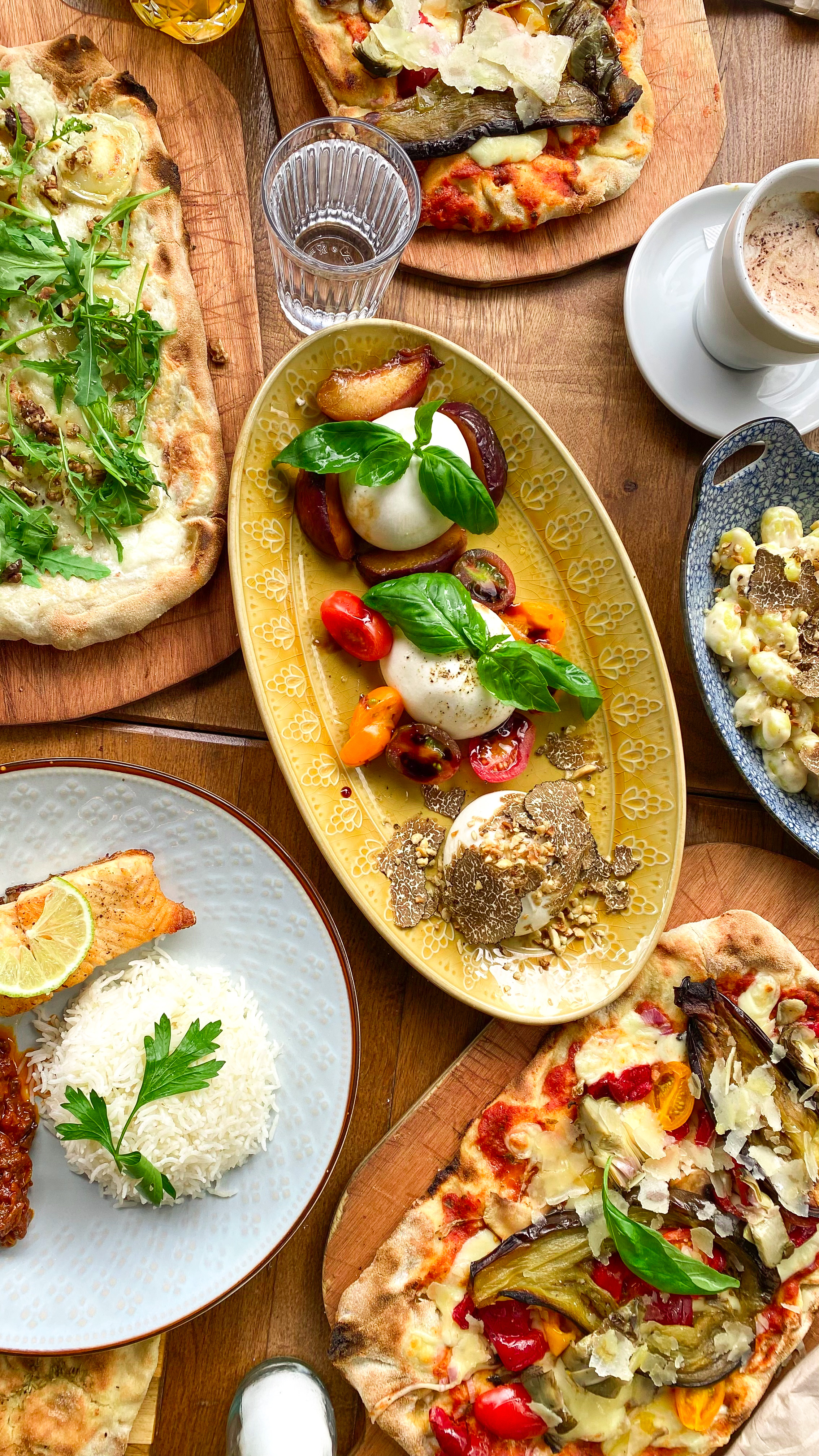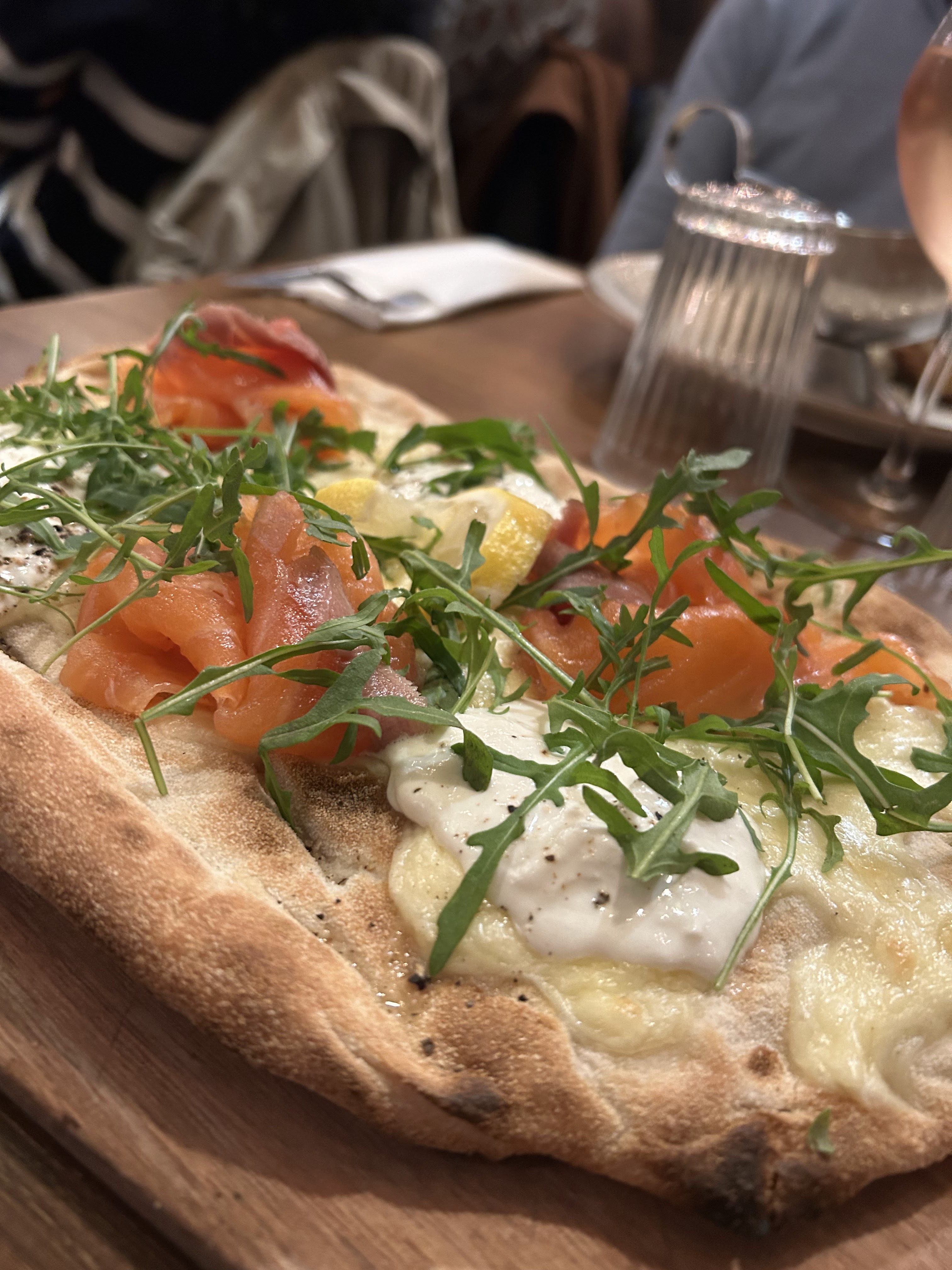 Super + pour la burrata. Pizza italienne 8/10. Pâtes et saumon pas incroyables. Service assez lent rattrapé par la belle présentation des assiettes.