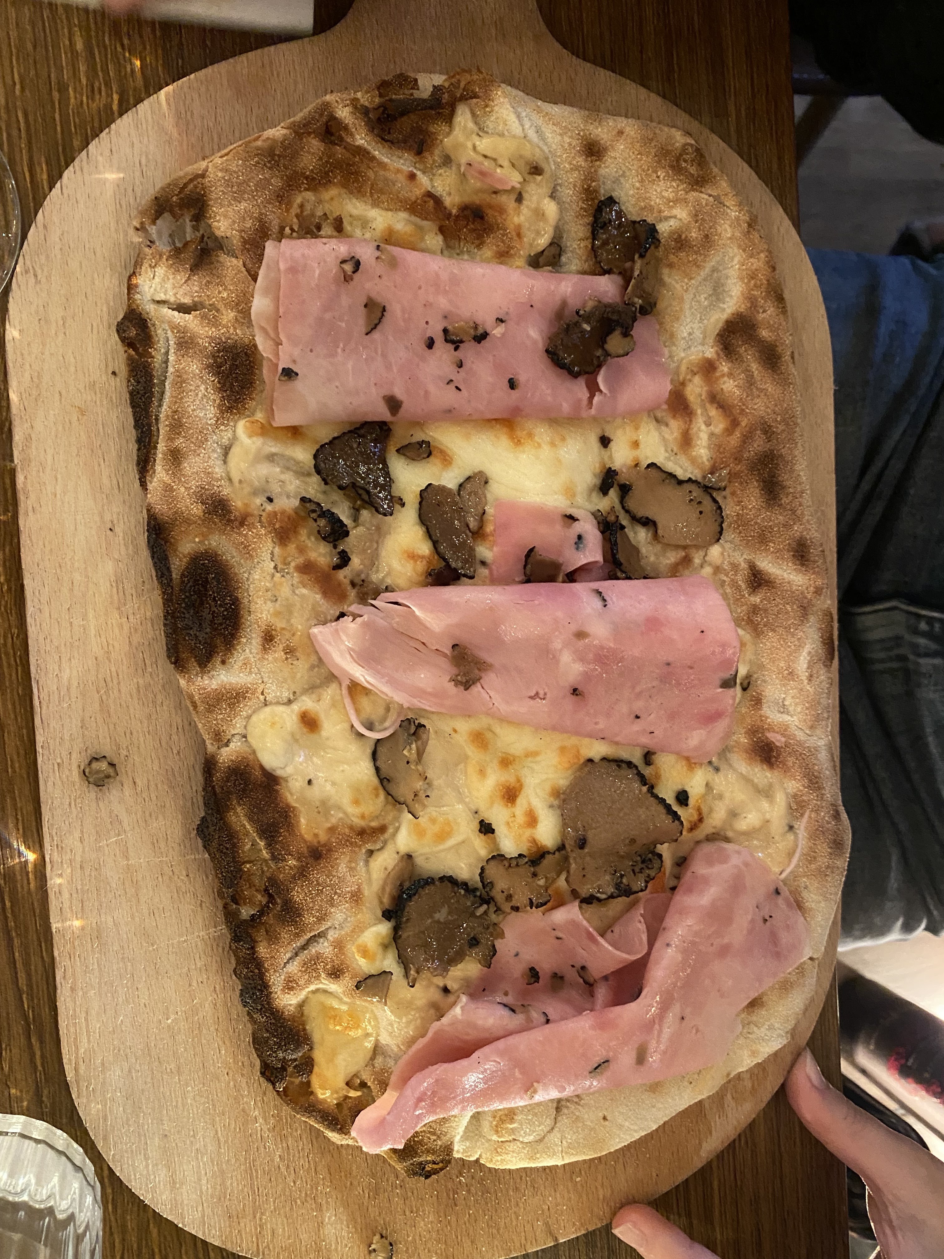 Une pizza « parma » avec 2 tranches de jambon et hyper petite avec une pâte hyper épaisse. Tout cela pour seulement 17,5€ 🥰 + les pâtes à la truffes sont fades Déçu