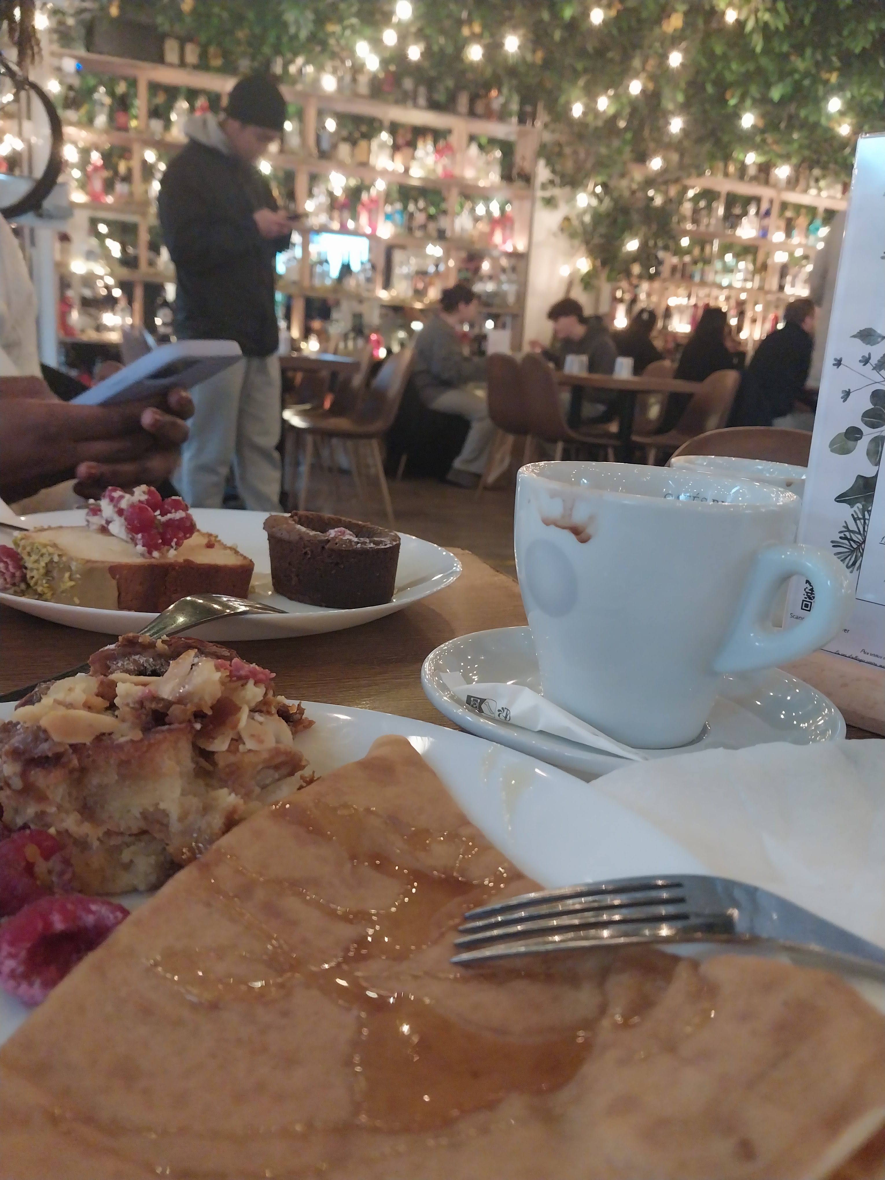 Le brunch était bon, à volonté avec beaucoup de choix. En revanche certains plats n’étaient pas chaud, le service était cheap, on fait rentrer tout le monde en même temps en criant les instructions pour les commandes des boissons à l’extérieur… Le lieu est moyen (fenêtres pleines de condensation). Mais surtout on fait payer un brunch 25€ à une enfant de 2 ans qui est sur une chaise haute certes mais n’a même pas sa place et partage la table de 2 couverts avec ses parents. À 2 ans elle a pris un chocolat chaud qu’on souhaitait payer en supplément et mangé une assiette de fruit… j’ai trouvé ça pingre.