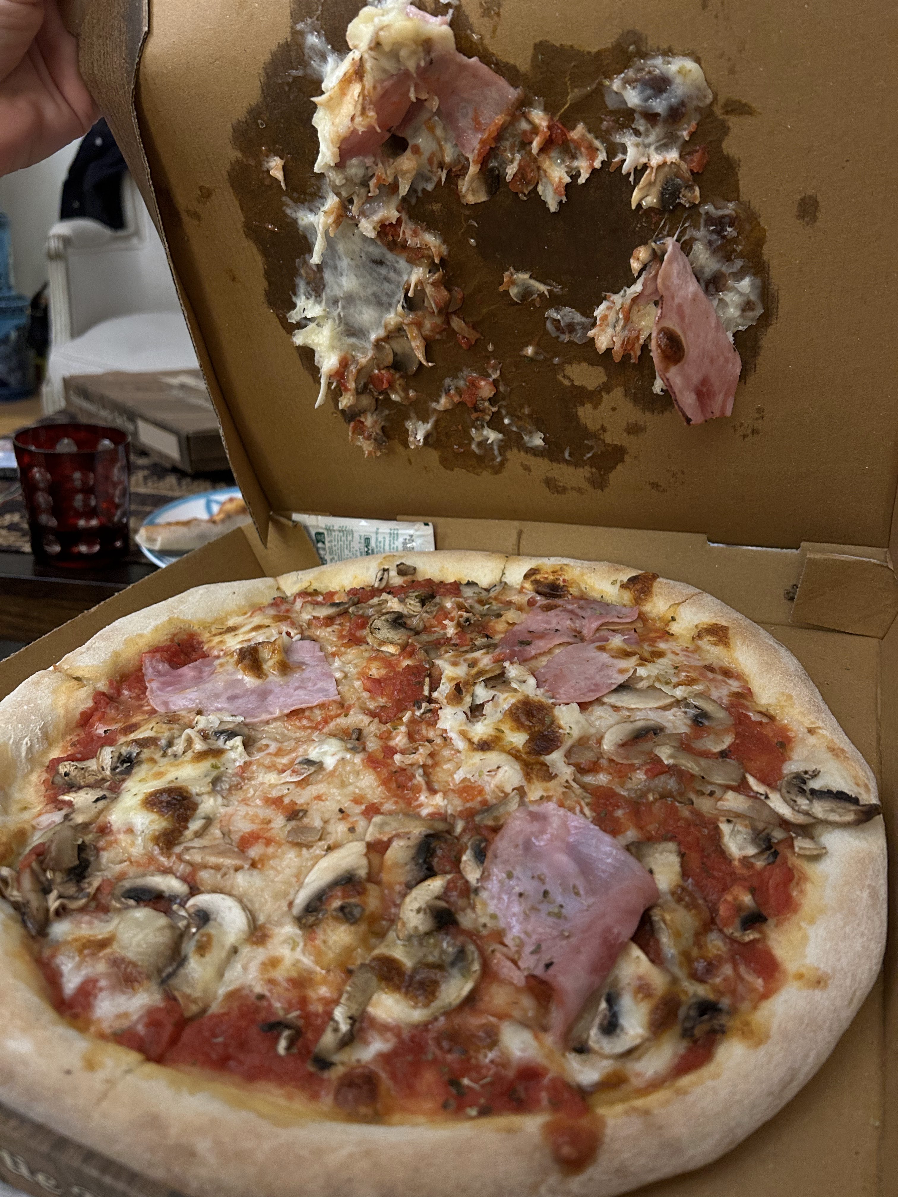 Je viens de recevoir 2 pizzas commandées sur ubereat mais c'est une catastrophe. Je vous parle même pas de la pâte, non cuite et pas bien pétri et reposée.je ne recommande pas de commander sur uber .car je pense c'est pas les même pizzas Qu ils font dans leur boutique. Ce que j ai reçu là on dirait ça vient de chez aldi