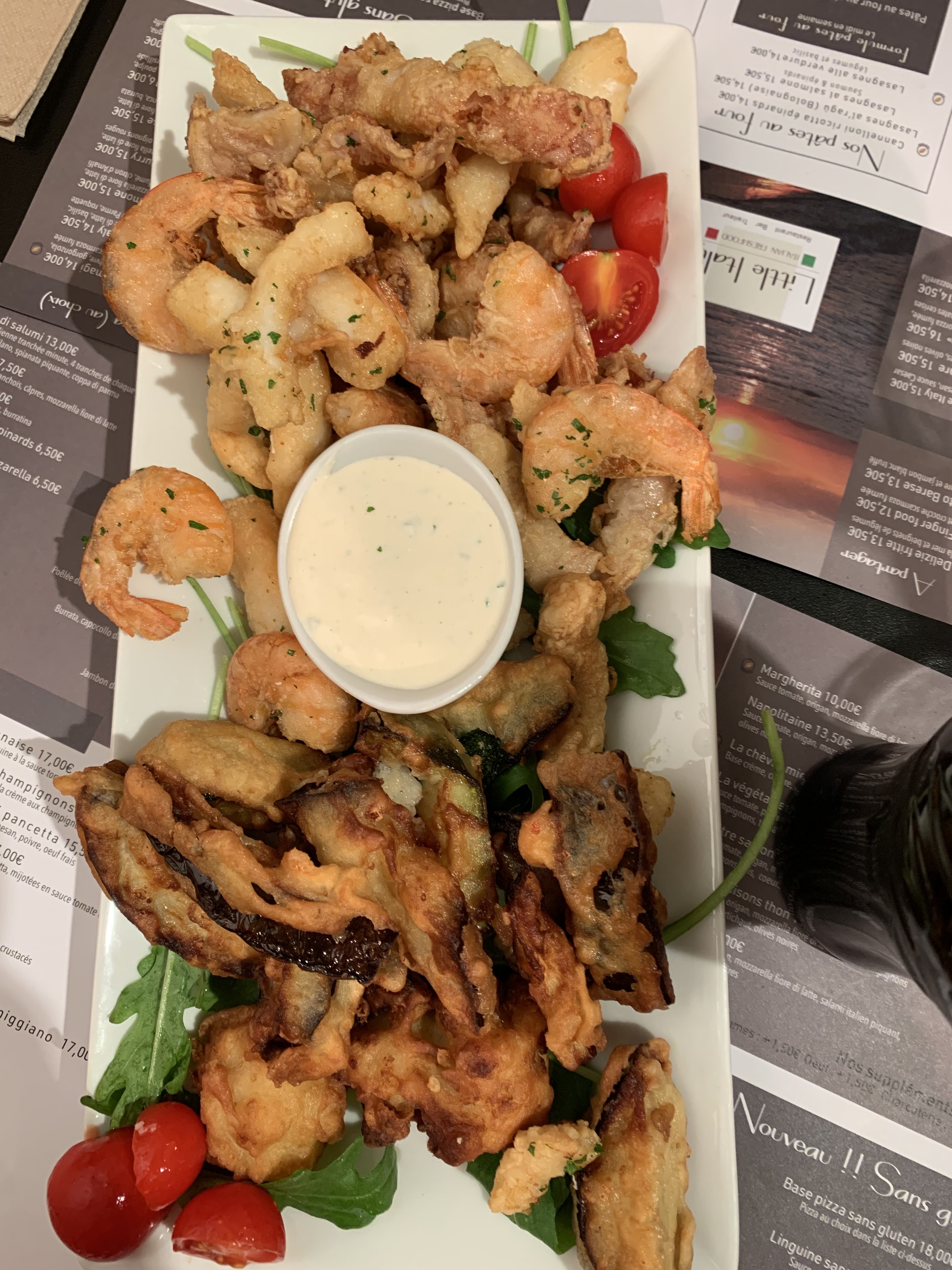 On a passé un super moment, le serveur est adorable et aux petits soins. Ma pizza était top !!! Et l’assiette de friture de la mer est trop belle !!!