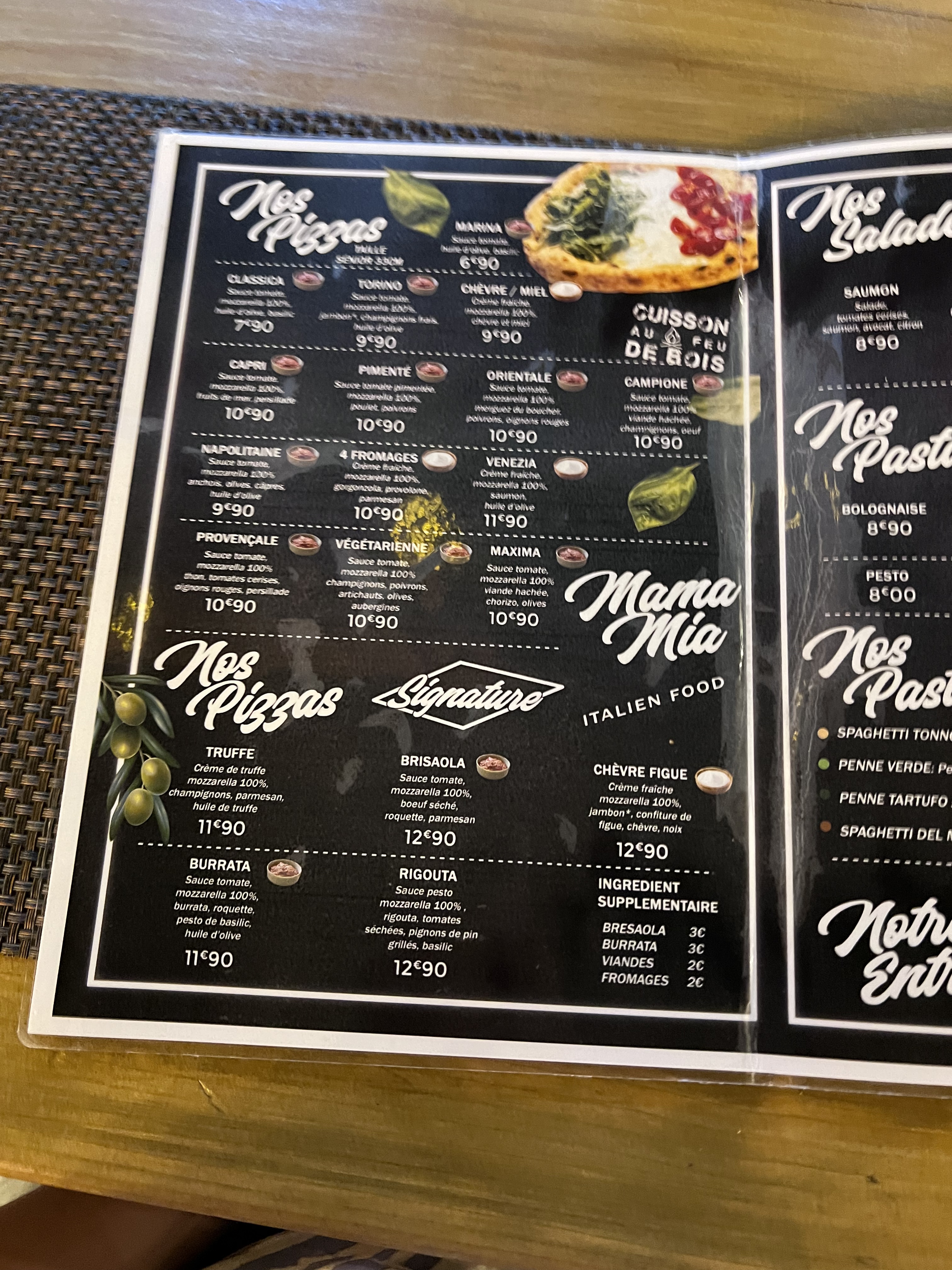 Bonjour, J'ai commandé plusieurs pizzas en livraison pour ma famille chez Mamamia. Tout le monde a beaucoup apprécié, surtout la pizza au chèvre-miel, la quatre fromages et la Maxima. La salade Romana était également excellente.