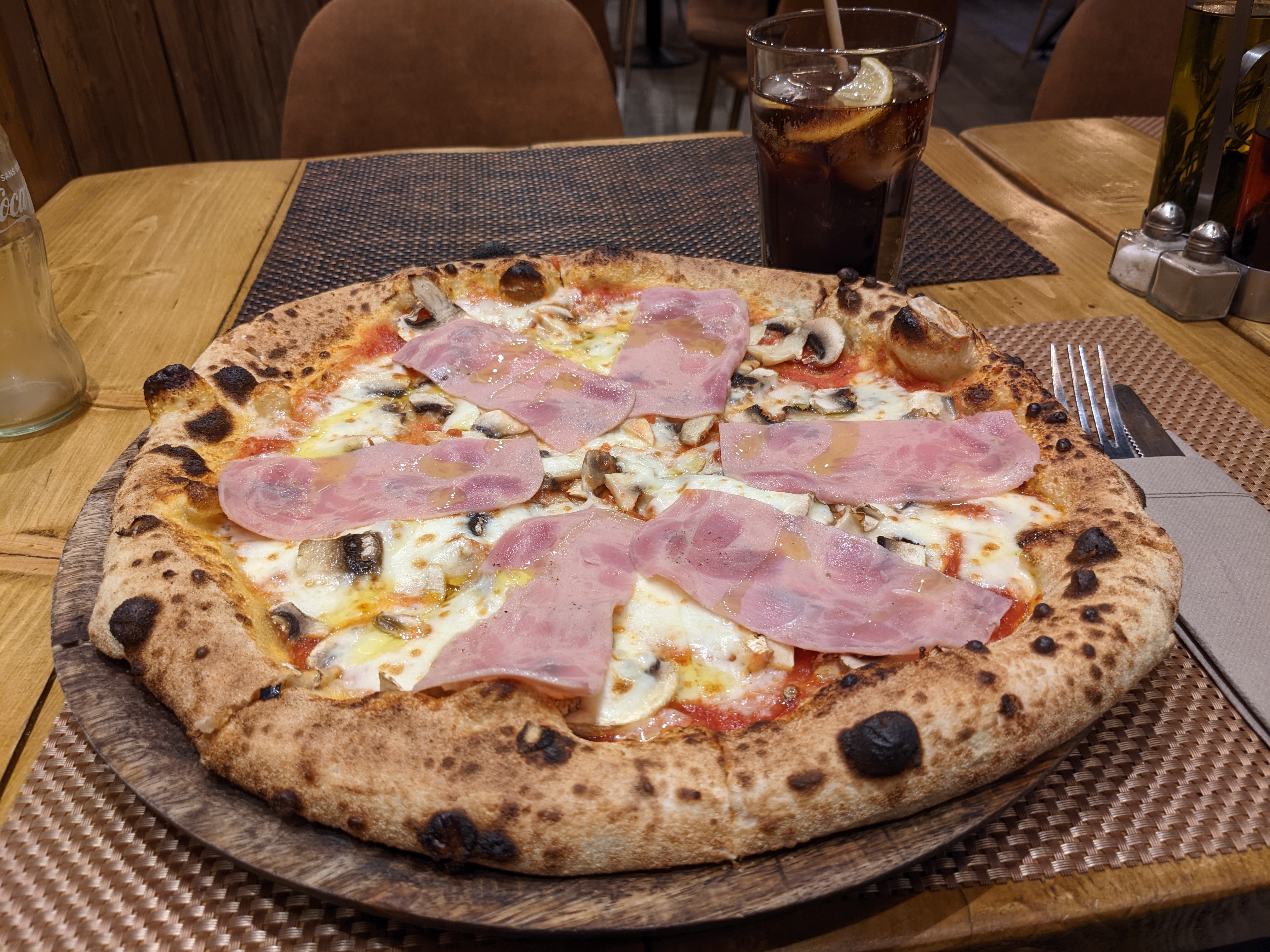 Pizza au feu de bois magnifique, accueil sympa prix très abordable