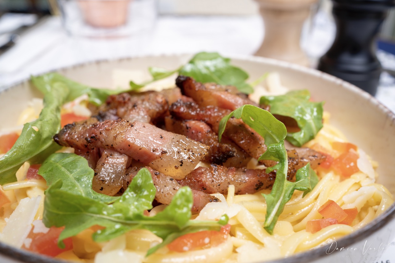 Service un peu long : environ 1h entre notre arrivée et le service du premier plat. Peut être dû à l’influence du vendredi soir? Plat de quantité suffisante, cependant je vous déconseille vivement les pâtes à la carbonara. La carte indique « comme à Rome » malheureusement aucun lien avec Rome : des tomates et de la salade dans des pâtes à la carbonara , du jamais vu. Serveurs agréables.
